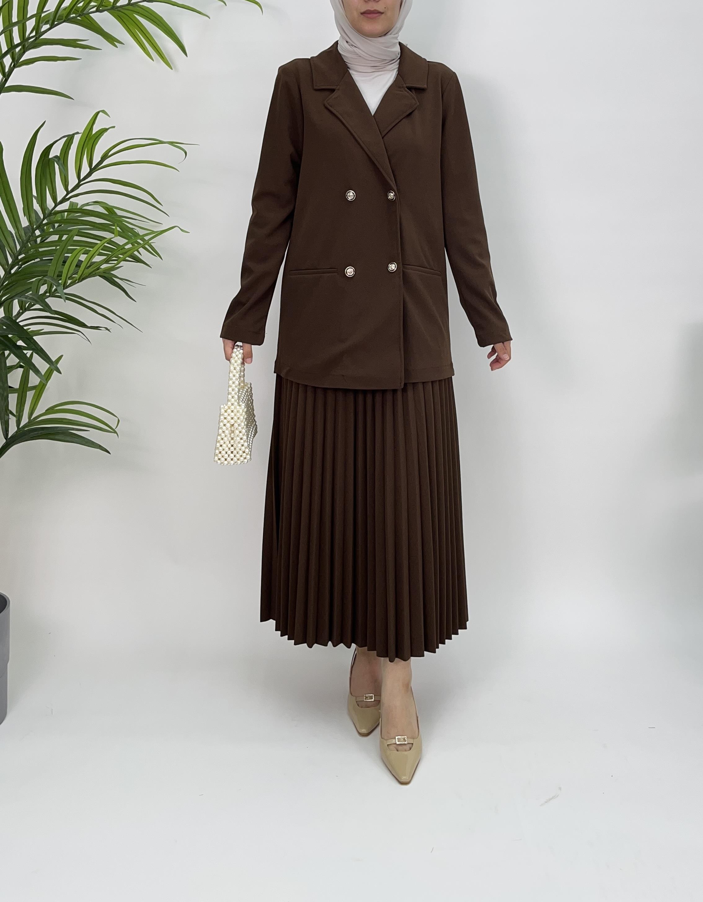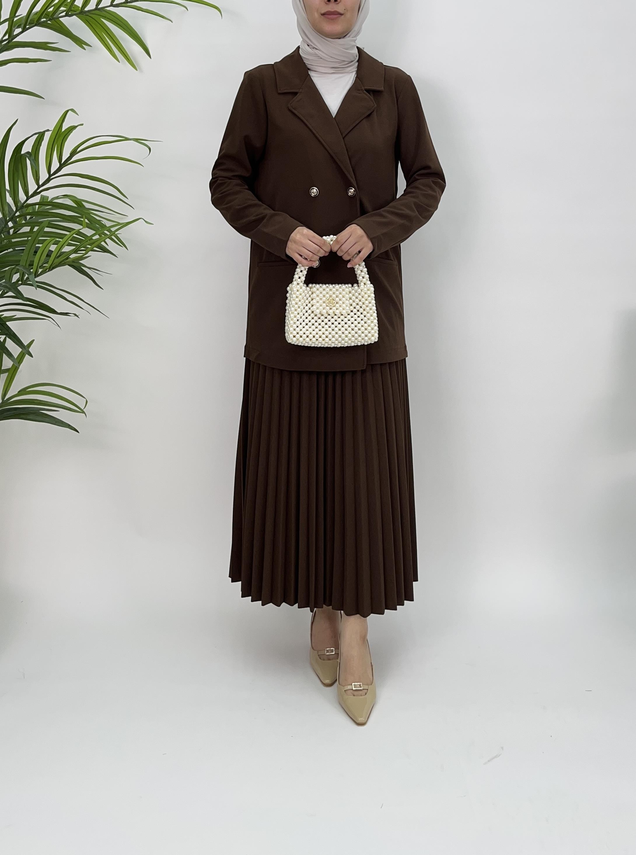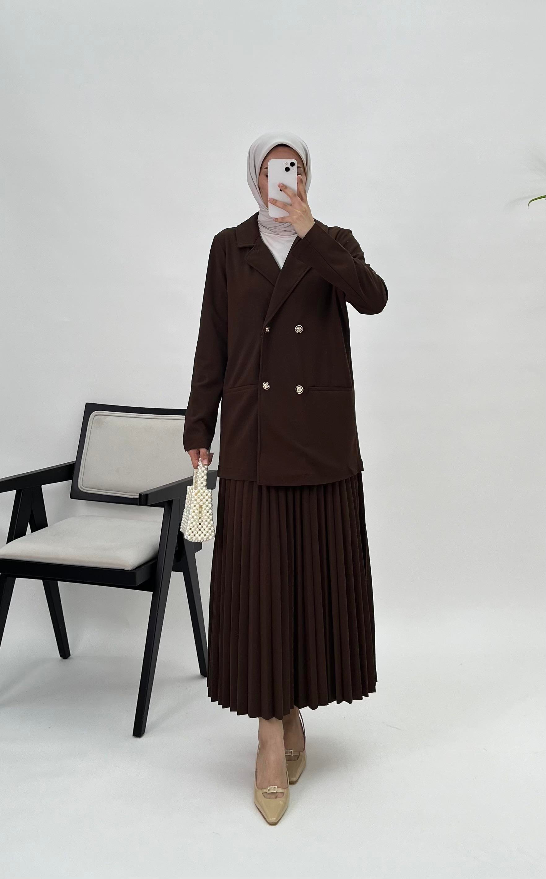 6152-Skuba krep kumaş-etekli ceket takım-acı kahve (6152)