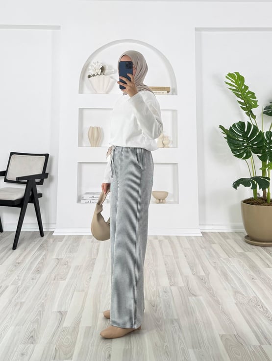 çizgili beli lastikli pantolon