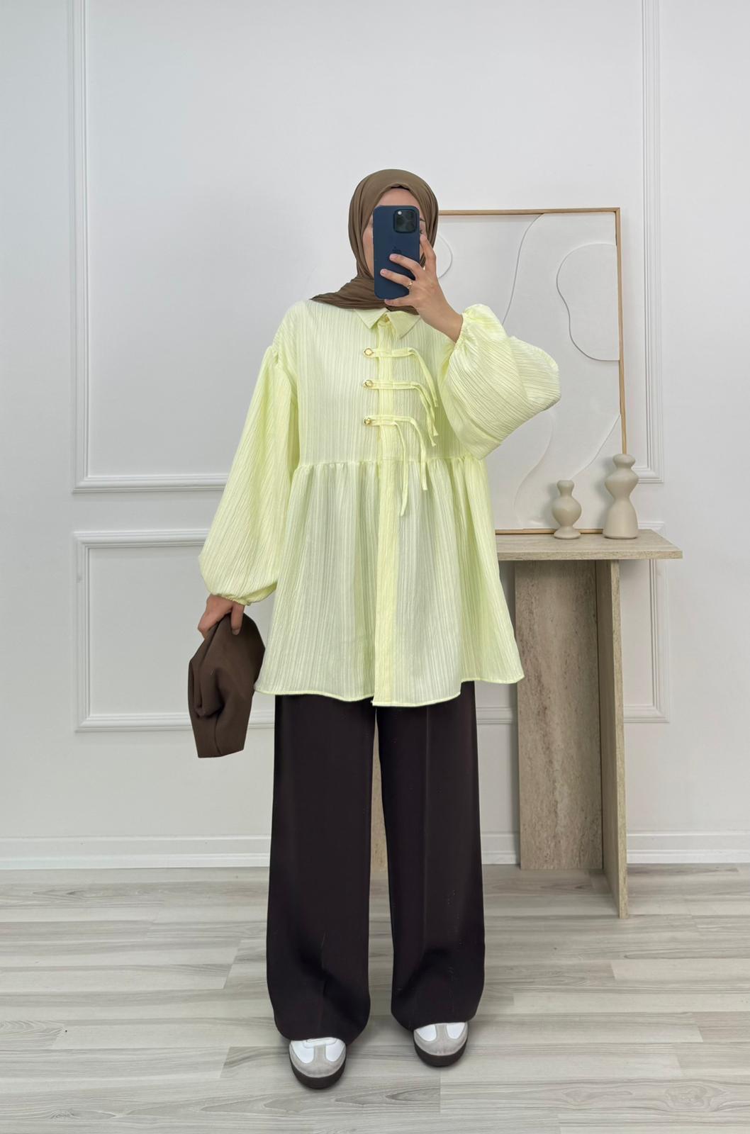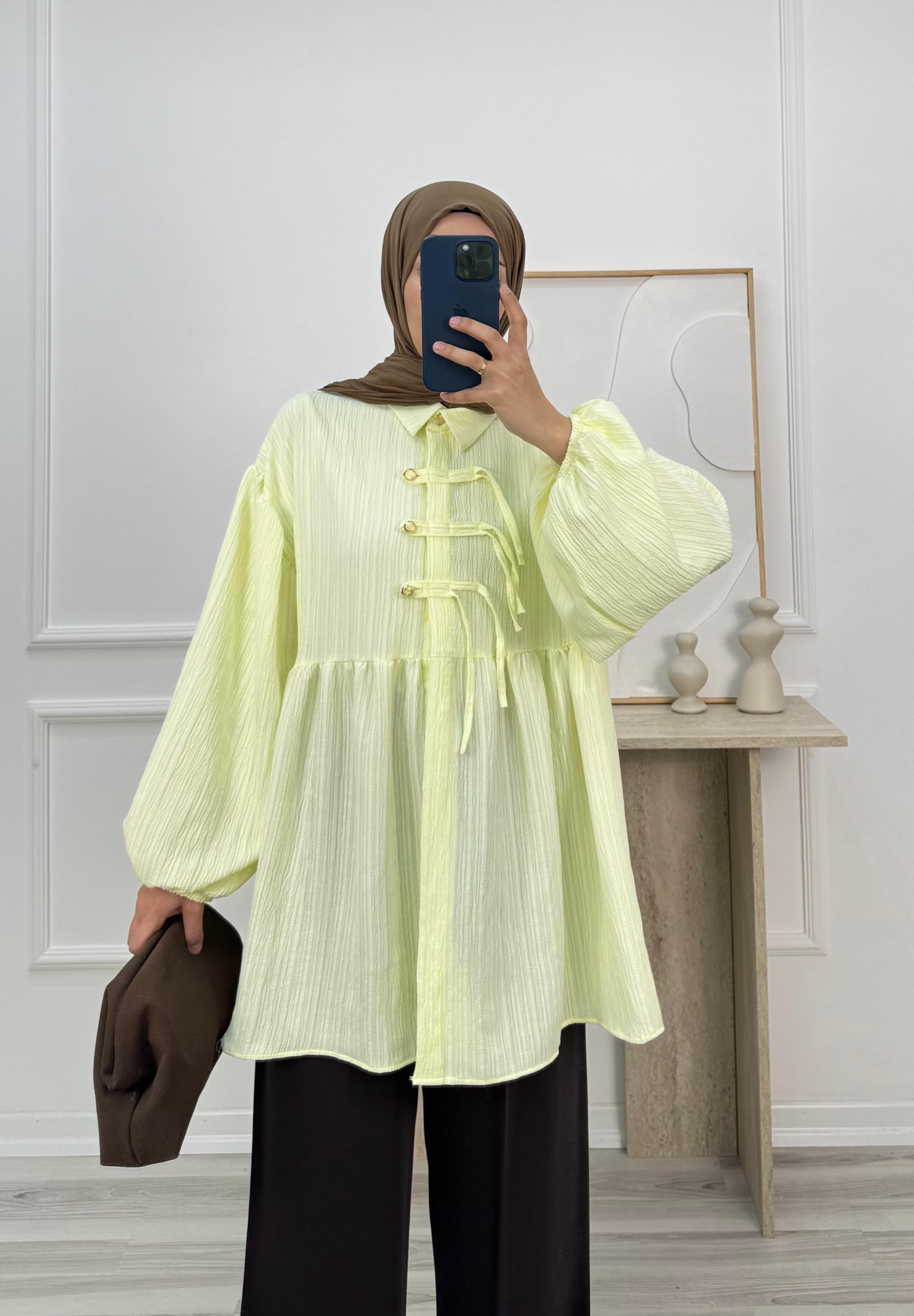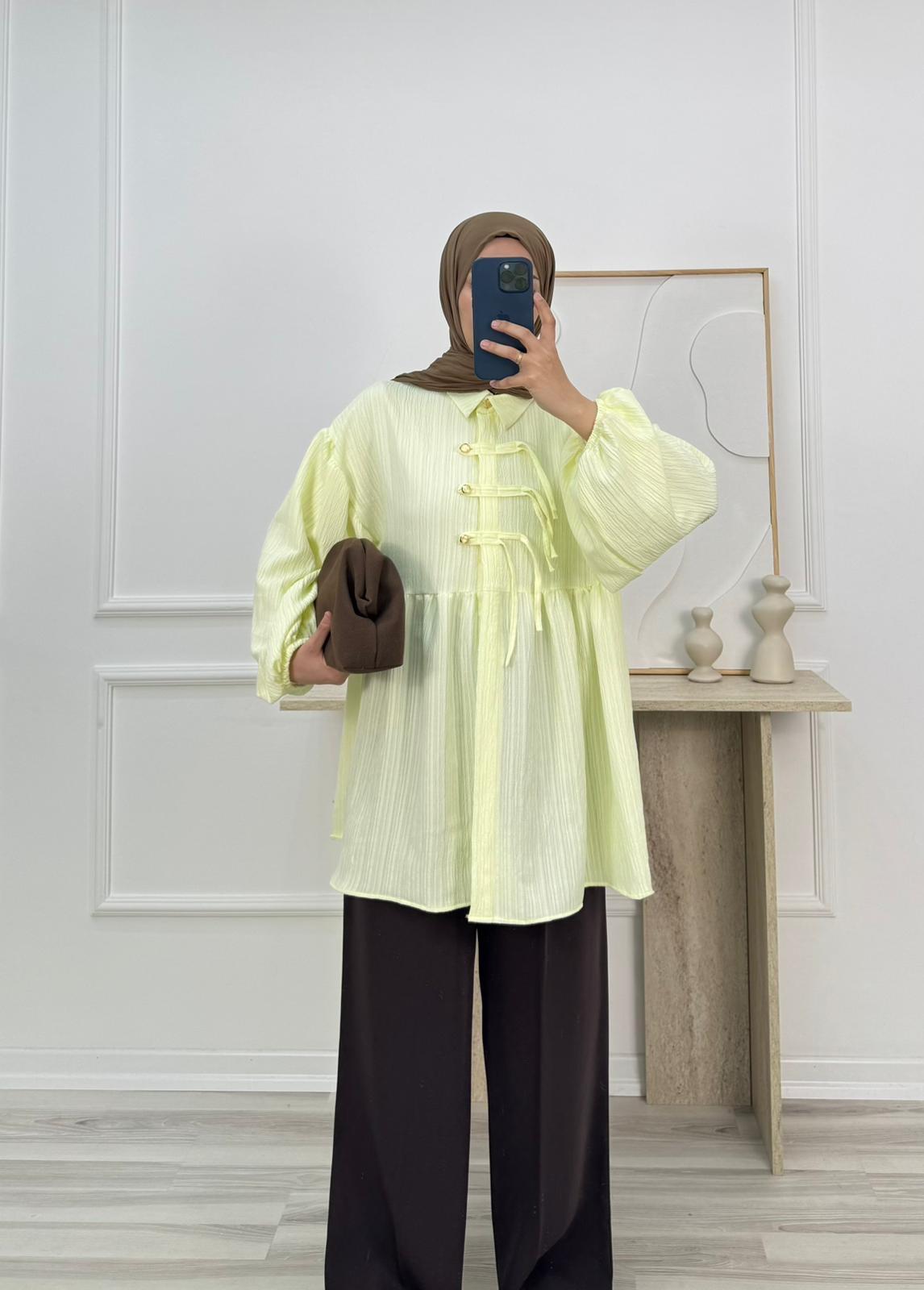 6358-nada kumaş düğmeli tunik-sarı (6358)