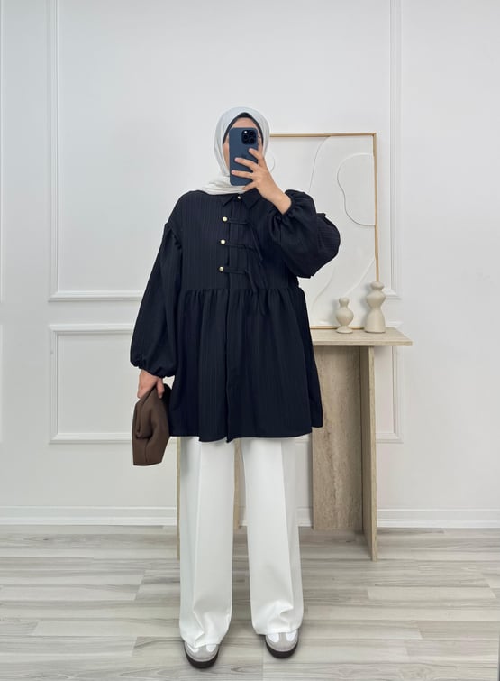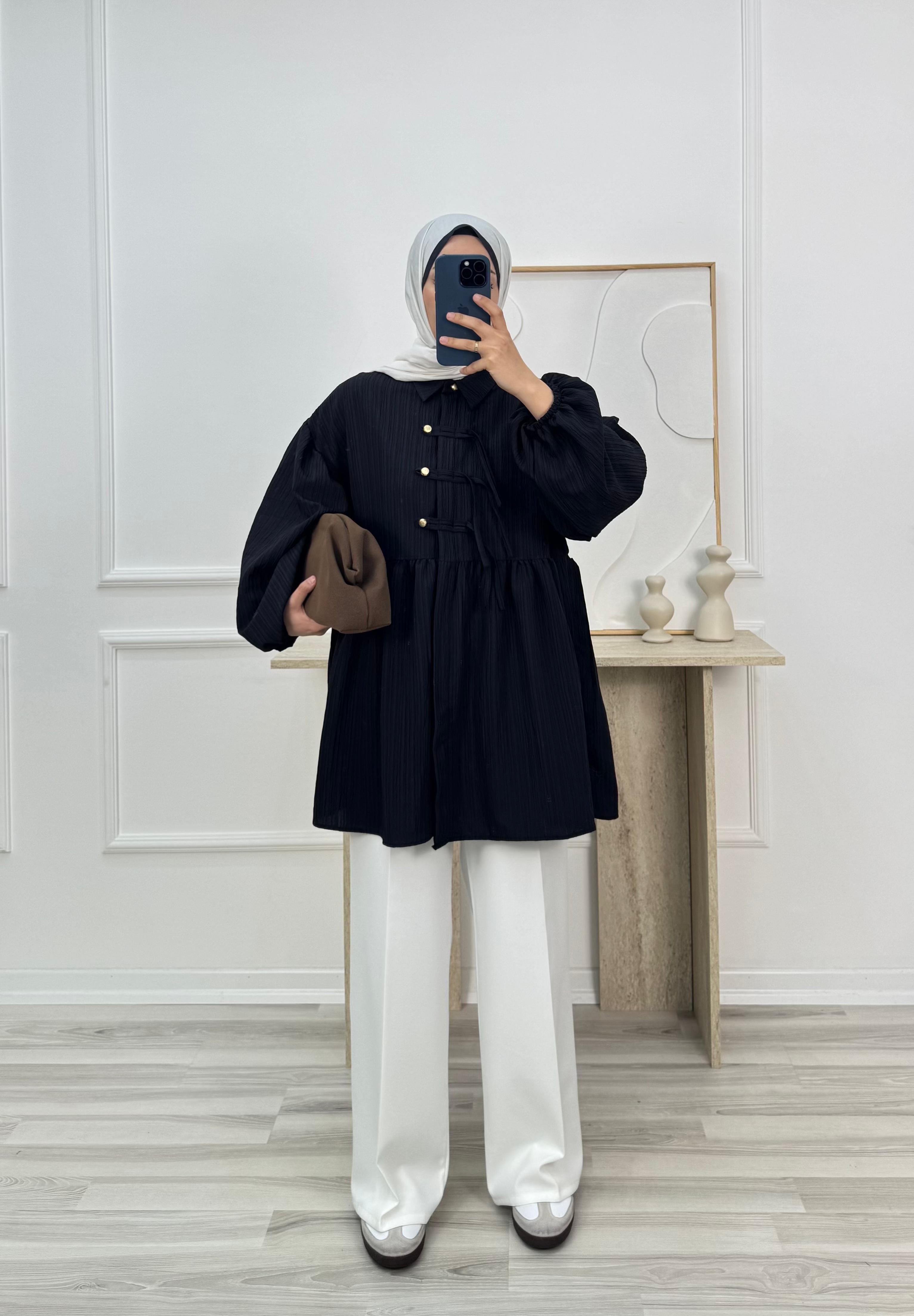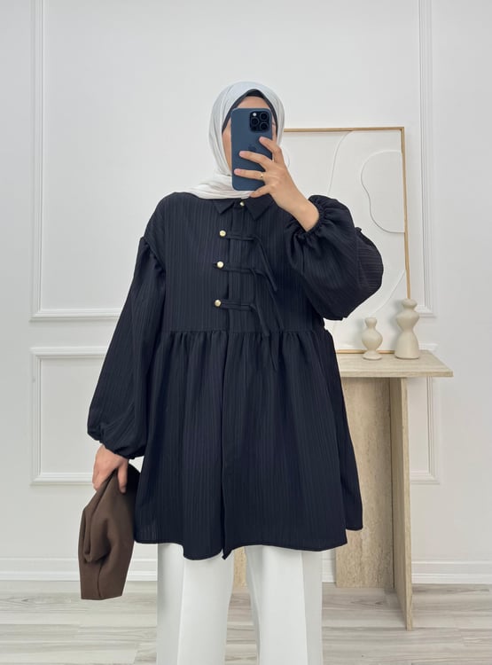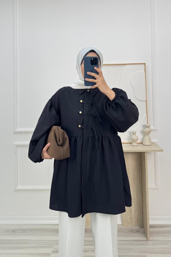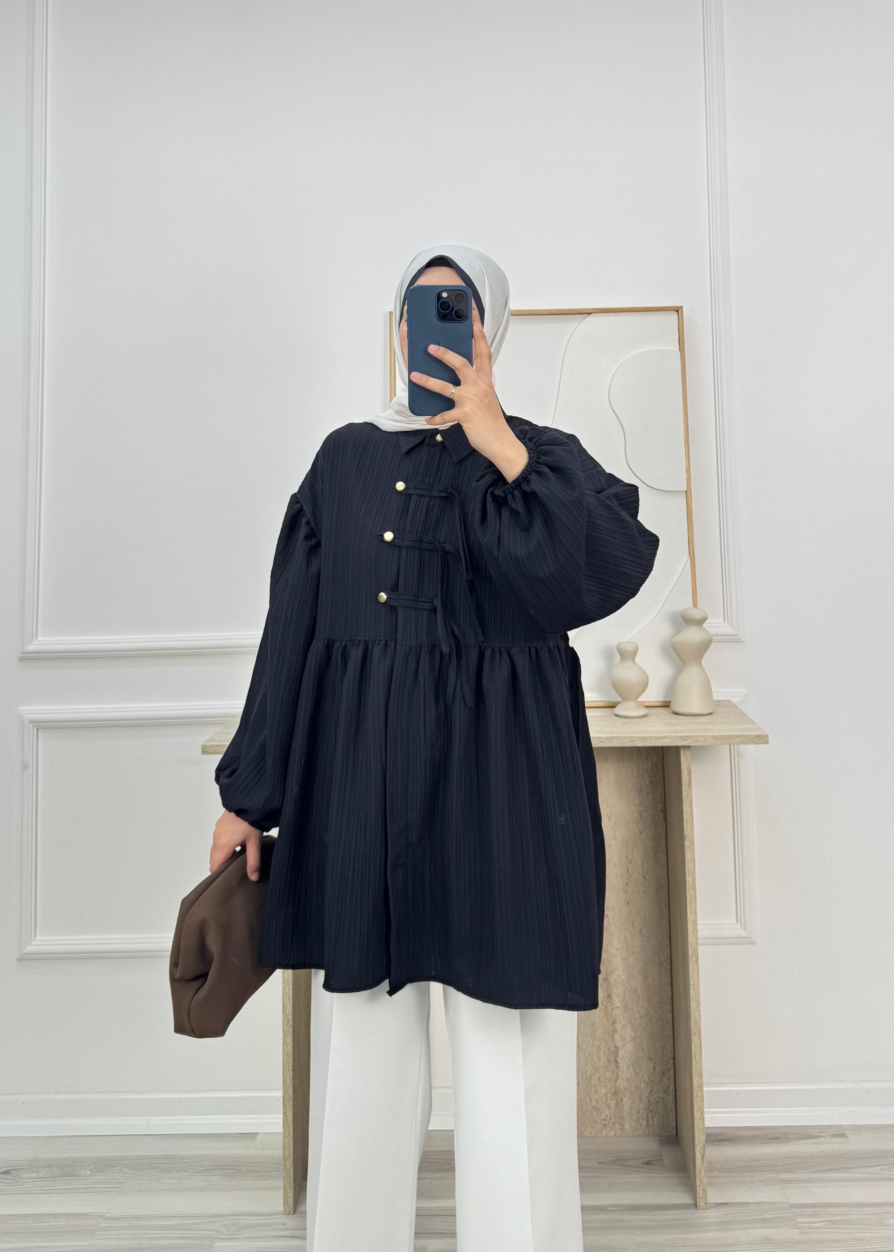 6358-nada kumaş düğmeli tunik-siyah (6358)