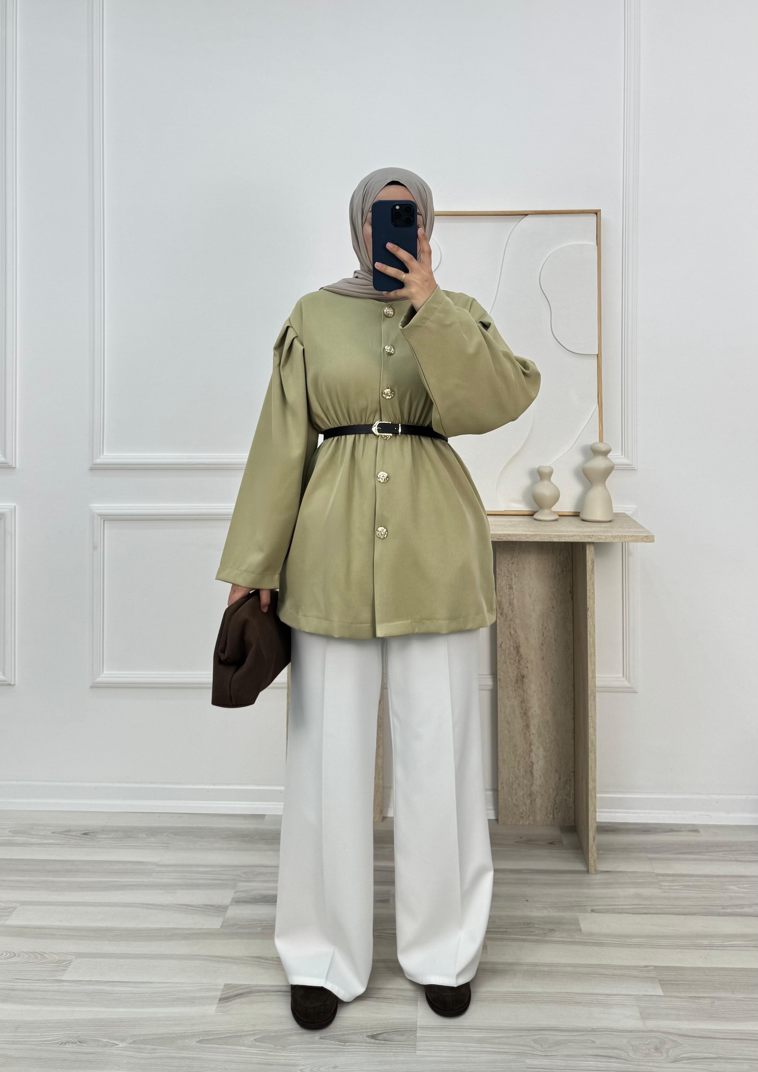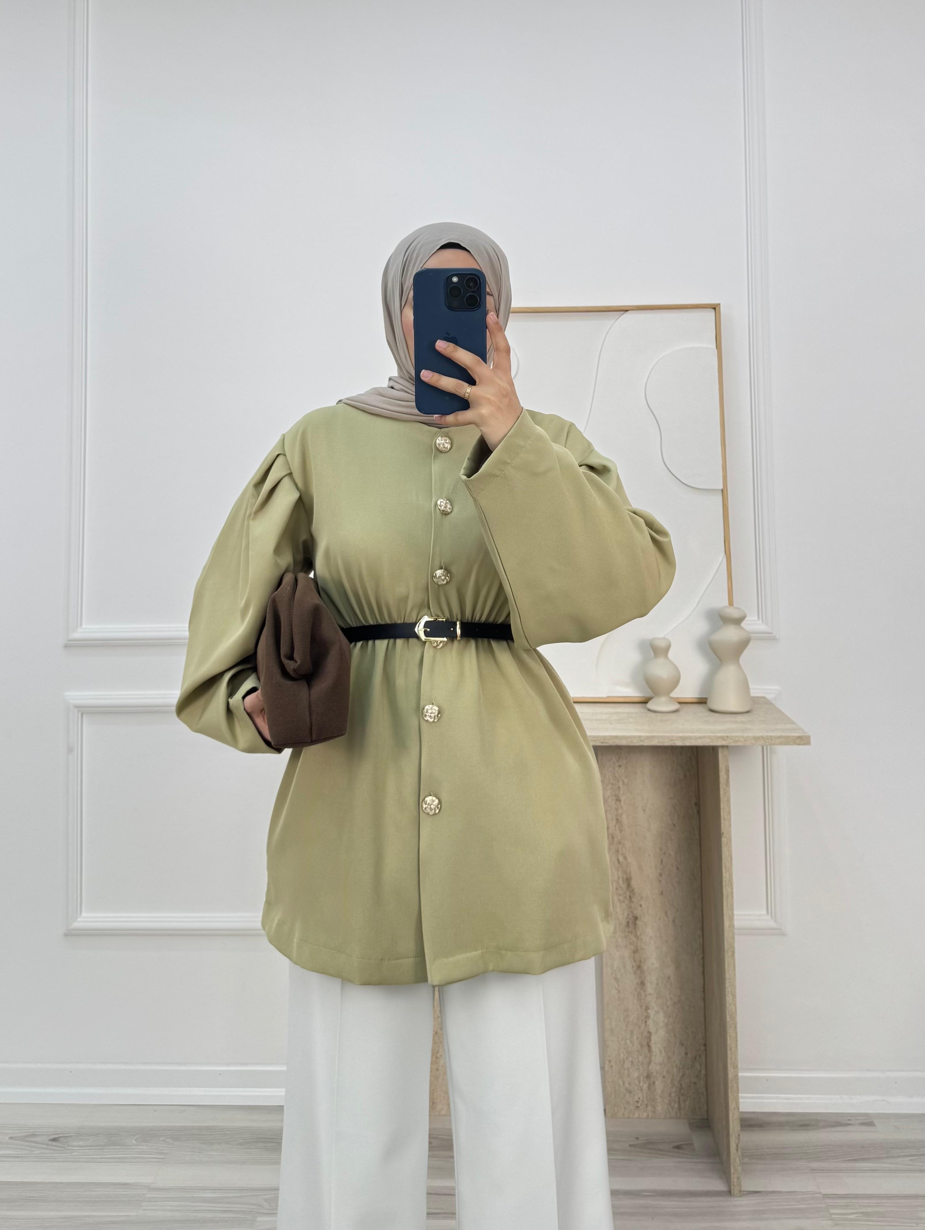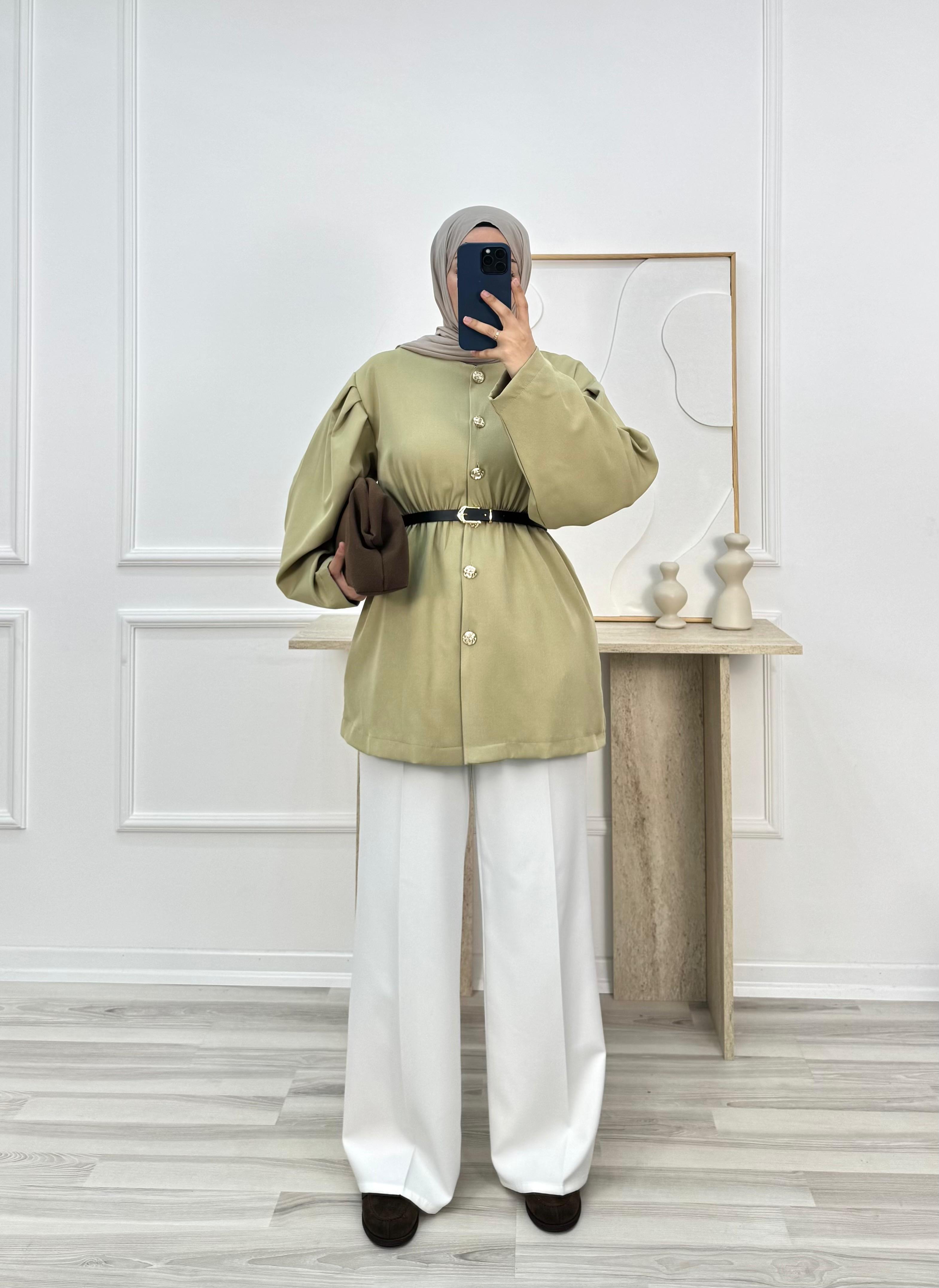 6572 büzgülü dabıl ceket-mint yeşili (6572)
