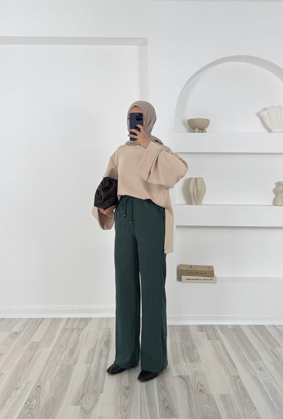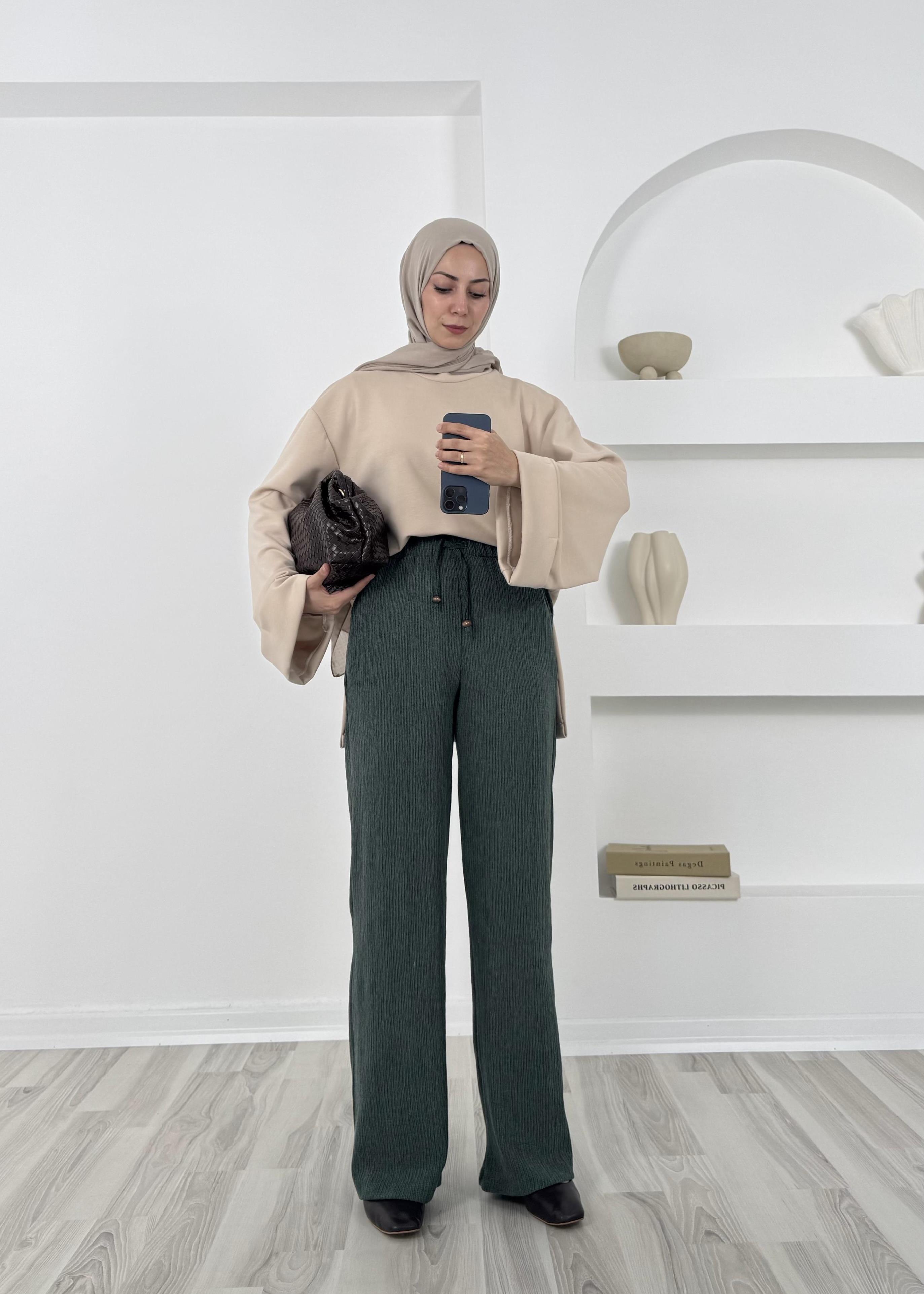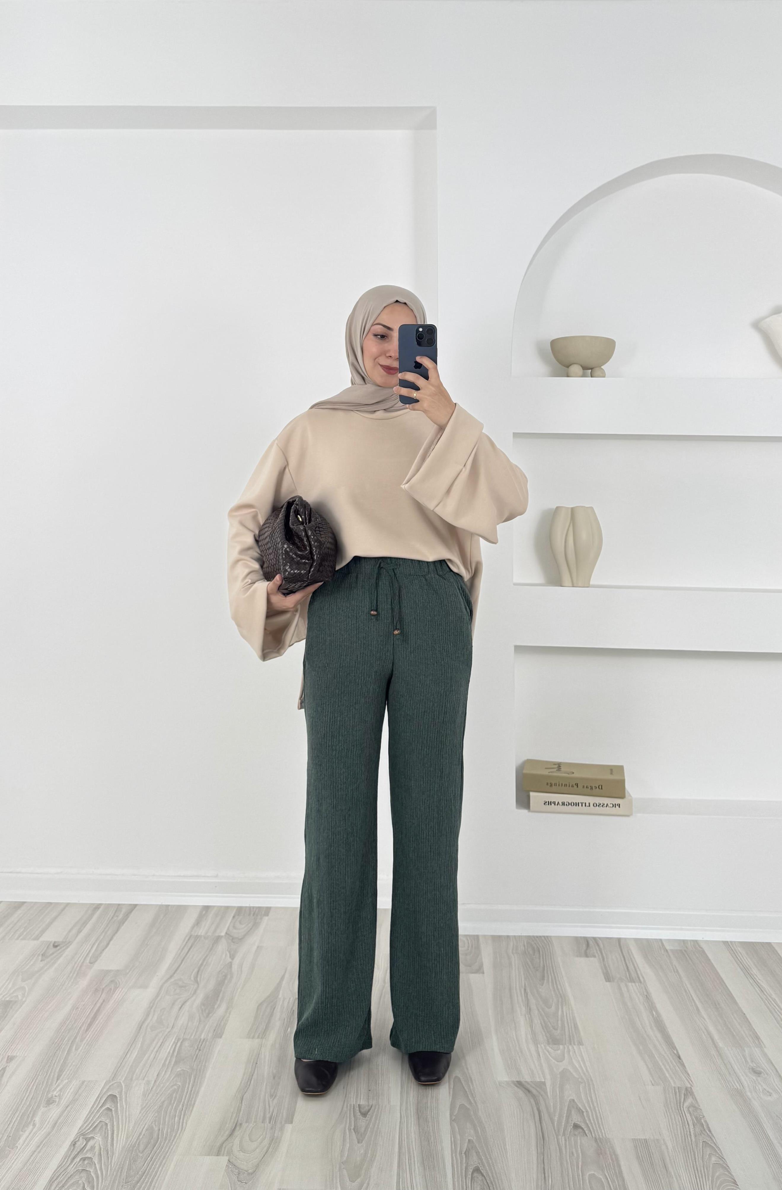 6683 beli lastikli panama pantolon-yeşil (6683)