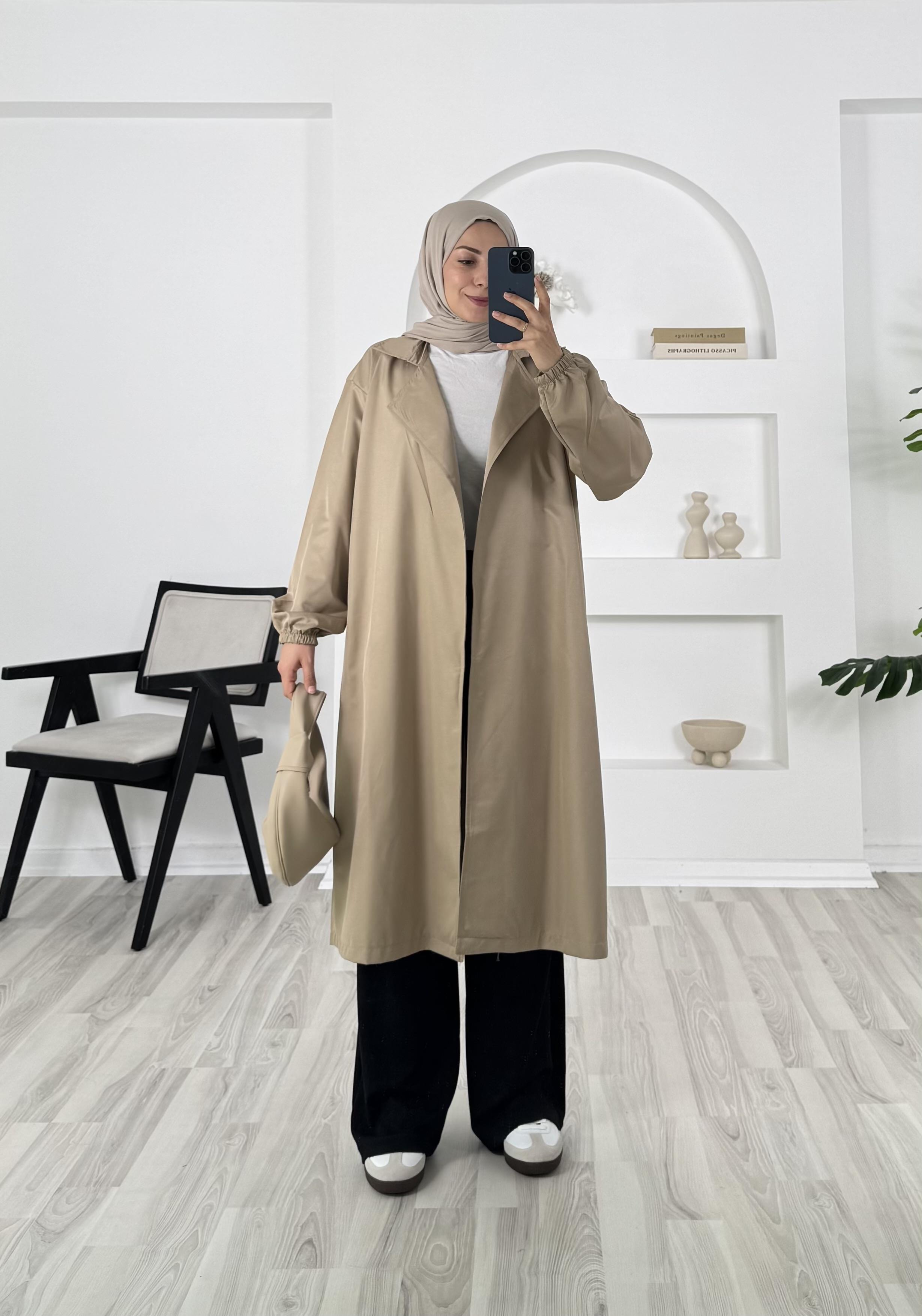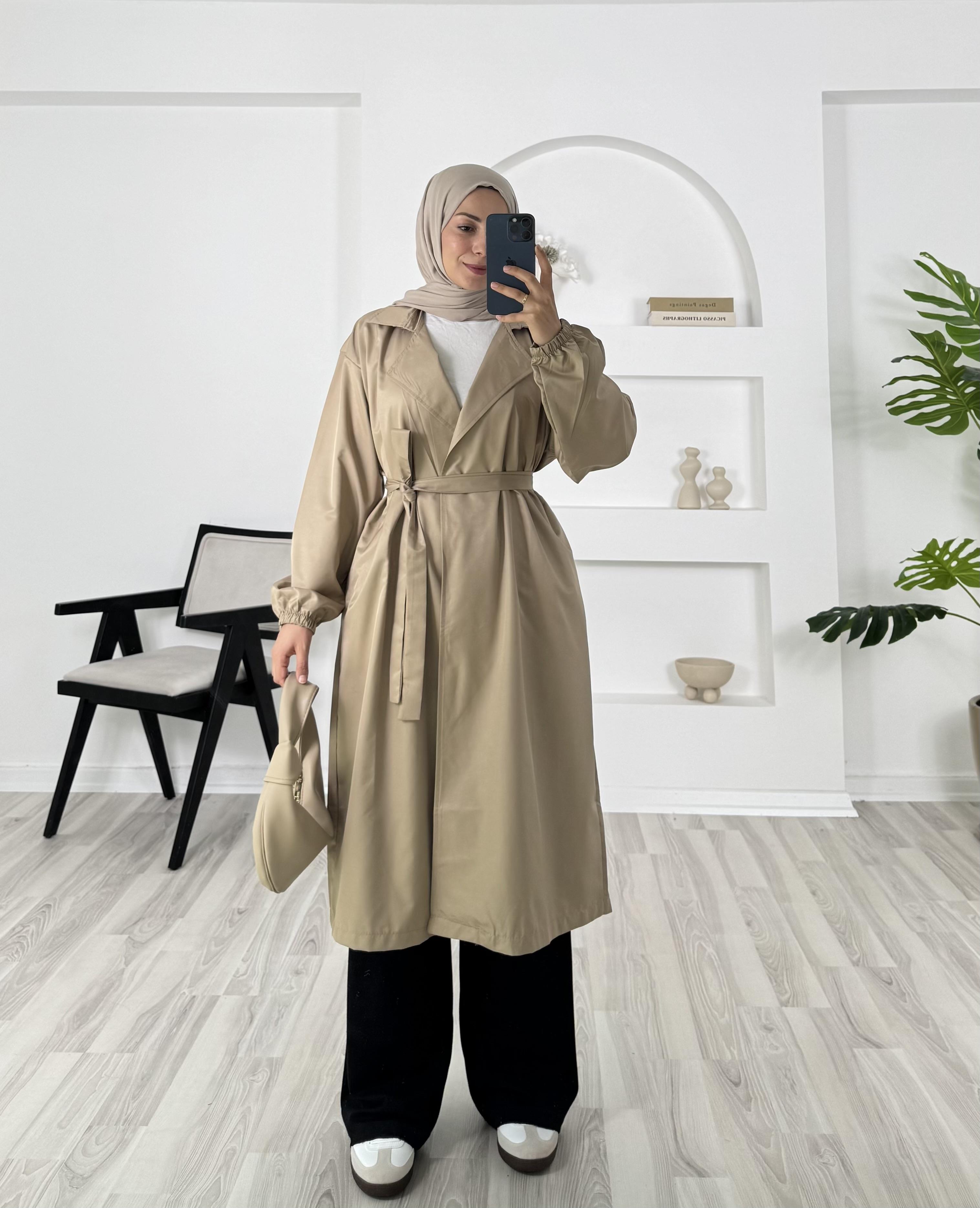 6702 - soft kumaş kolları lastikli trenç -sütlü kahve (6702)