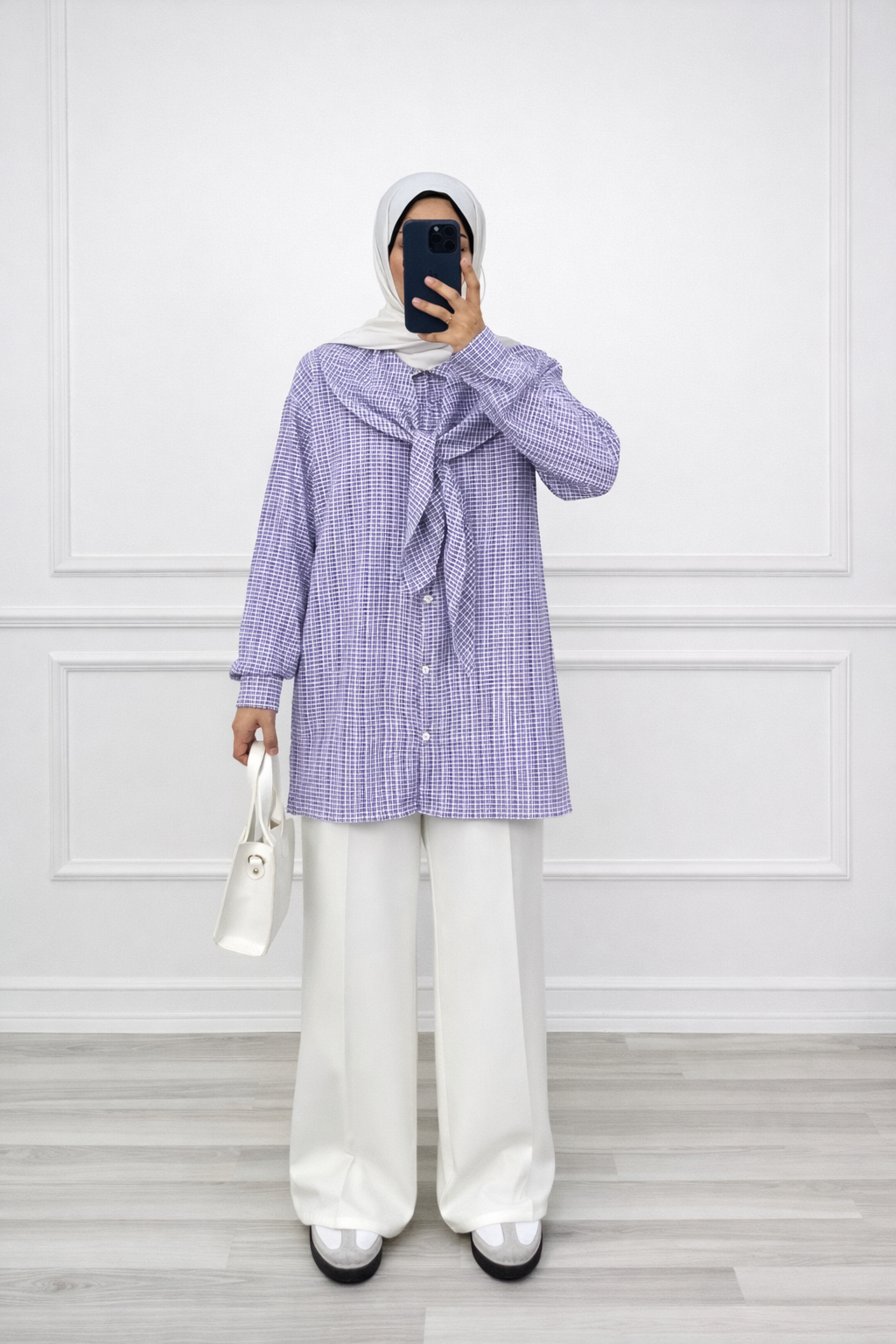 gofre kumaş yakadan bağlamalı tunik
