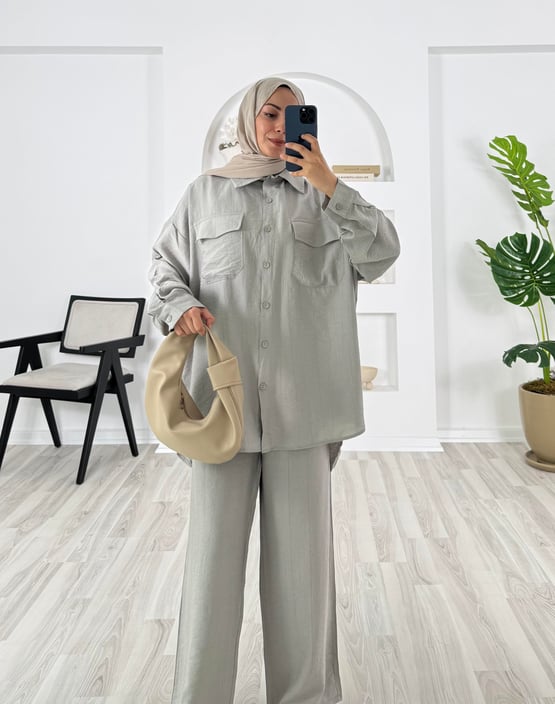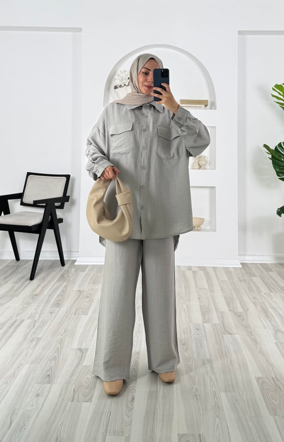 6896-çilek kumaş-önü cepli pantolonlu takım-gri (6896)