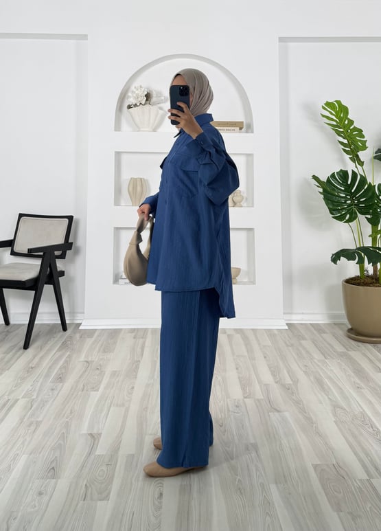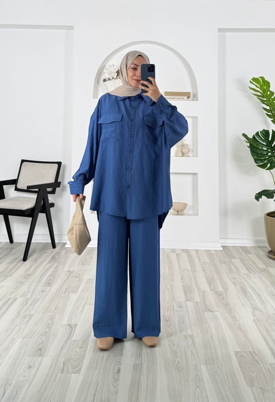 6896-çilek kumaş-önü cepli pantolonlu takım-mavi (6896)