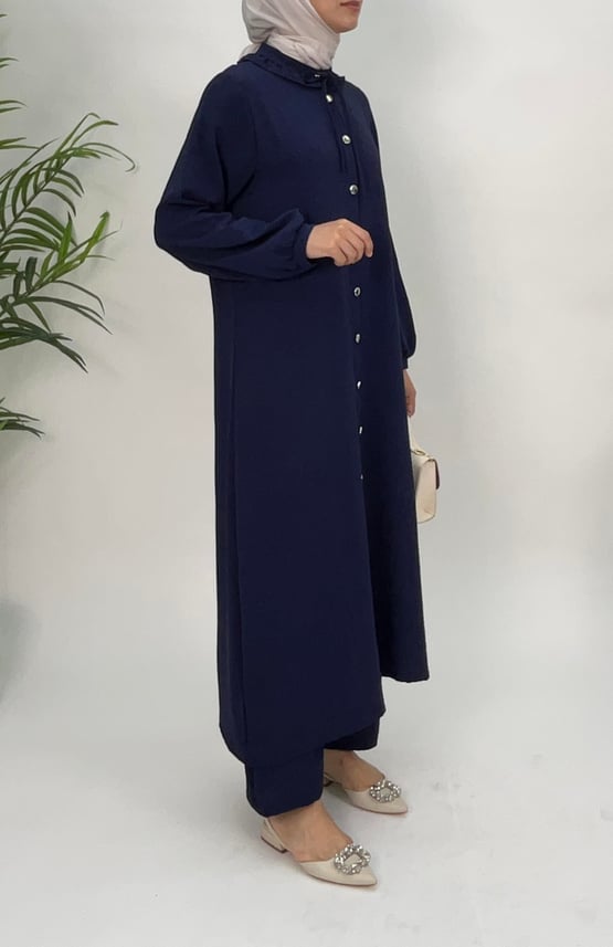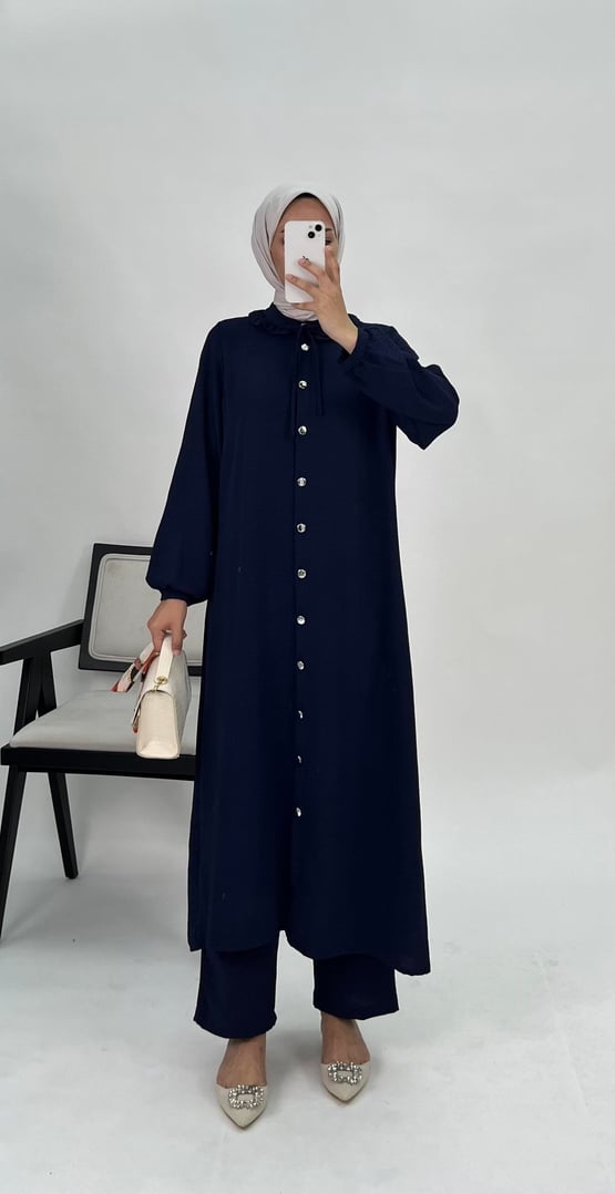 6897-ayrobin kumaş-yakası fırfırlı boydan düğmeli pantolonlu takım-lacivert