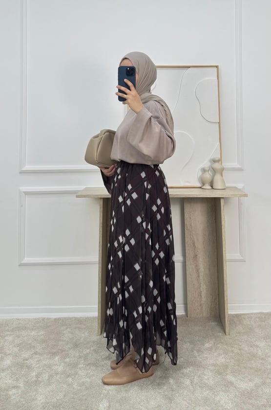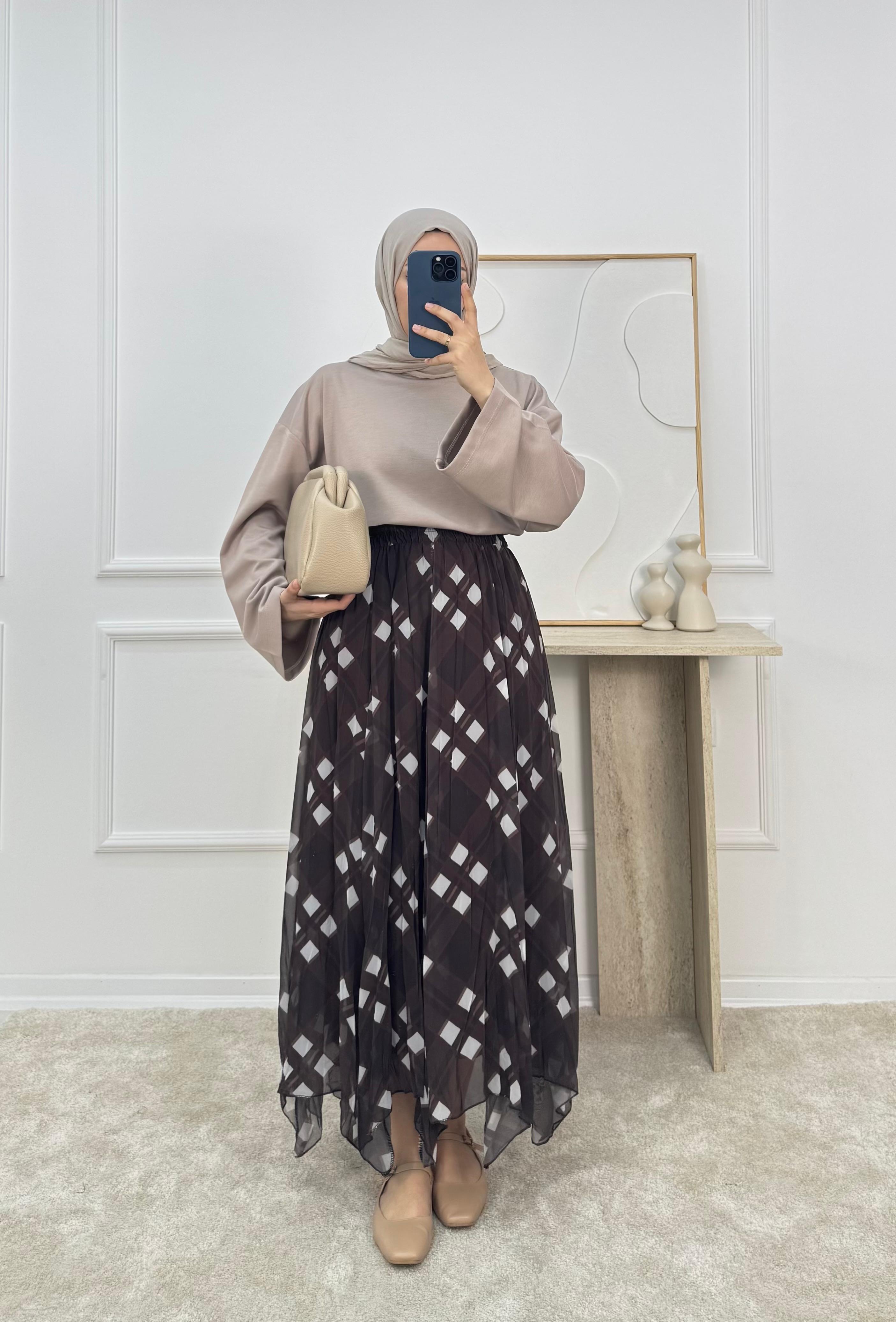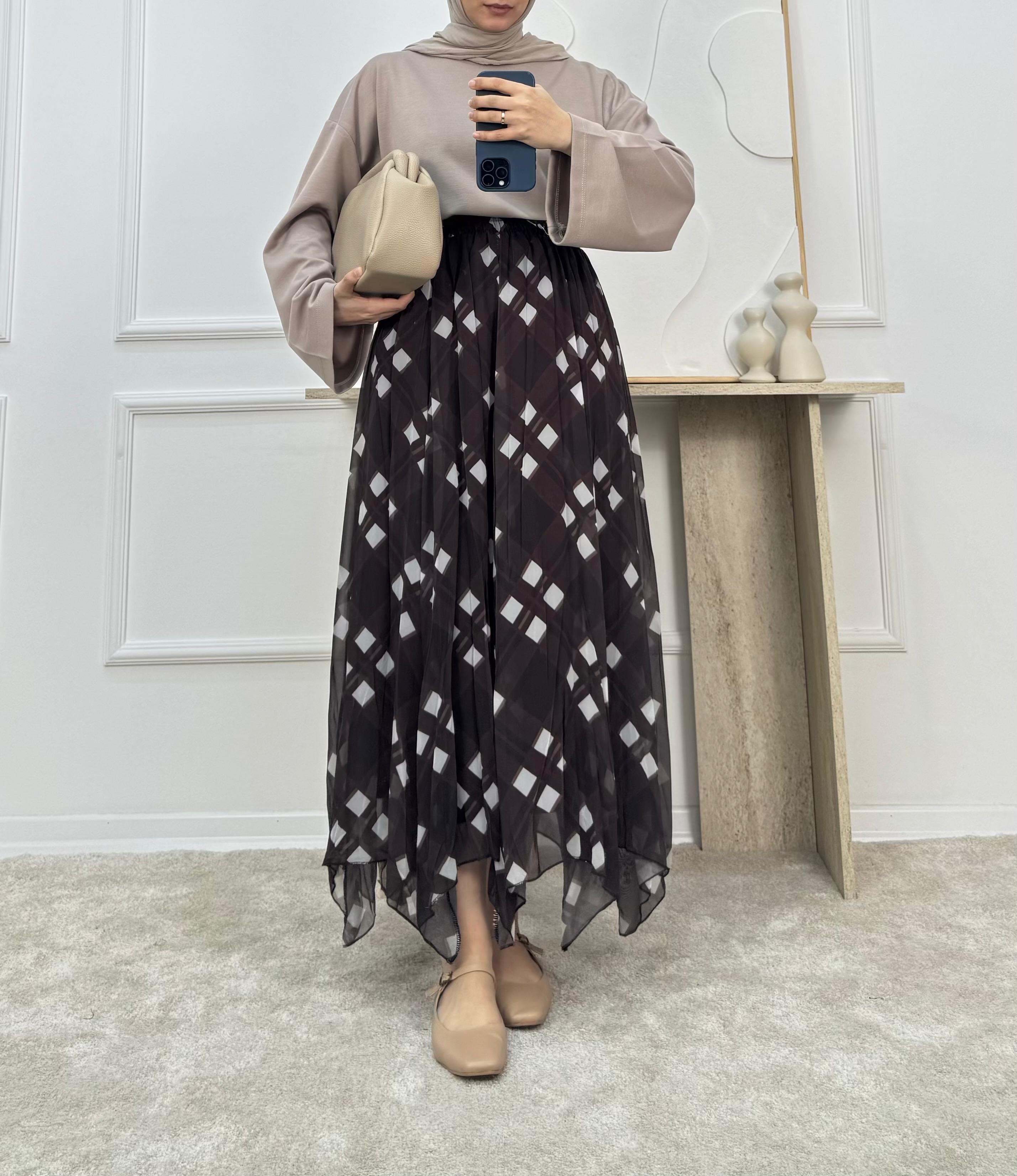 KARE DESENLİ ŞİFON ETEK