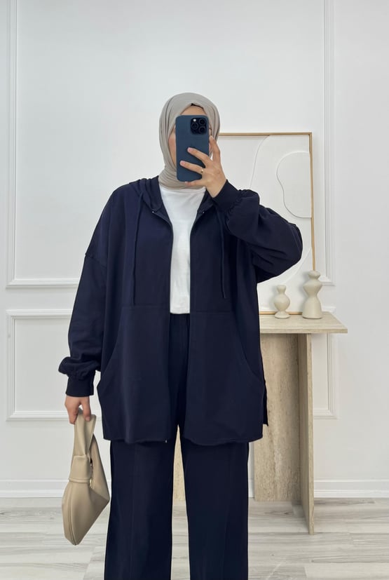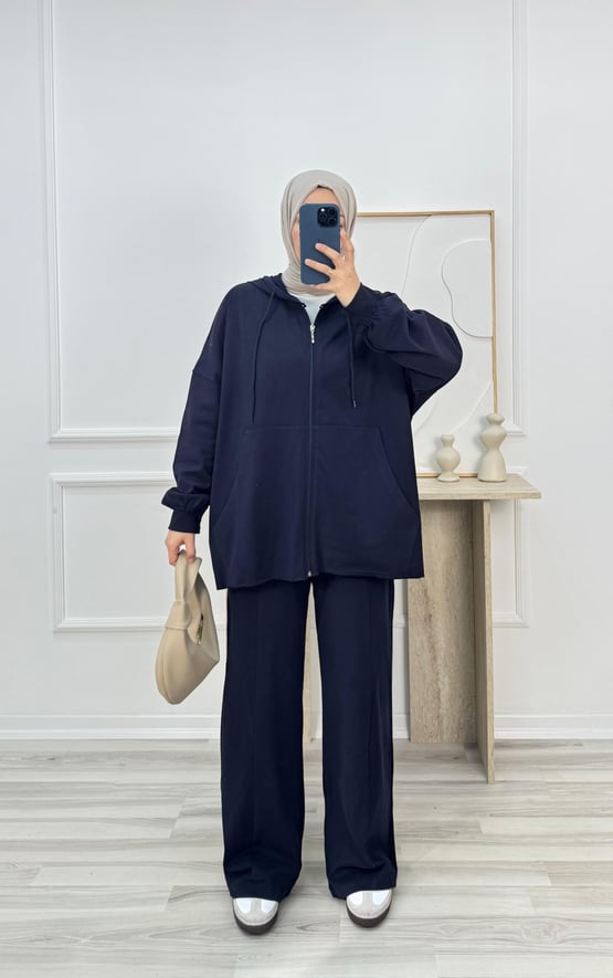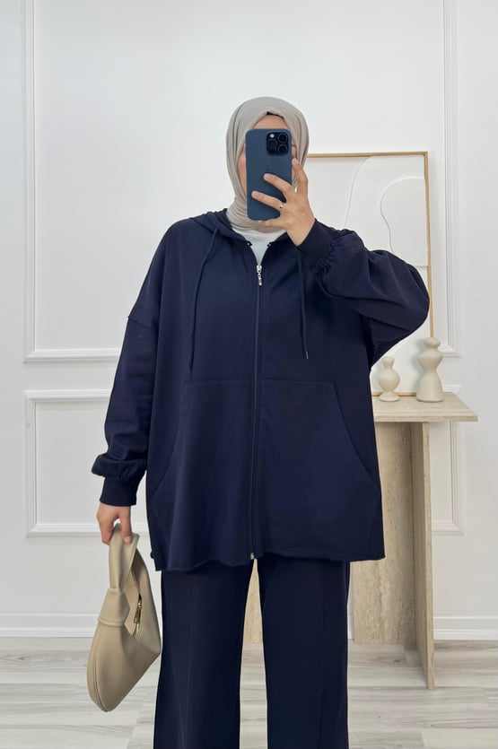 7093-kapüşonlu fermuarlı süperm pantolonlu takım-lacivert (7093)