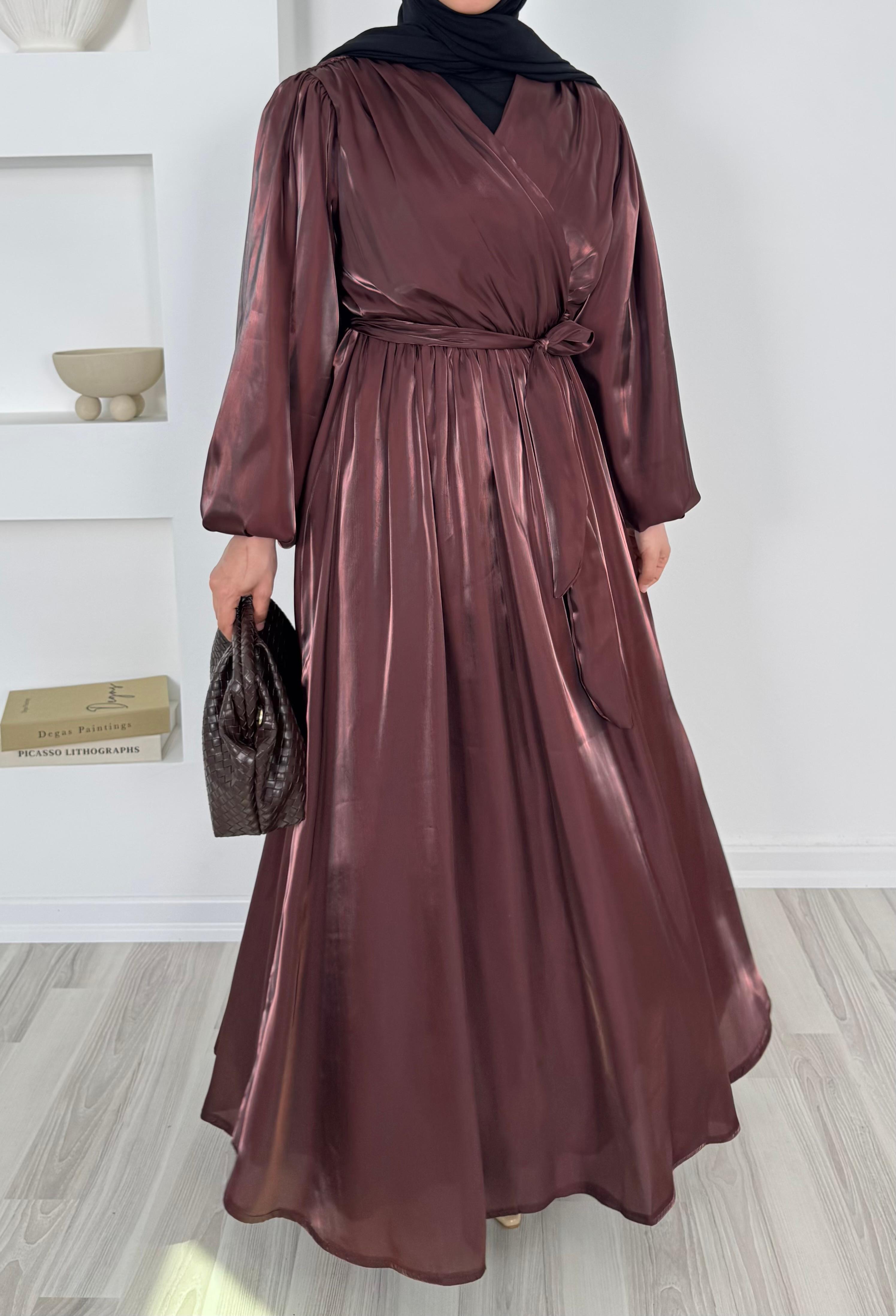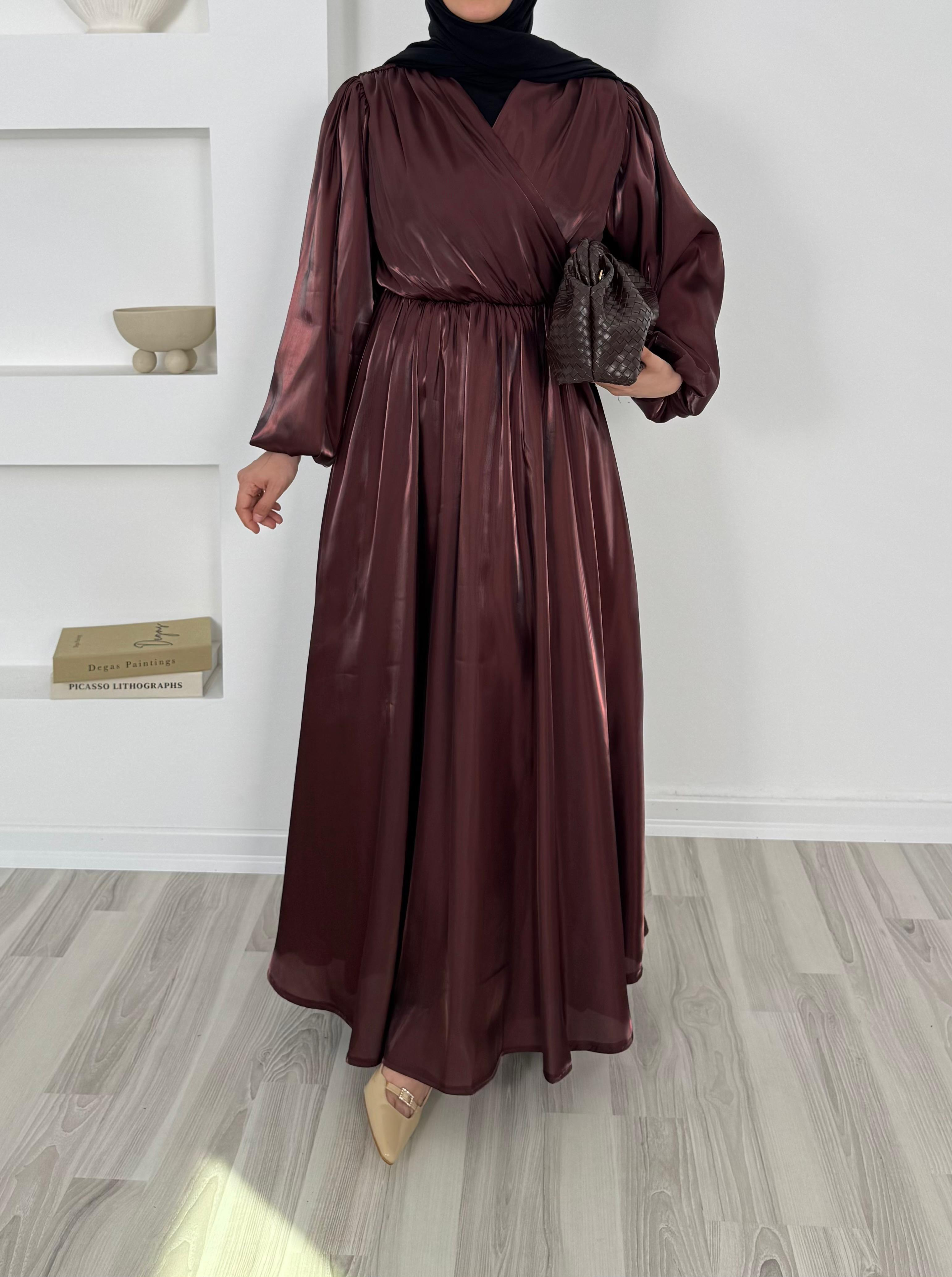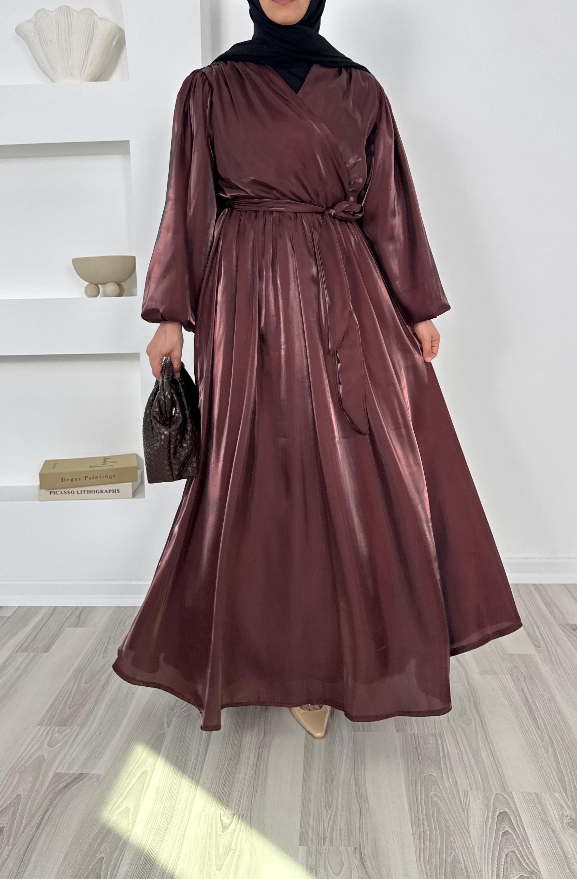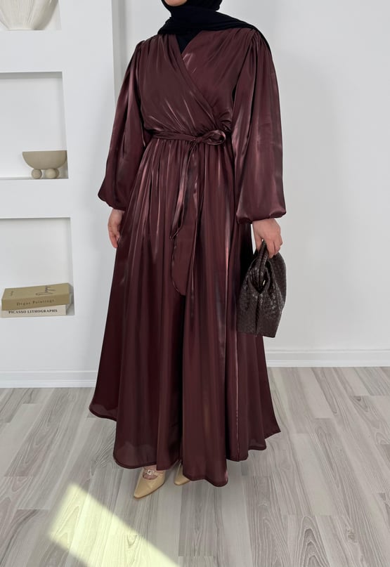 balon kollu önü çapraz appel organze elbise