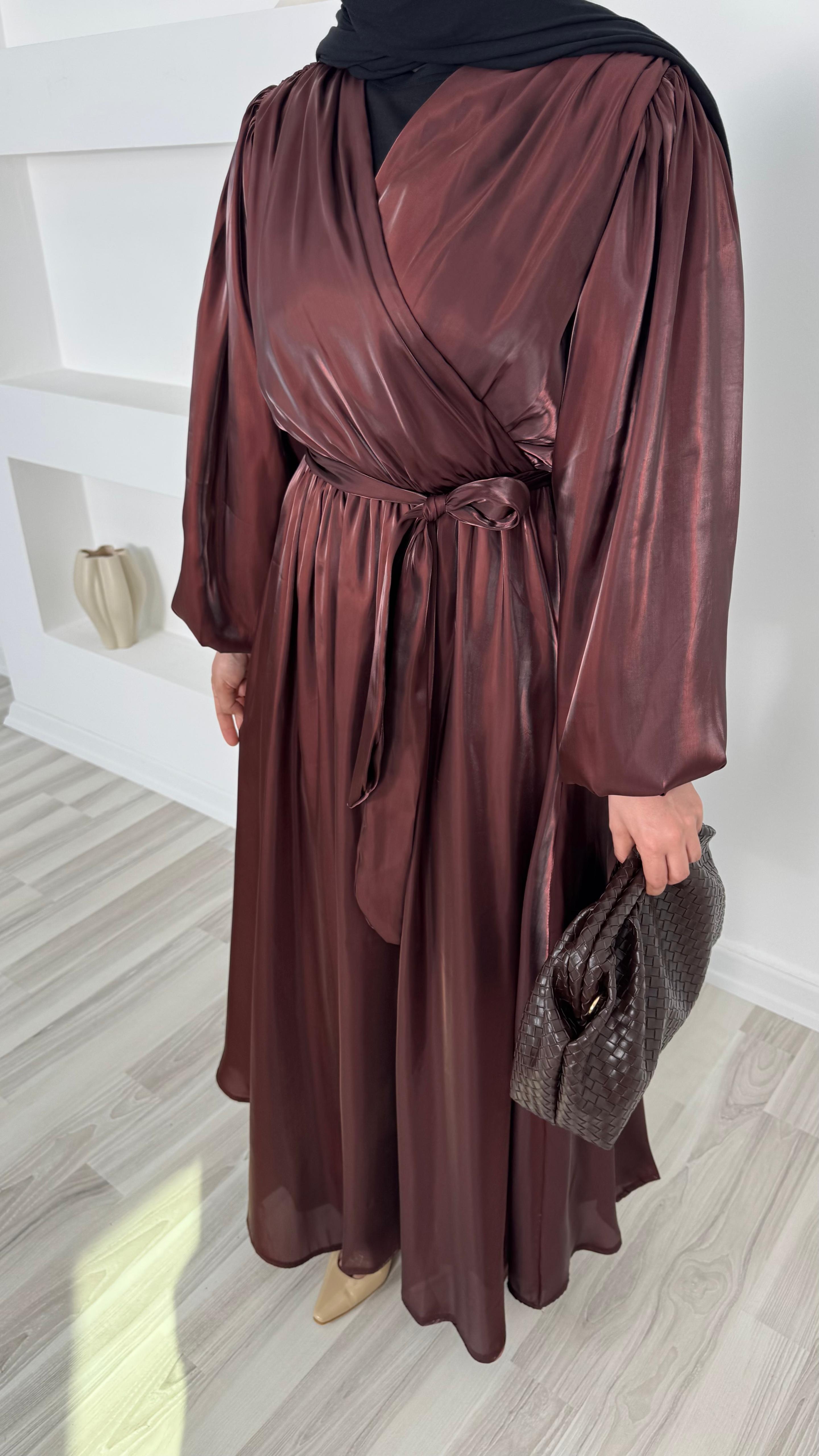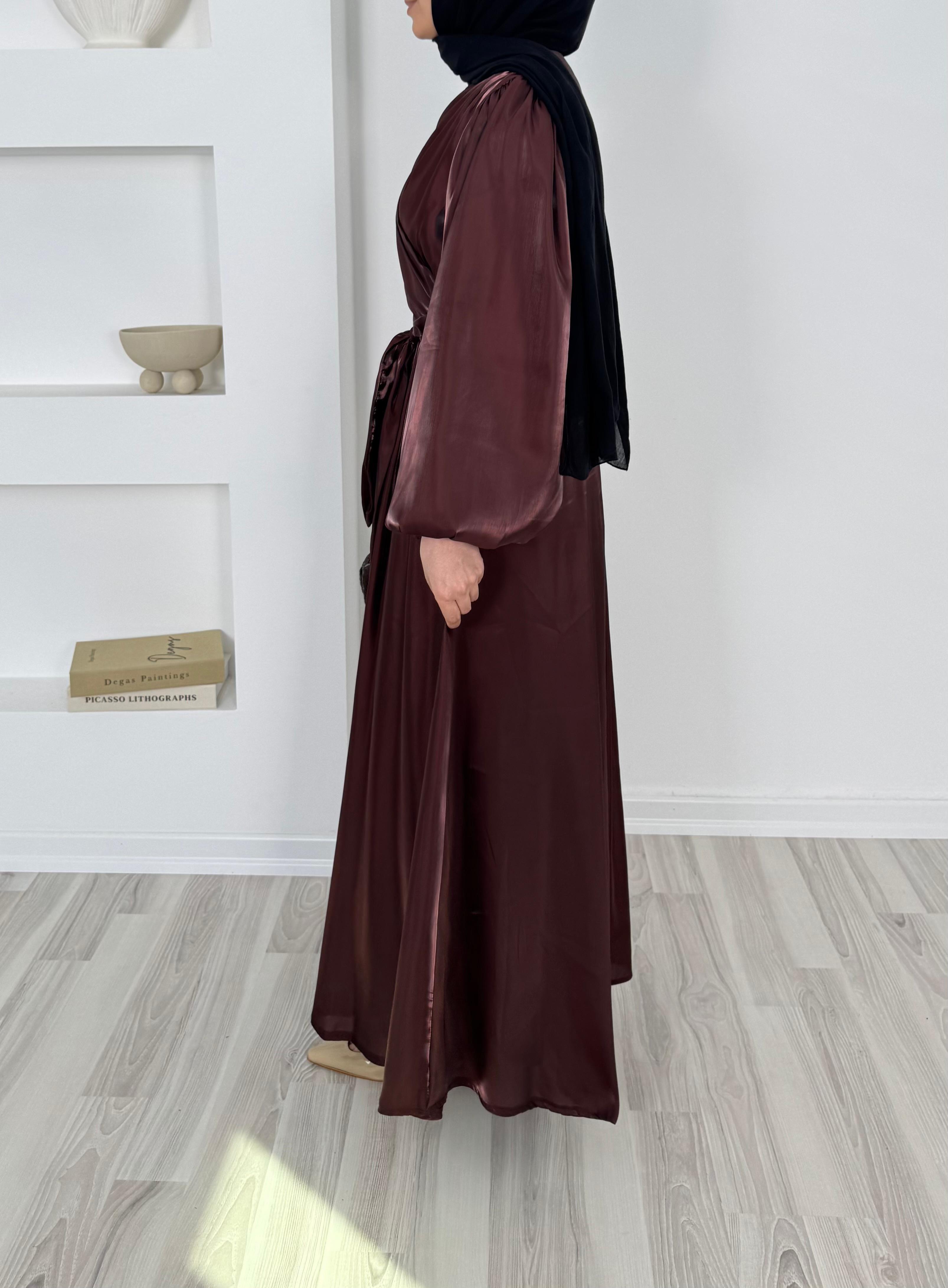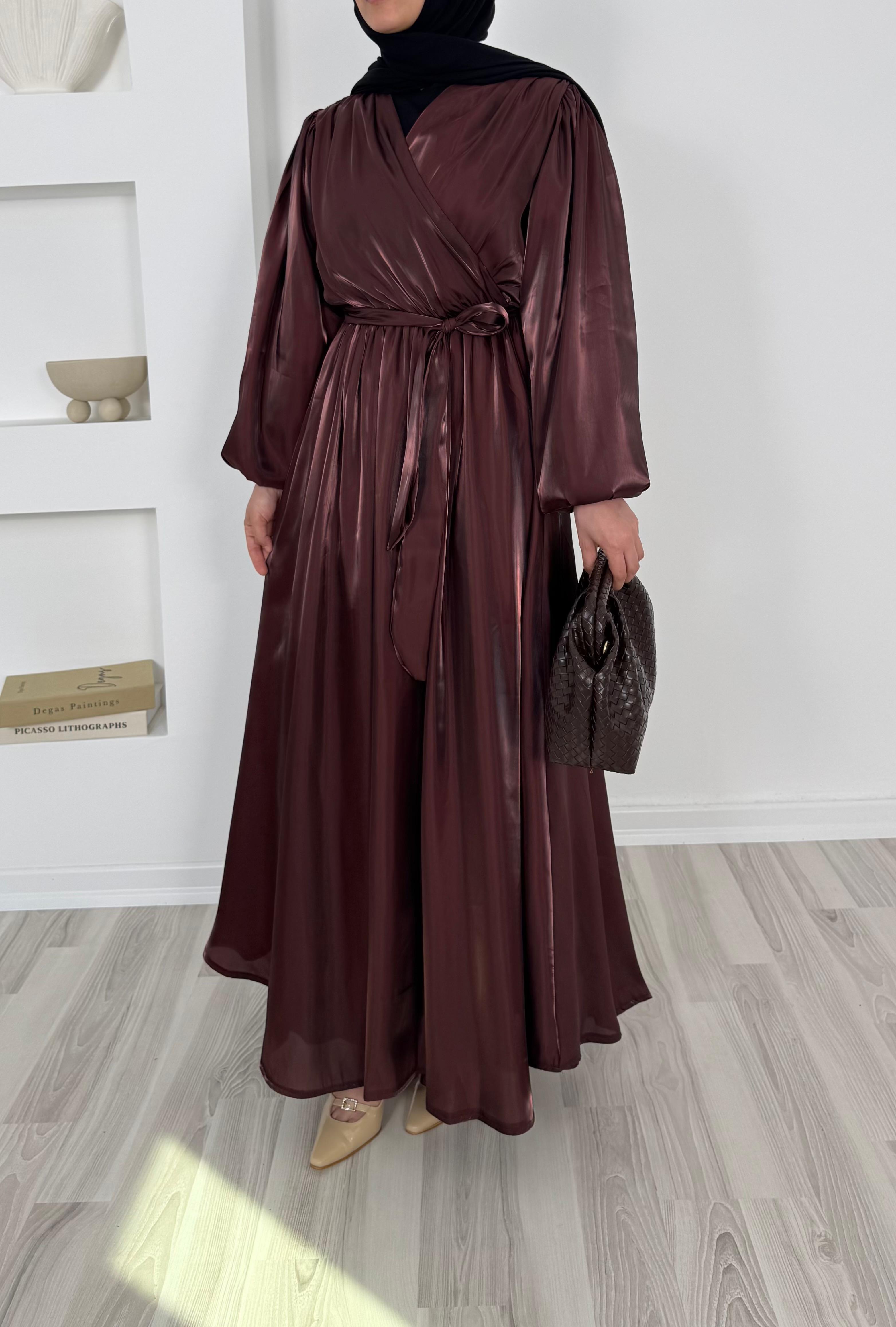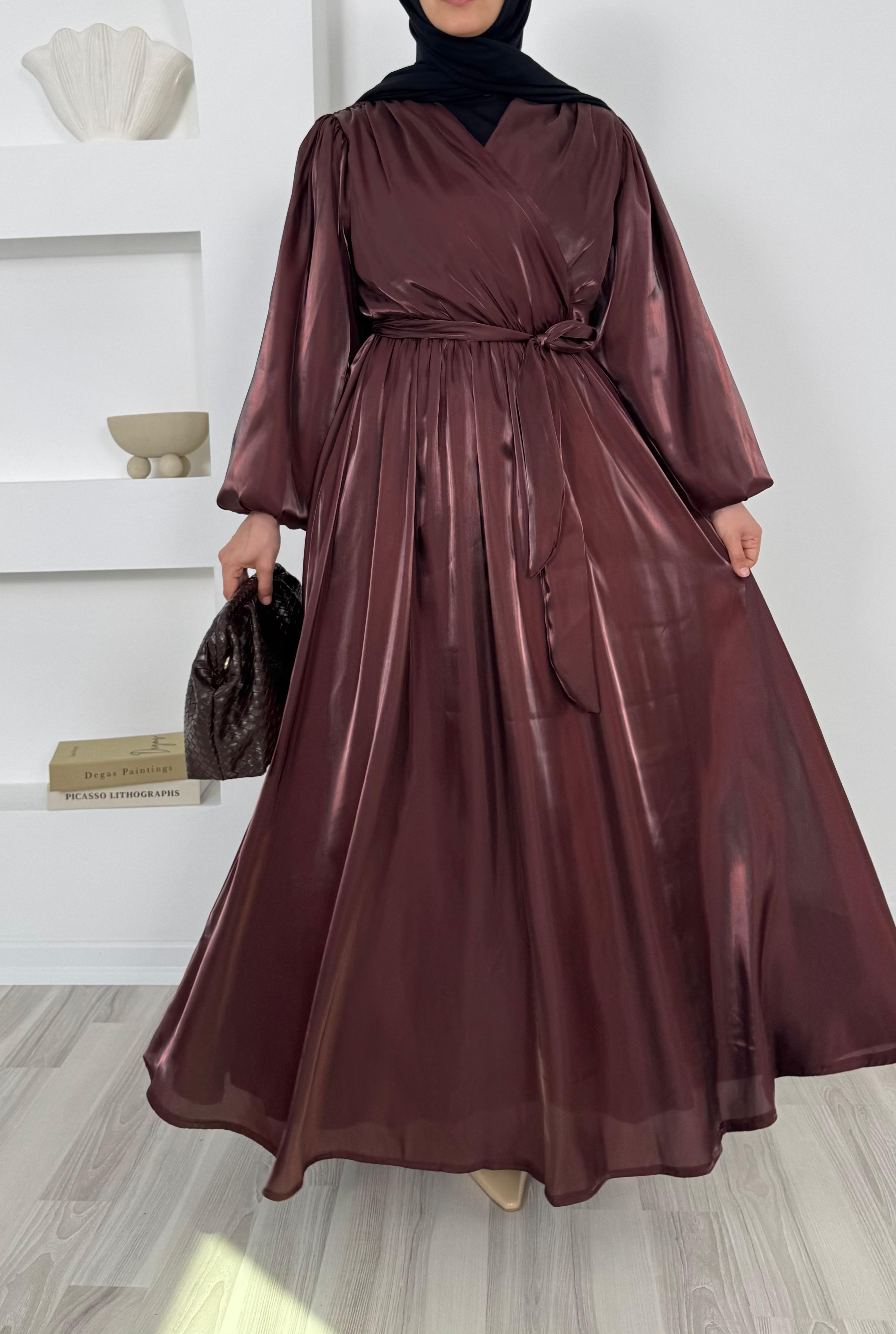 balon kollu önü çapraz appel organze elbise
