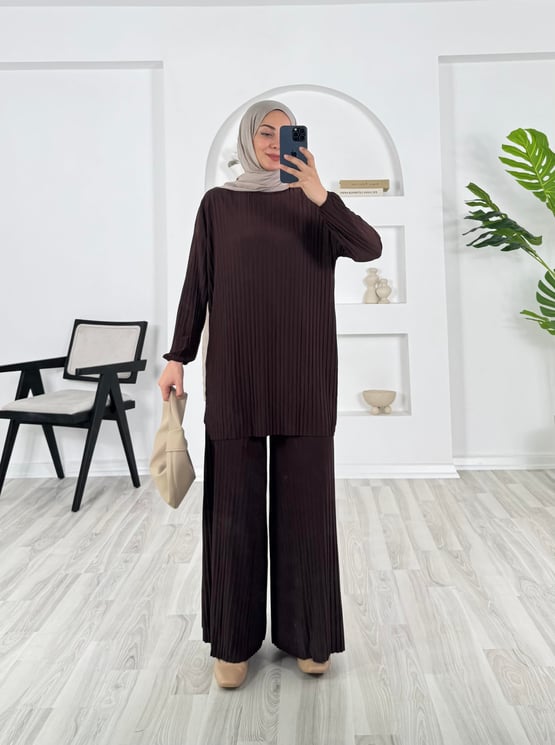 7126-sandy kumaş-pantolonlu takım-acı kahve (7126)