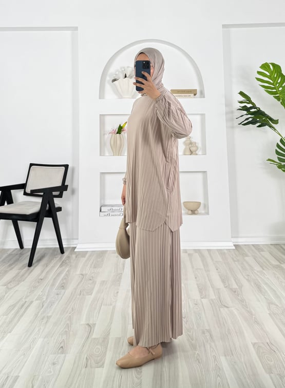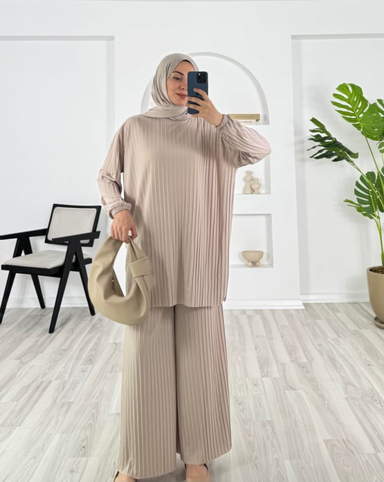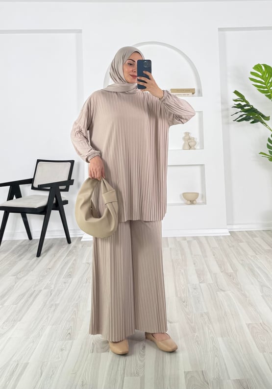 7126-sandy kumaş-pantolonlu takım-krem (7126)