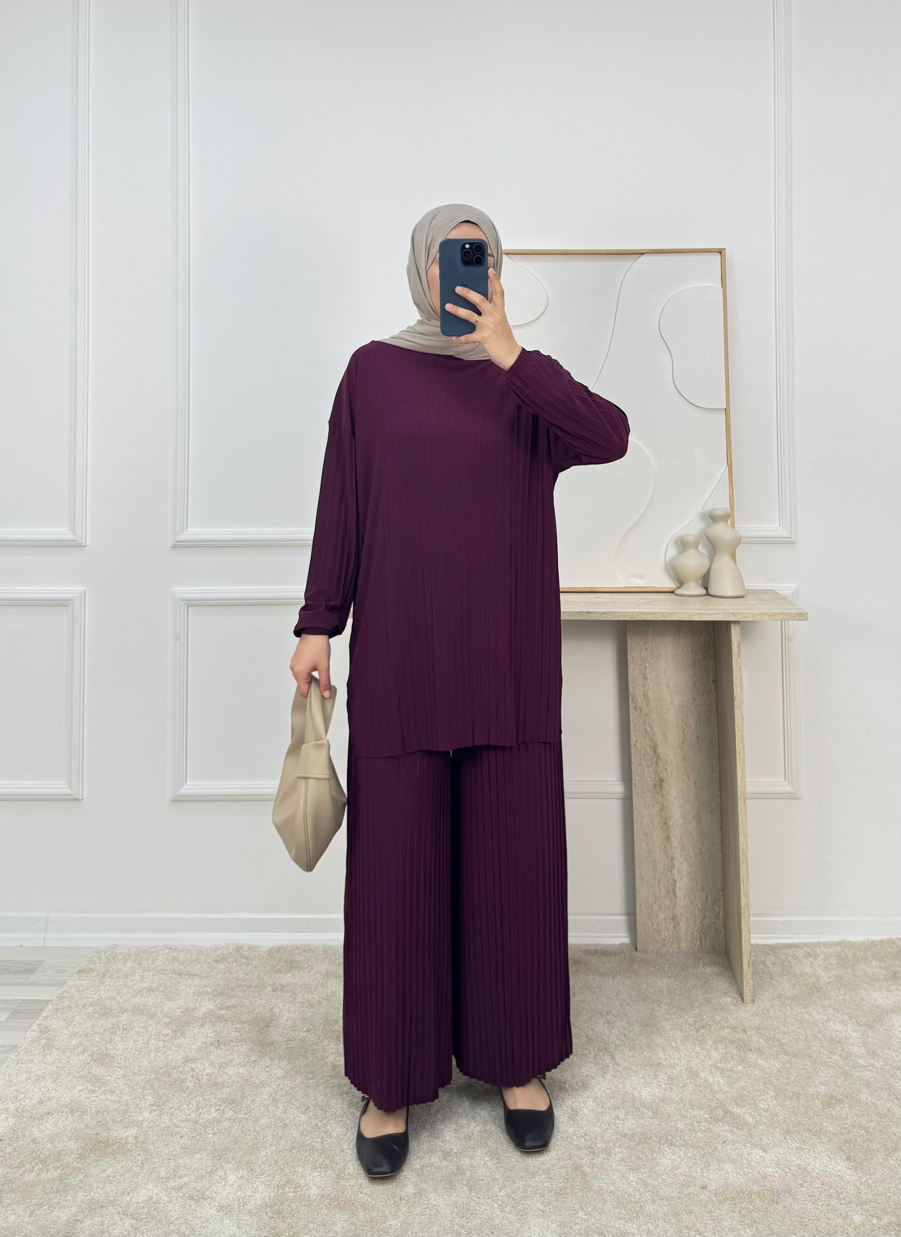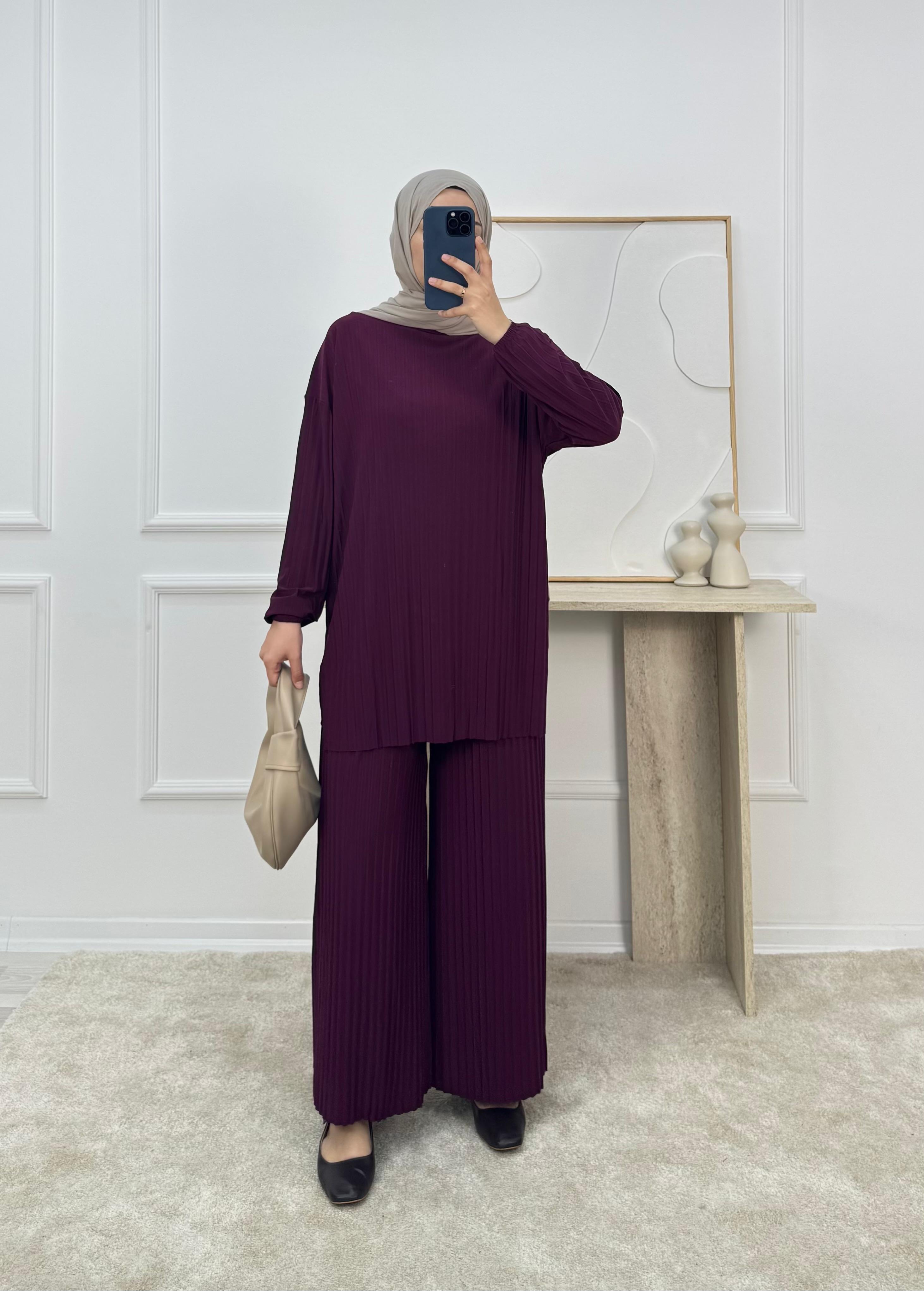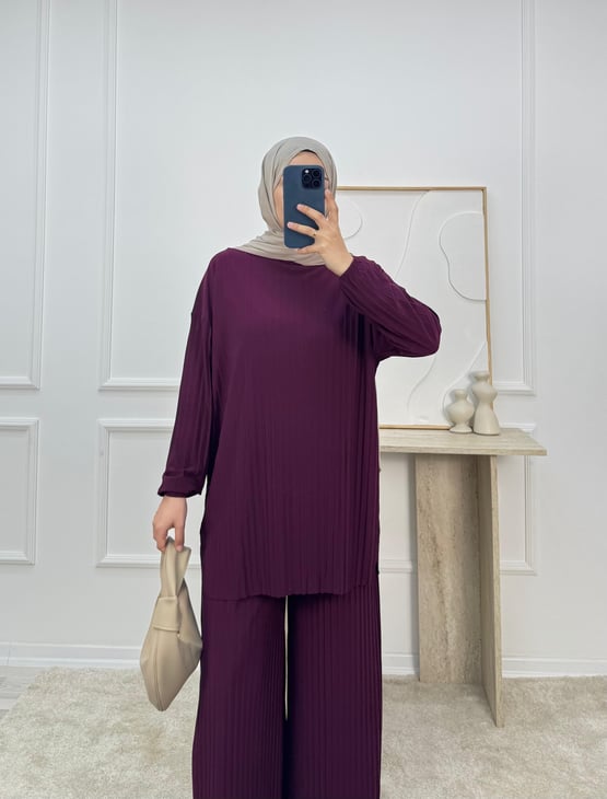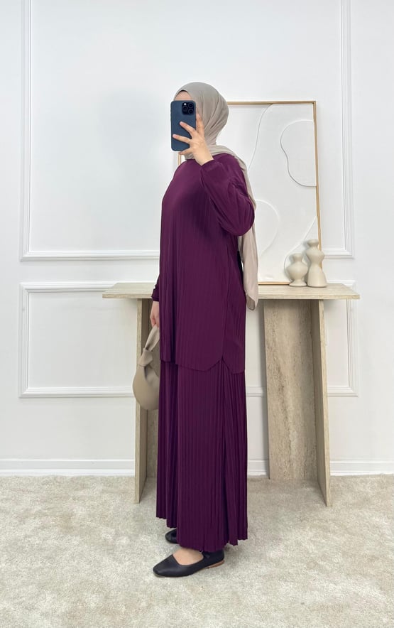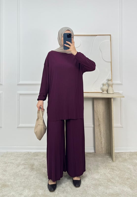 7126-sandy kumaş-pantolonlu takım-patlıcan moru (7126)