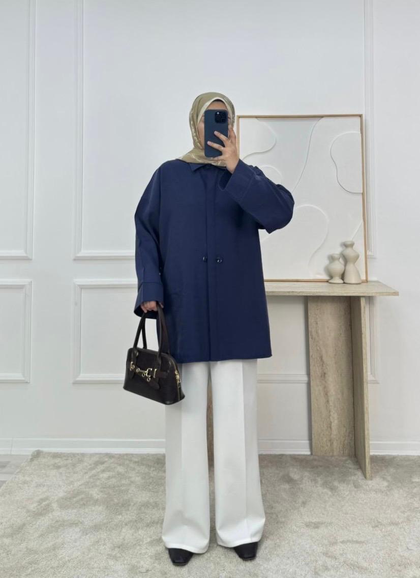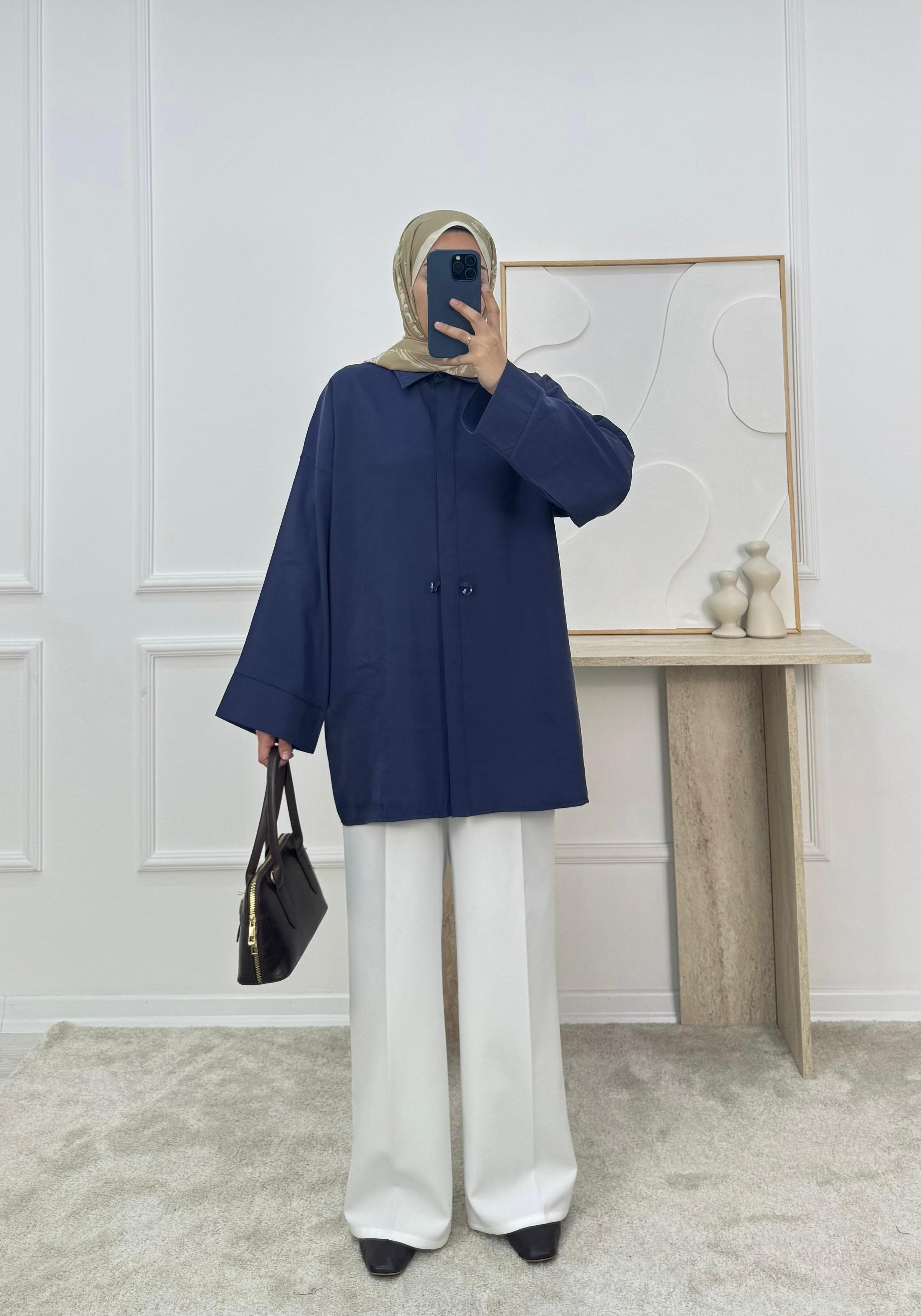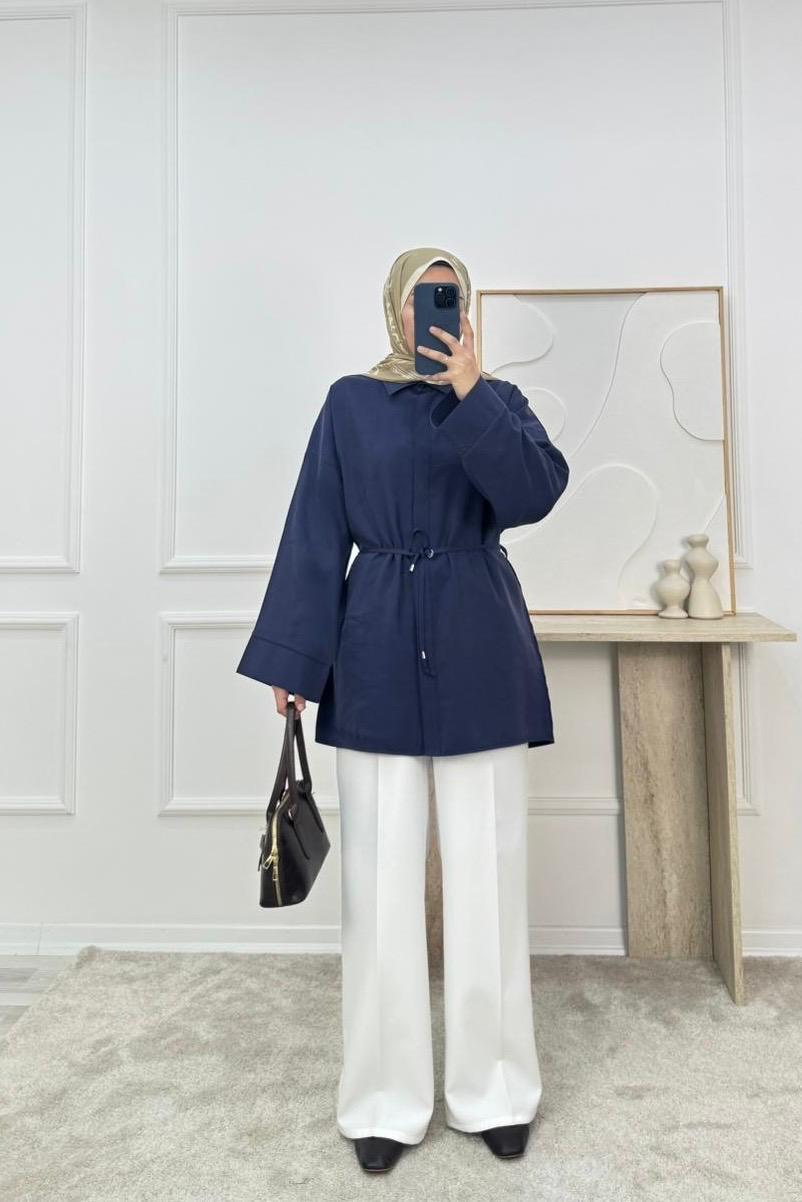 7138-modal cupra kumaş ön detaylı gömlek-lacivert (7138)