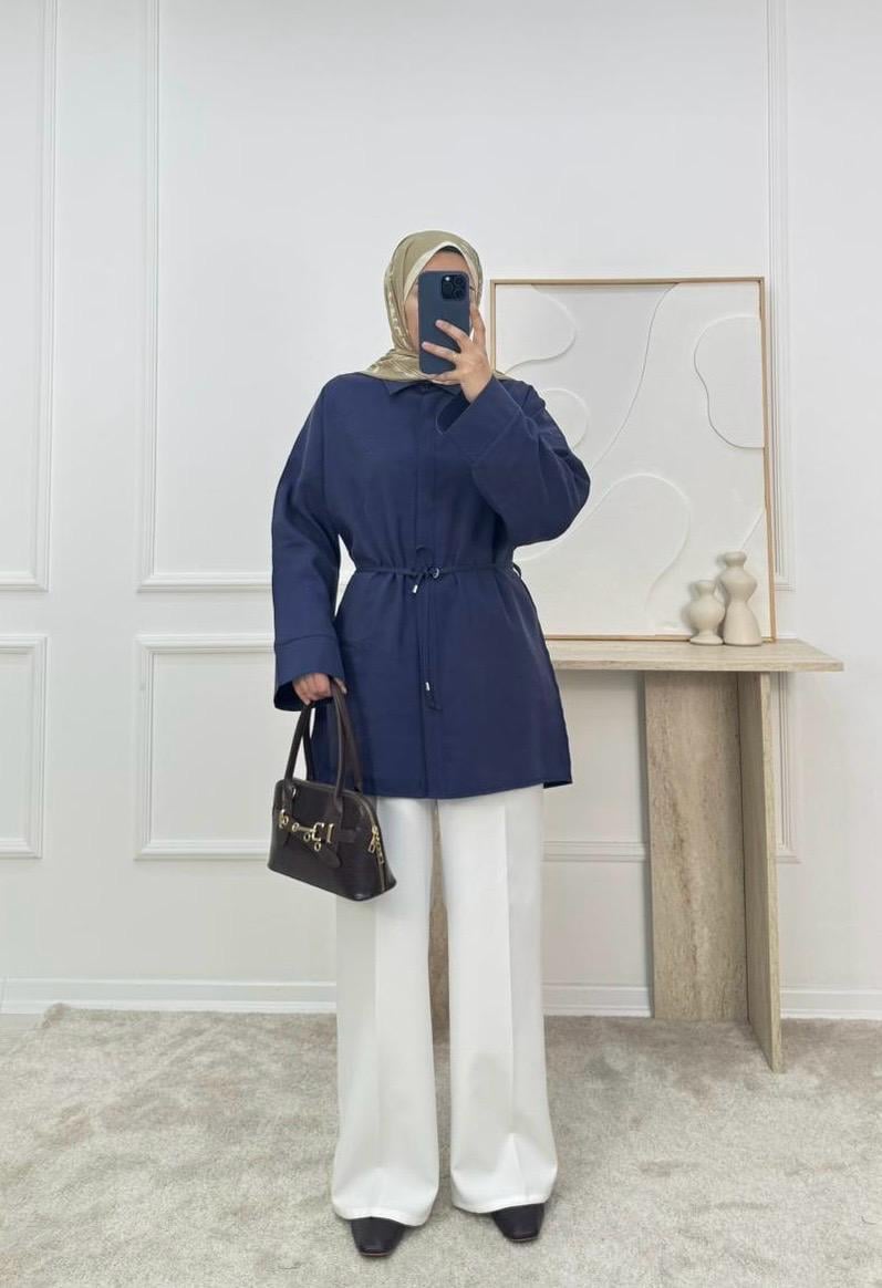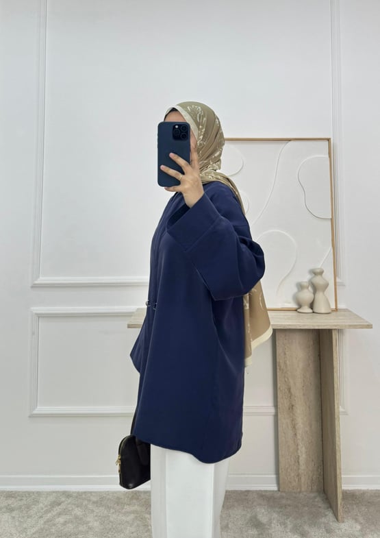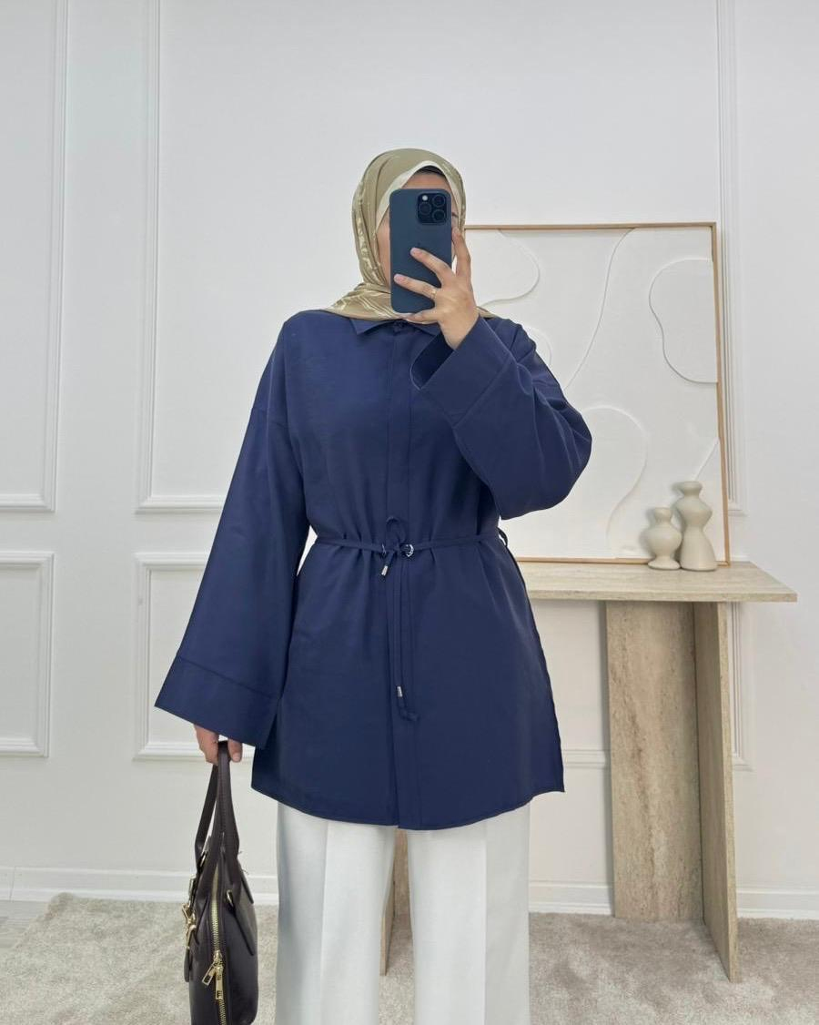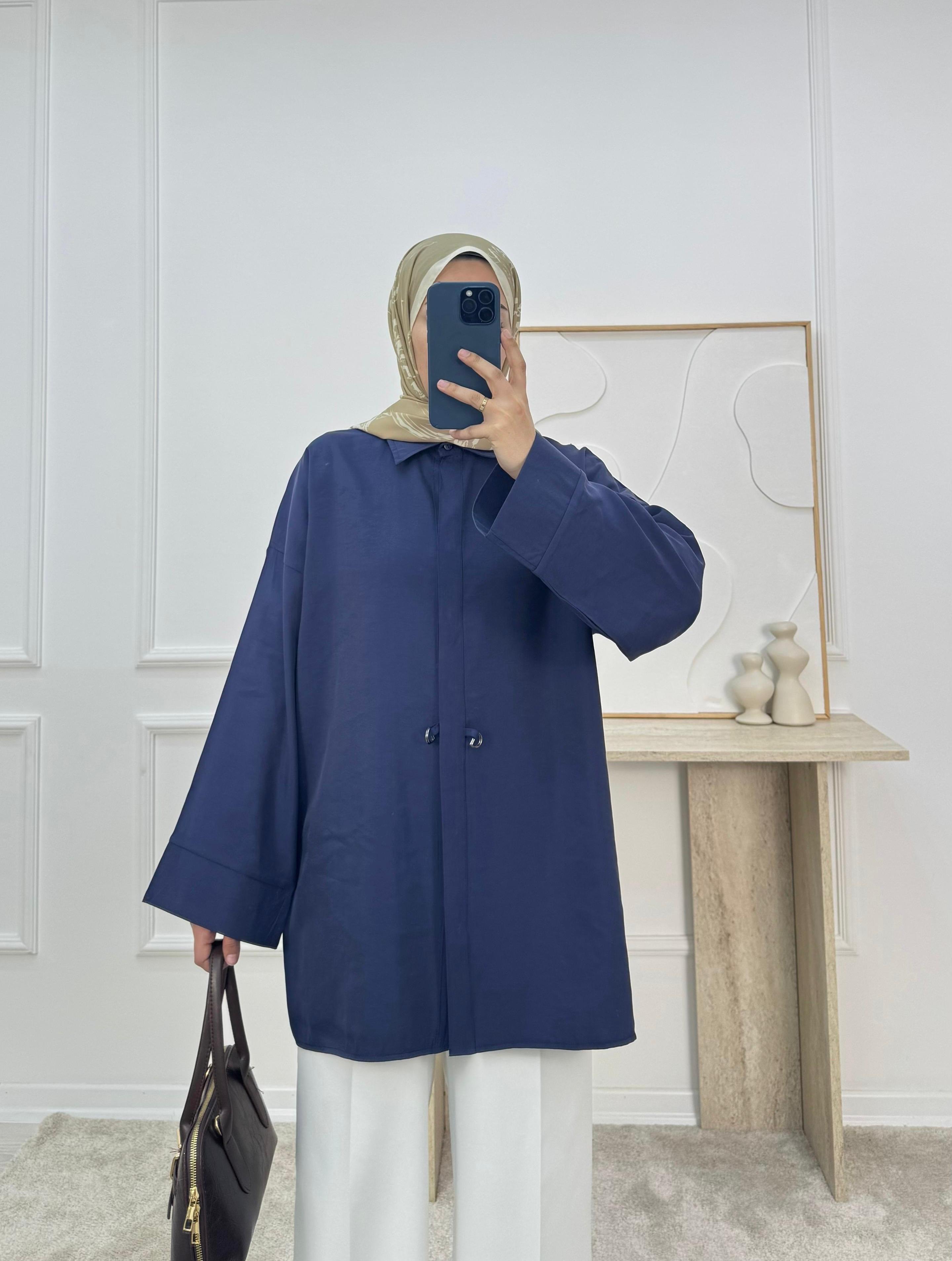 7138-modal cupra kumaş ön detaylı gömlek-lacivert (7138)