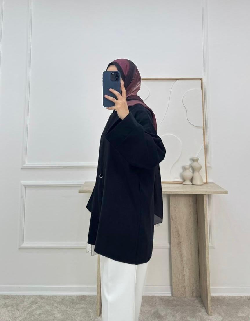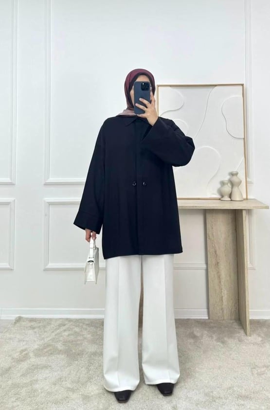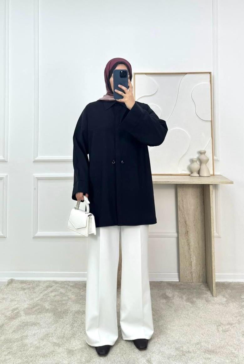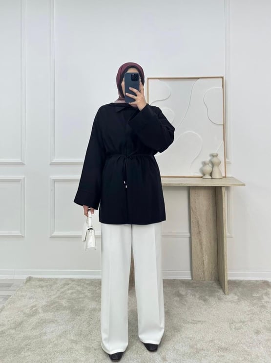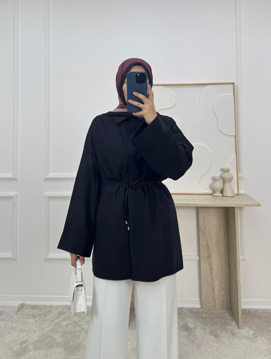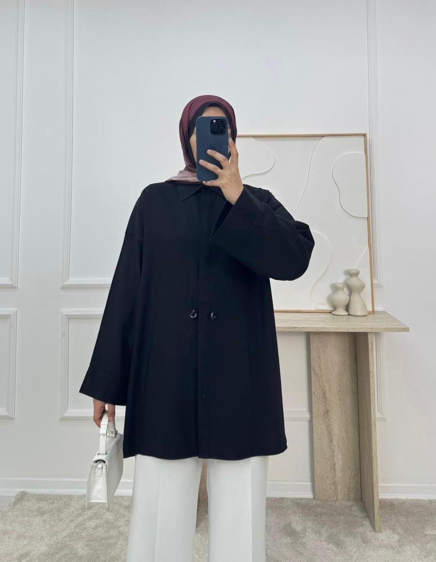 7138-modal cupra kumaş ön detaylı gömlek-siyah (7138)