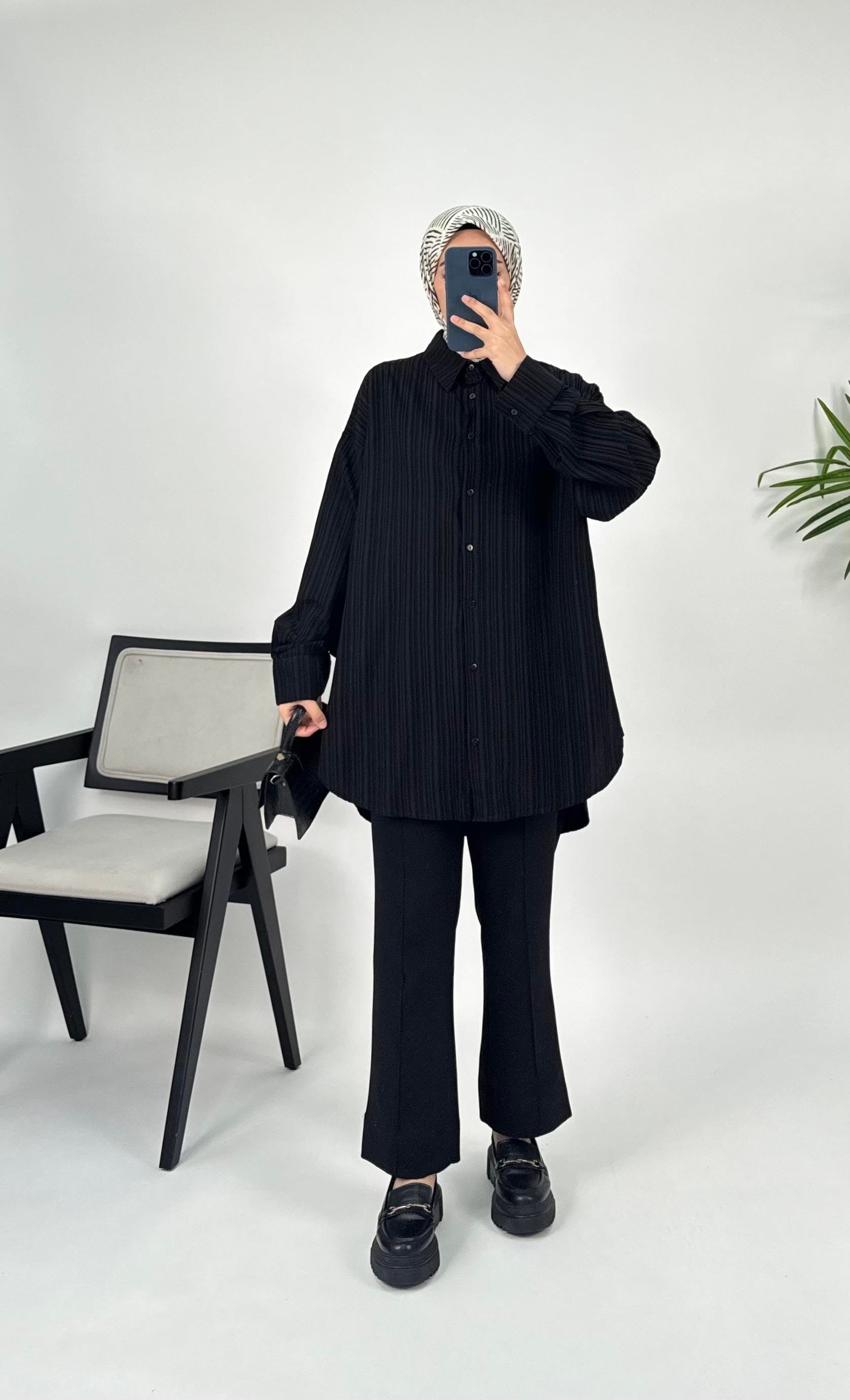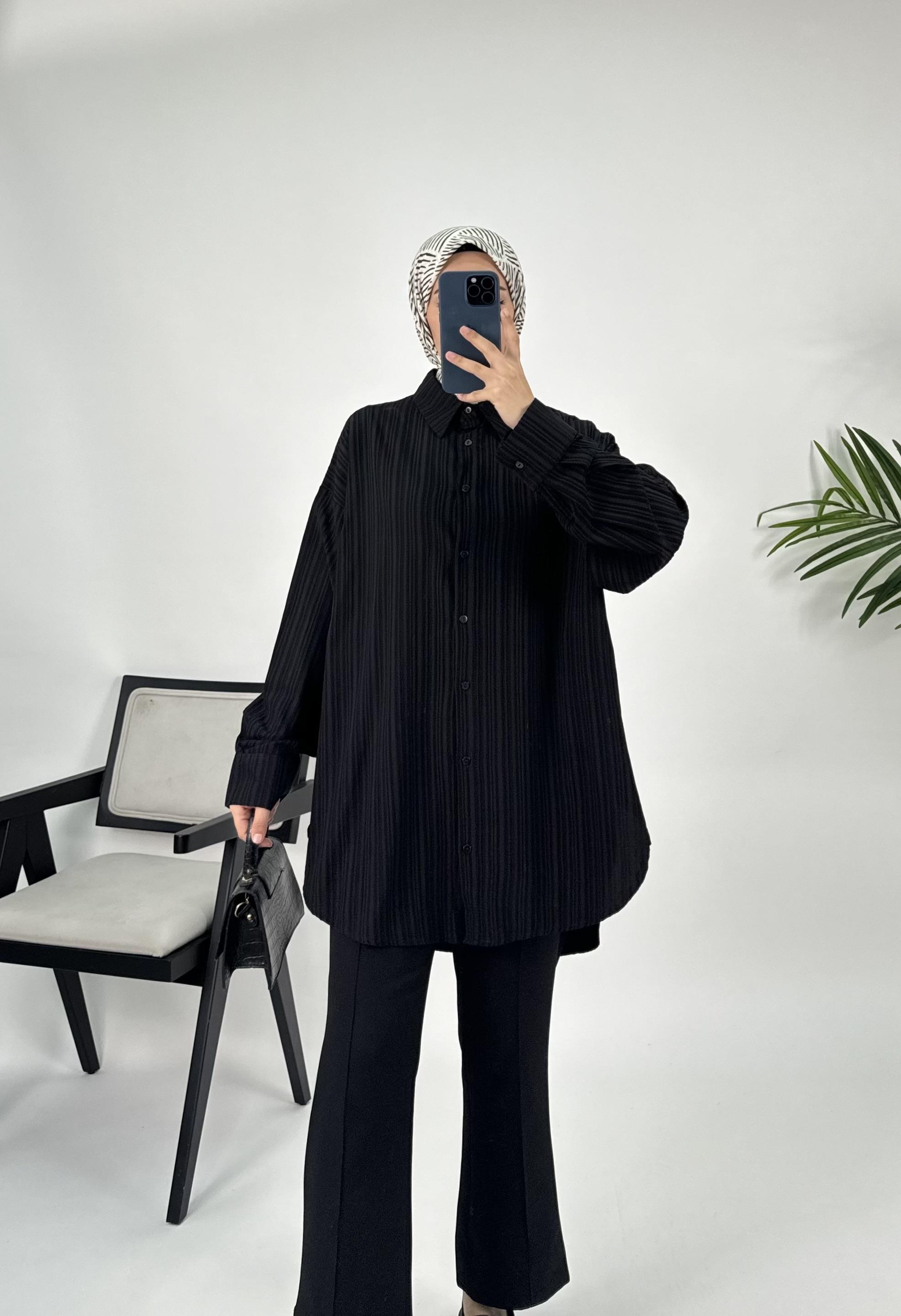 7167-Linda kumaş-düz model düğmeli tunik-siyah (7167)