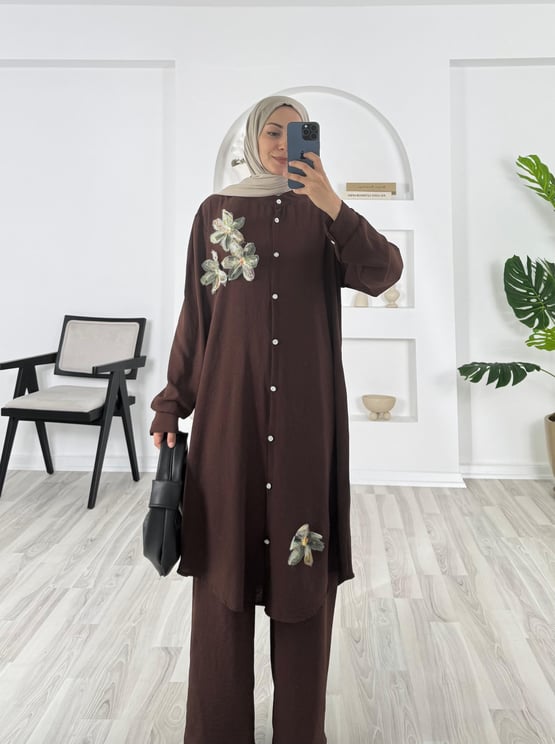 süs çiçek detaylı pantolonlu takım