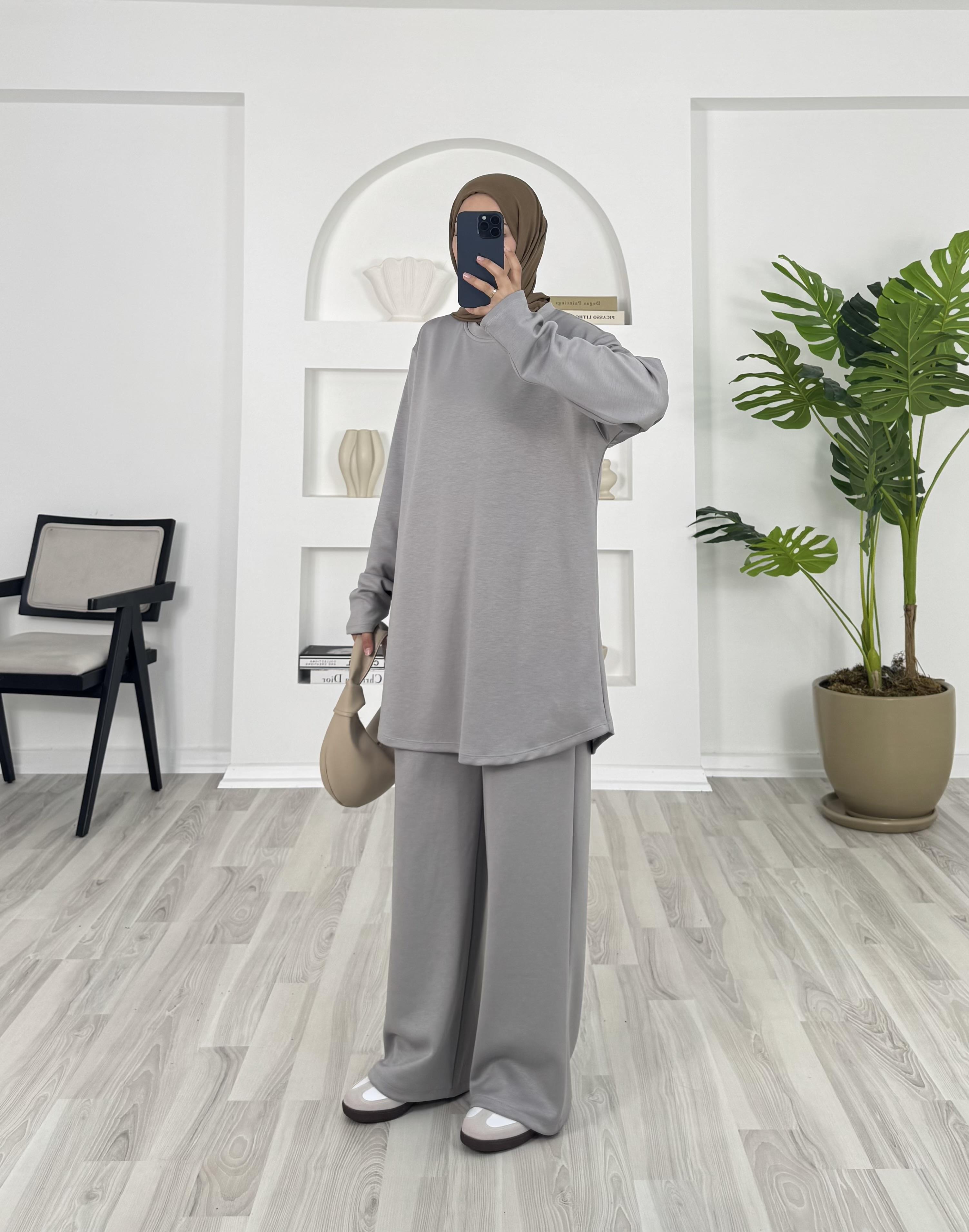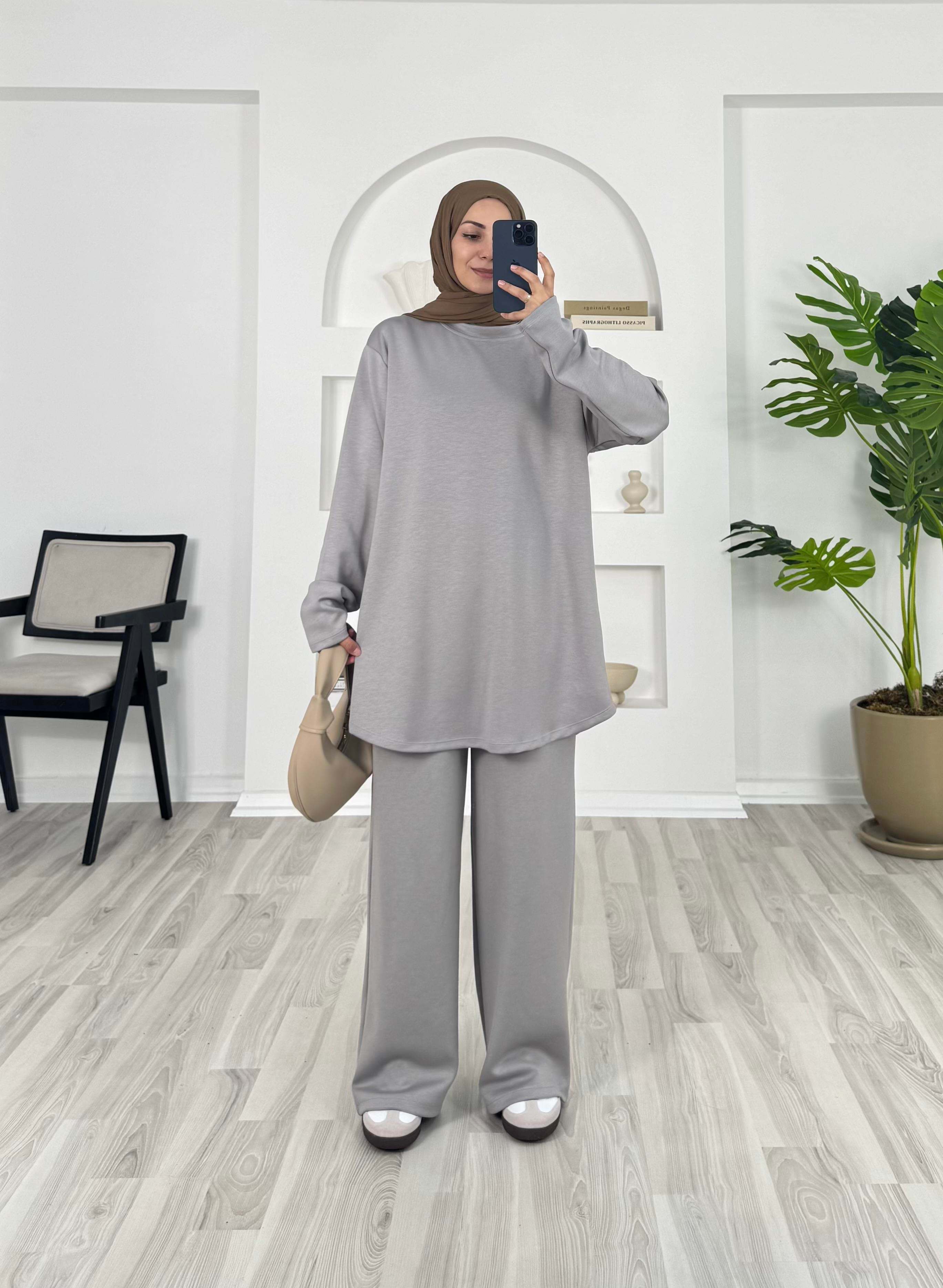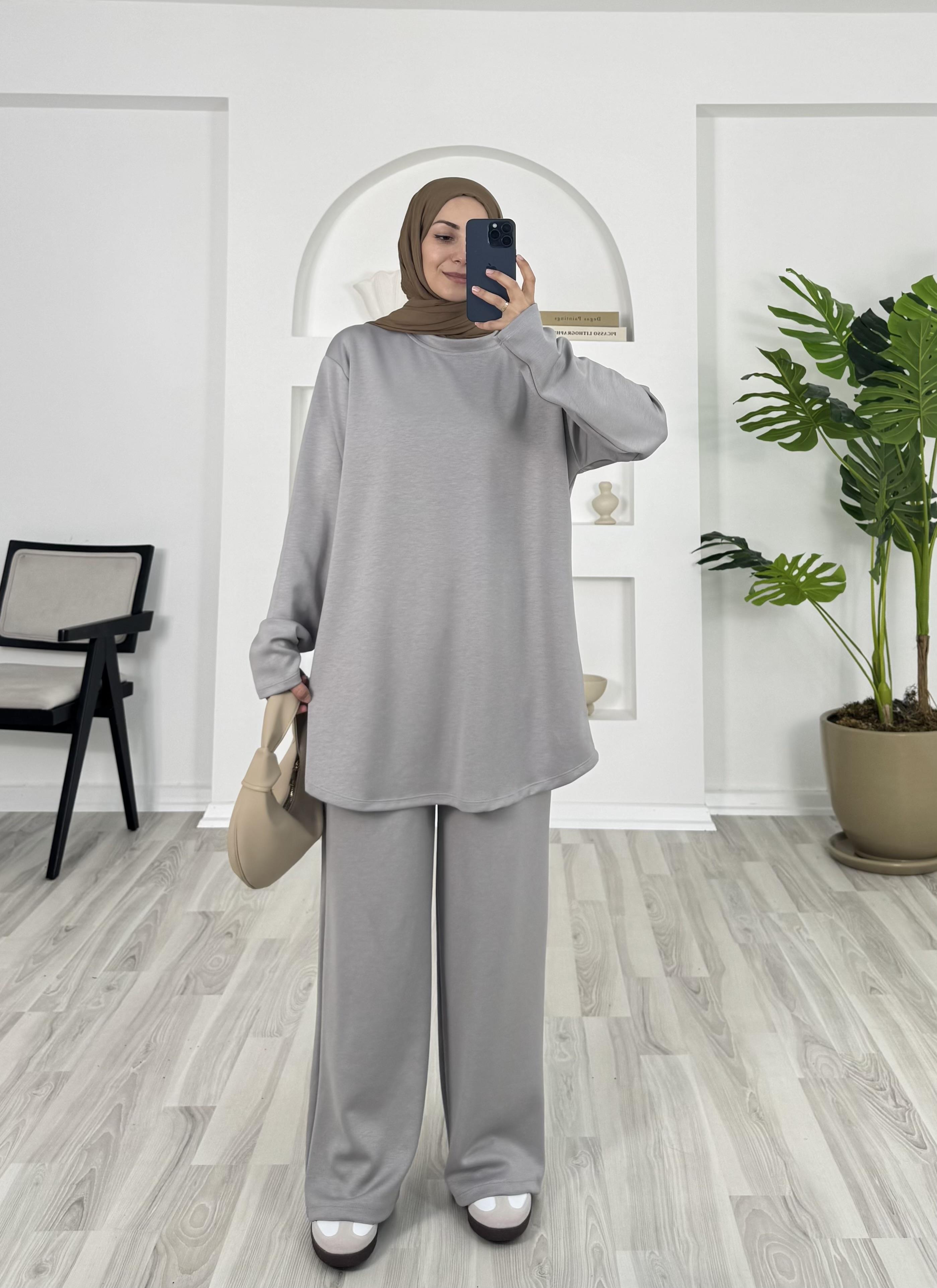 7310 - oysho kumaş bol paça pantolonlu takım - gri (7310)