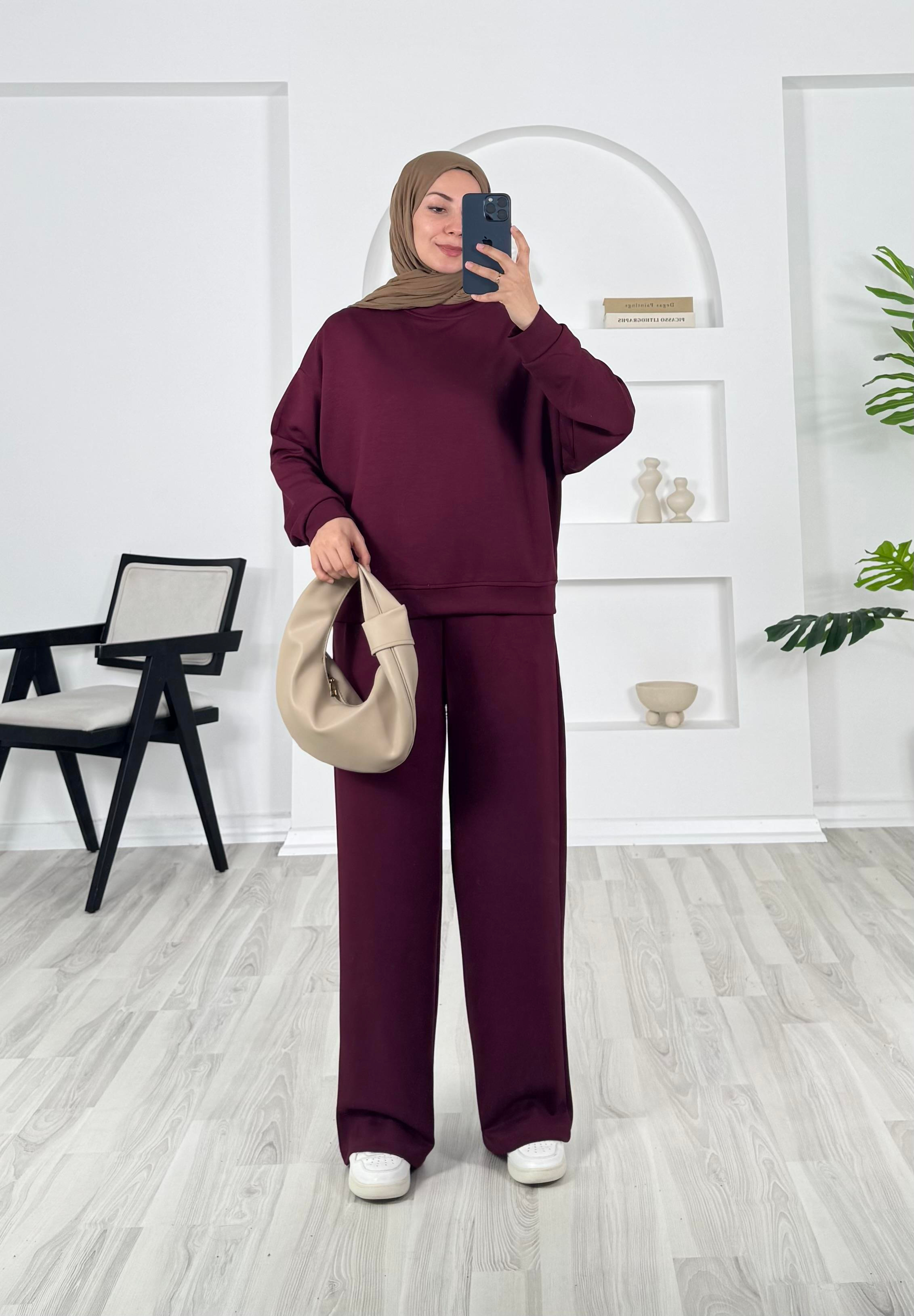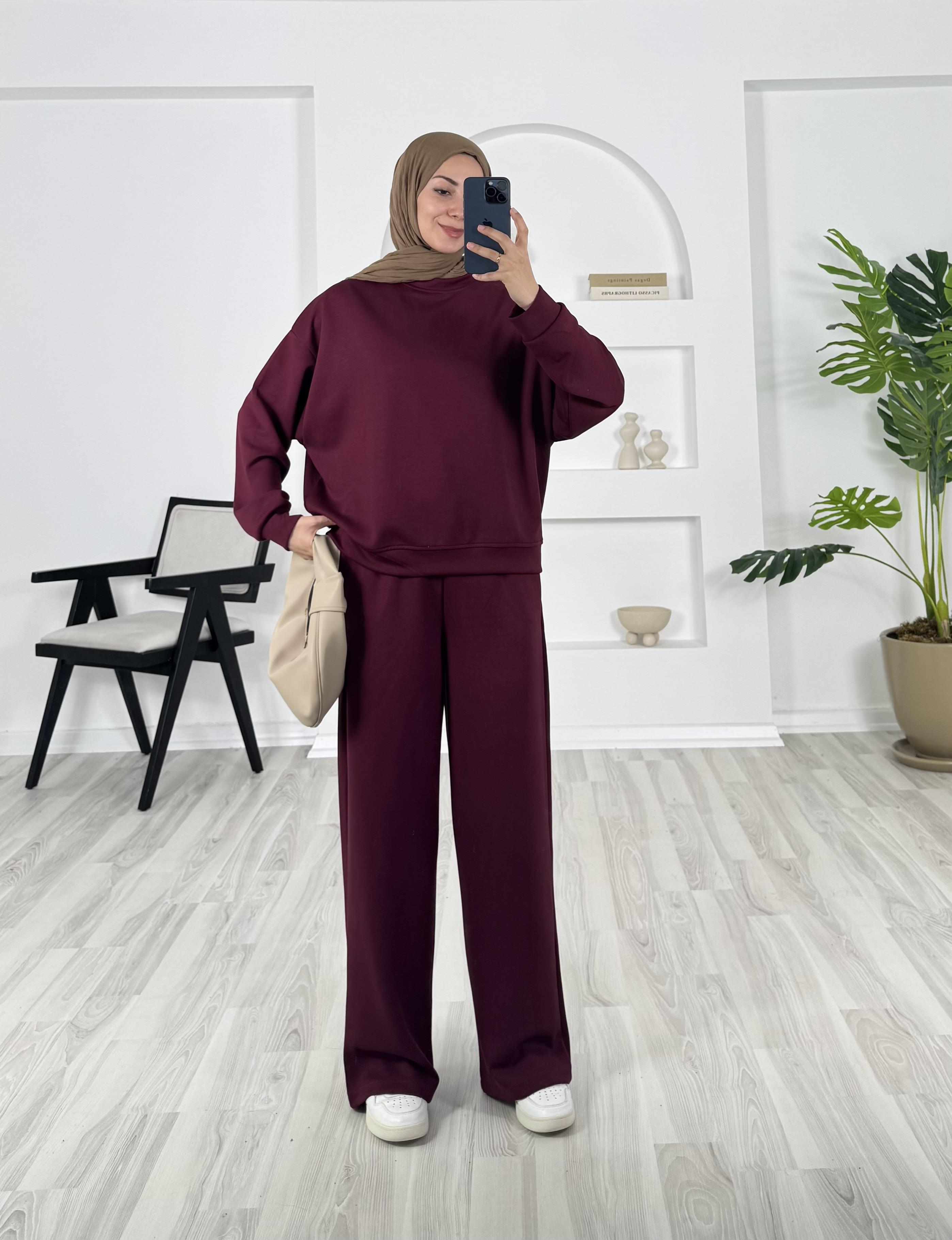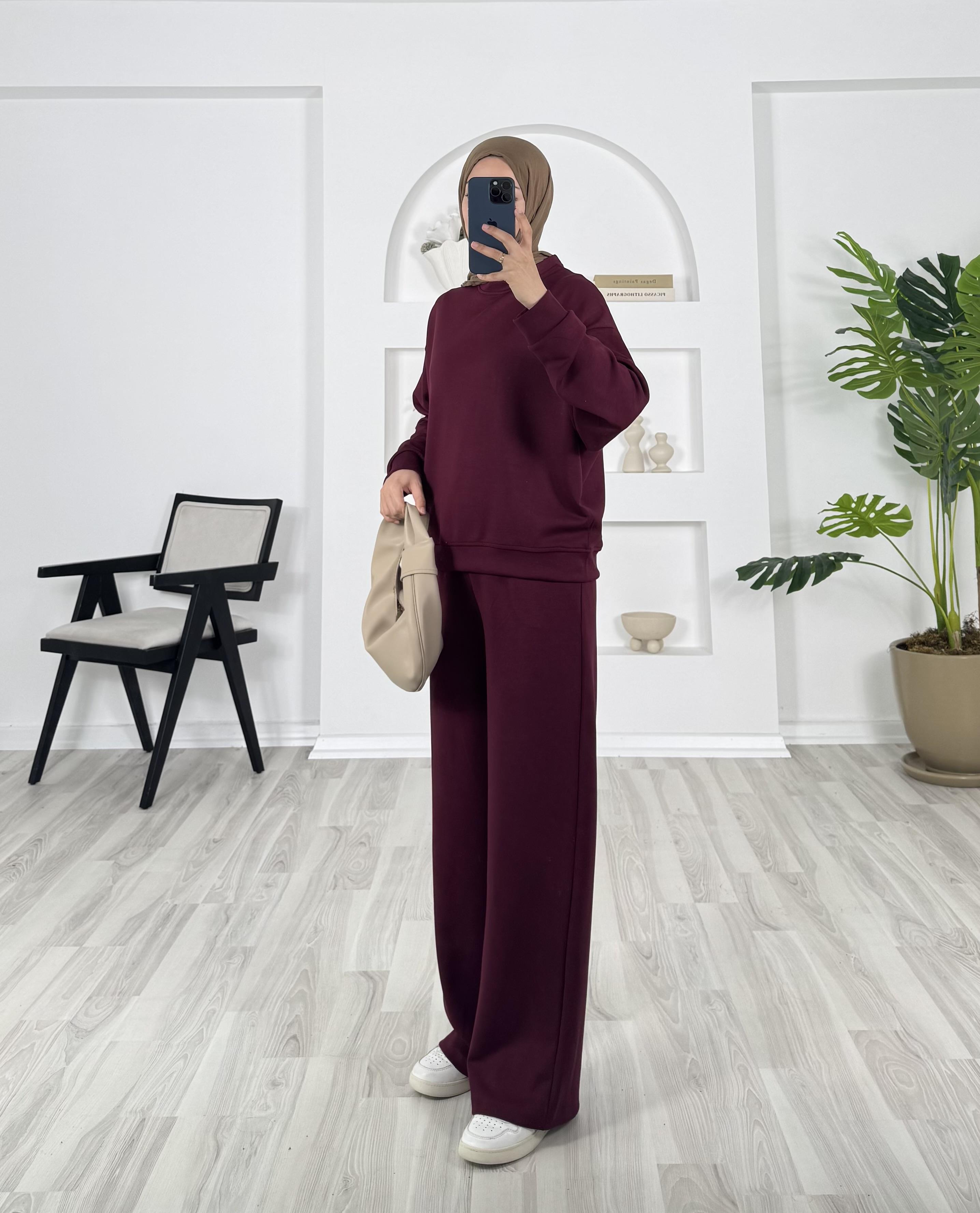 7312 - oysho kumaş bol paça pantolon krop takım - bordo (7312)