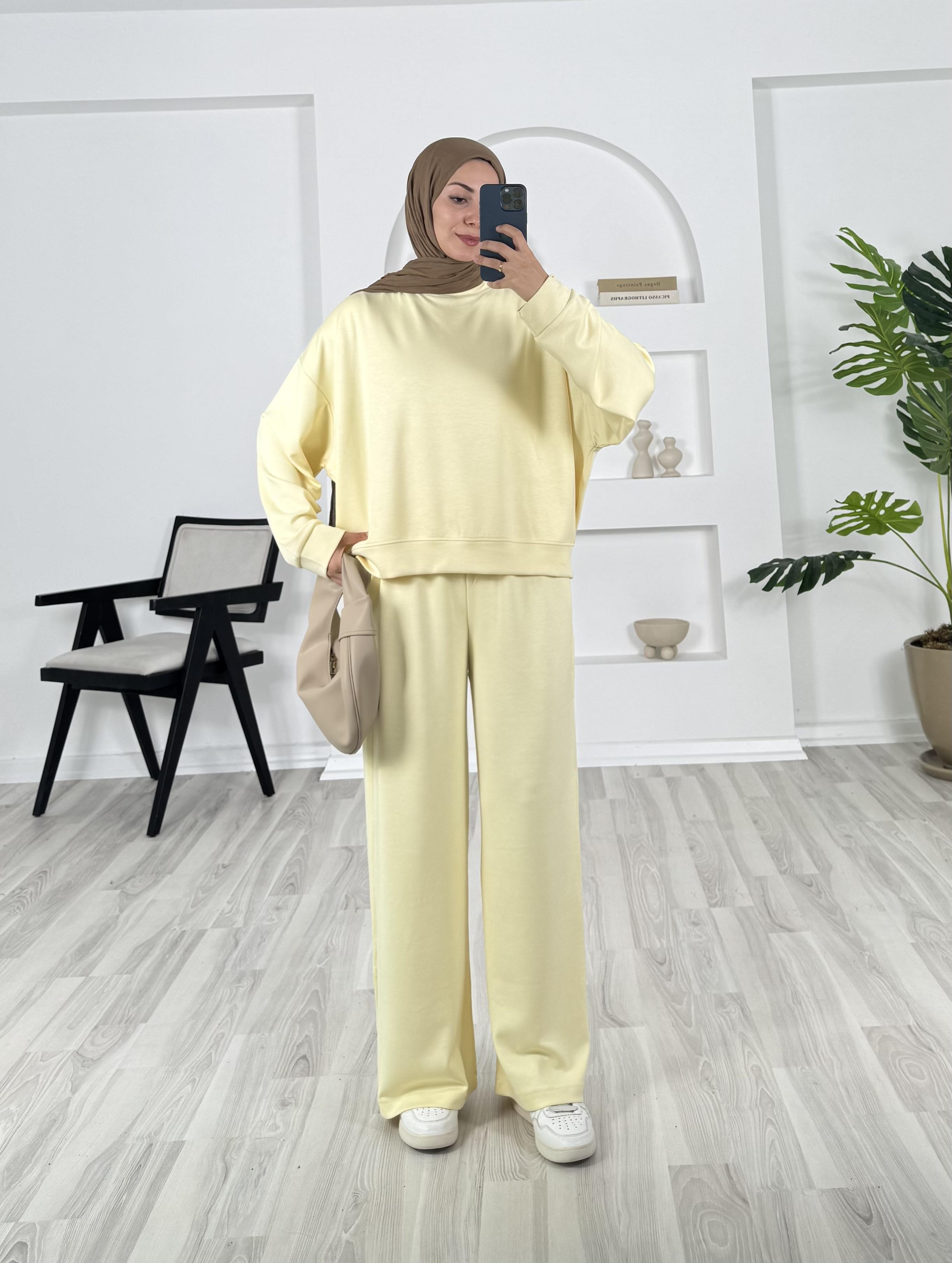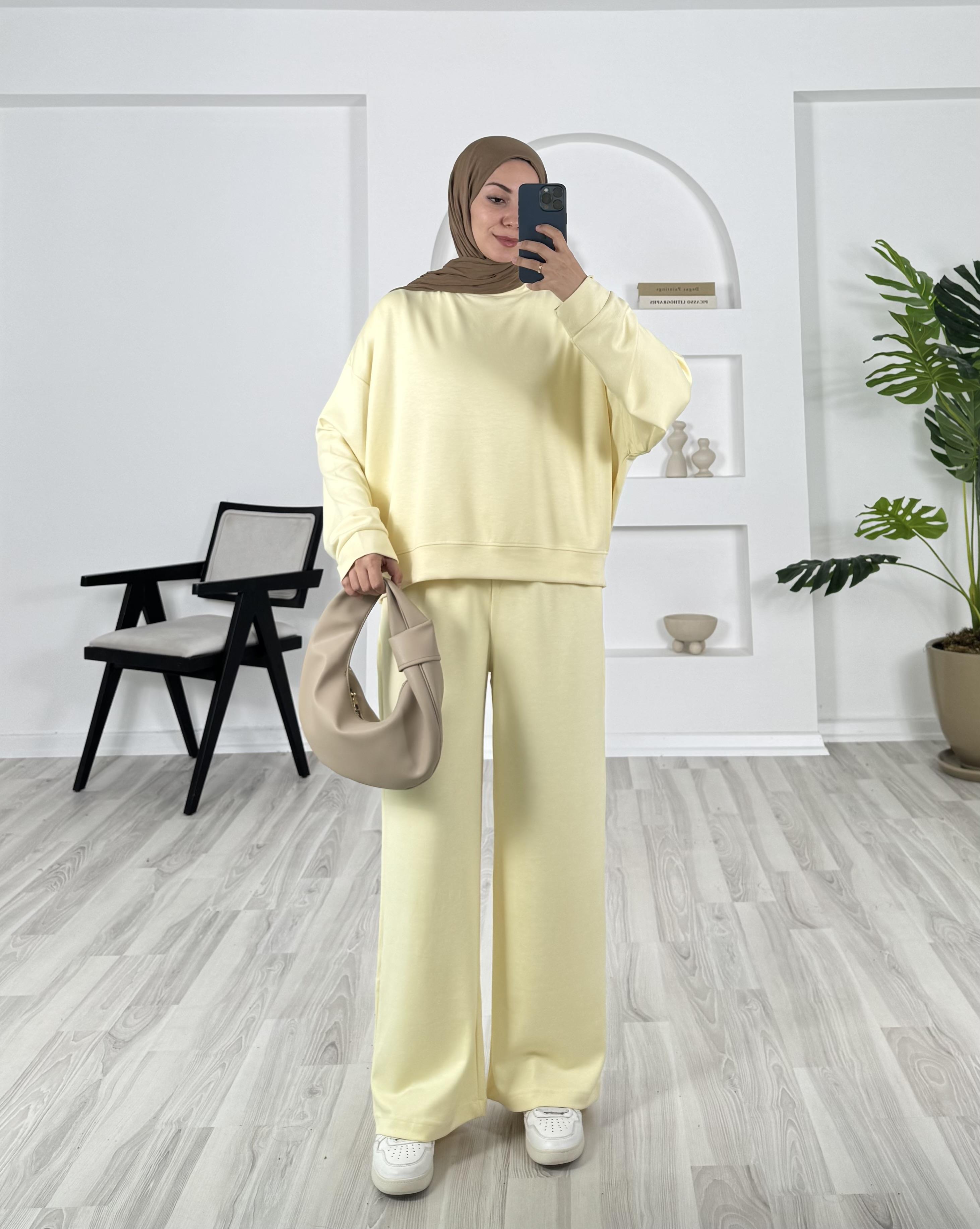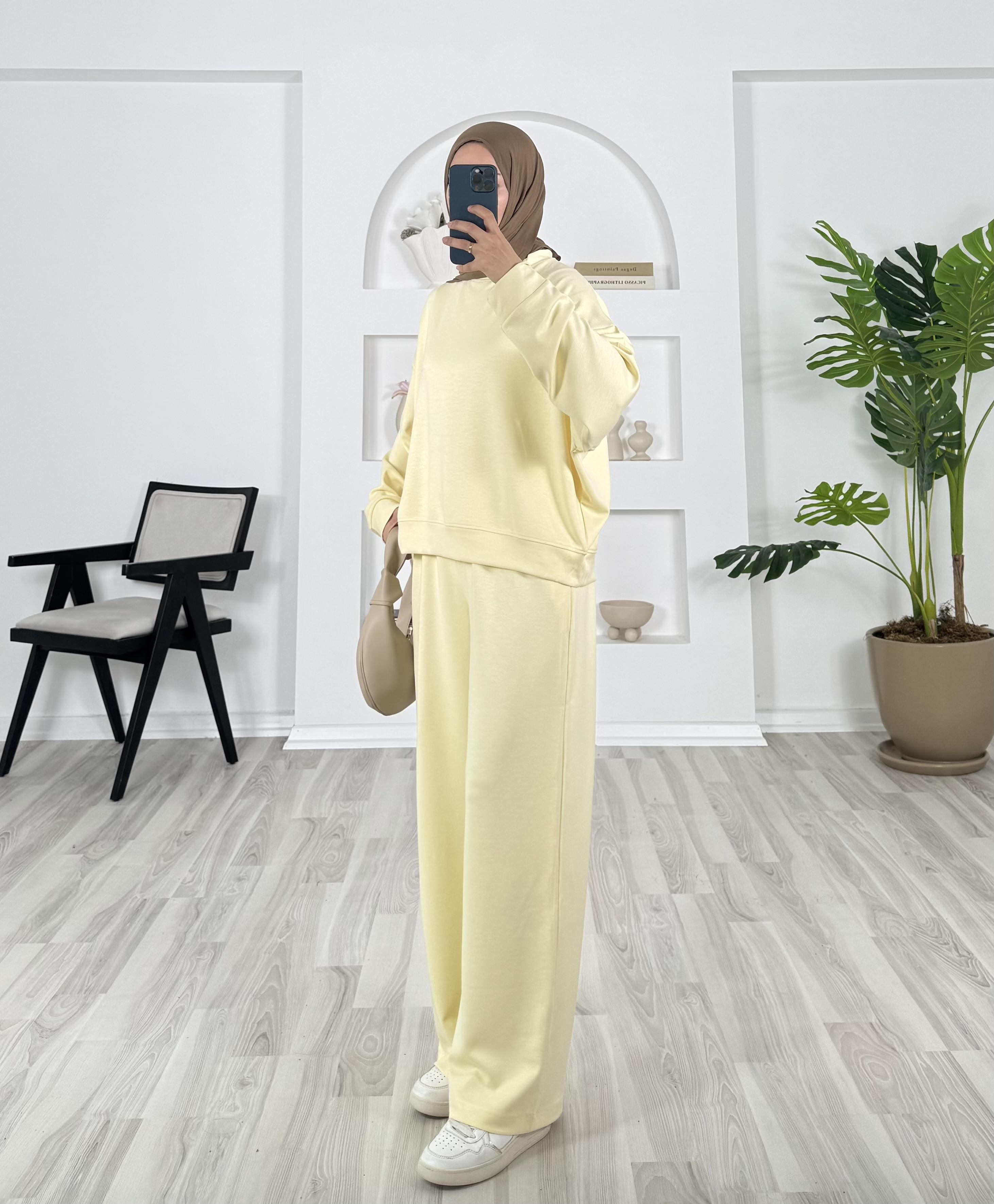 7312 - oysho kumaş bol paça pantolon krop takım - sarı (7312)