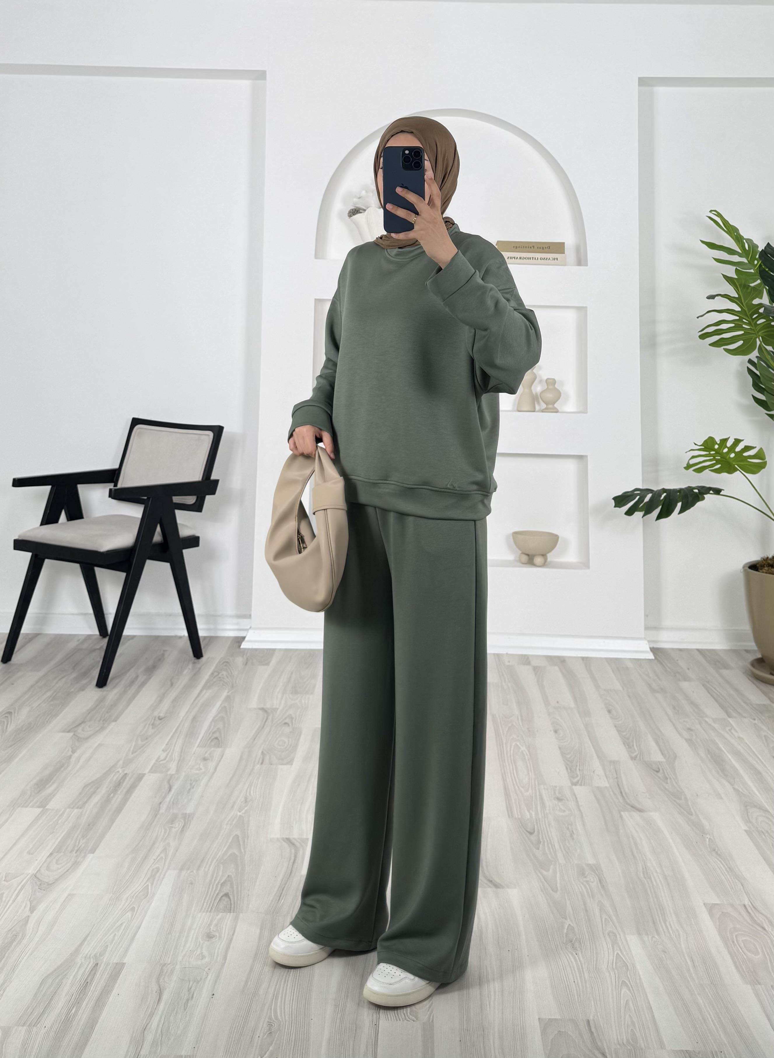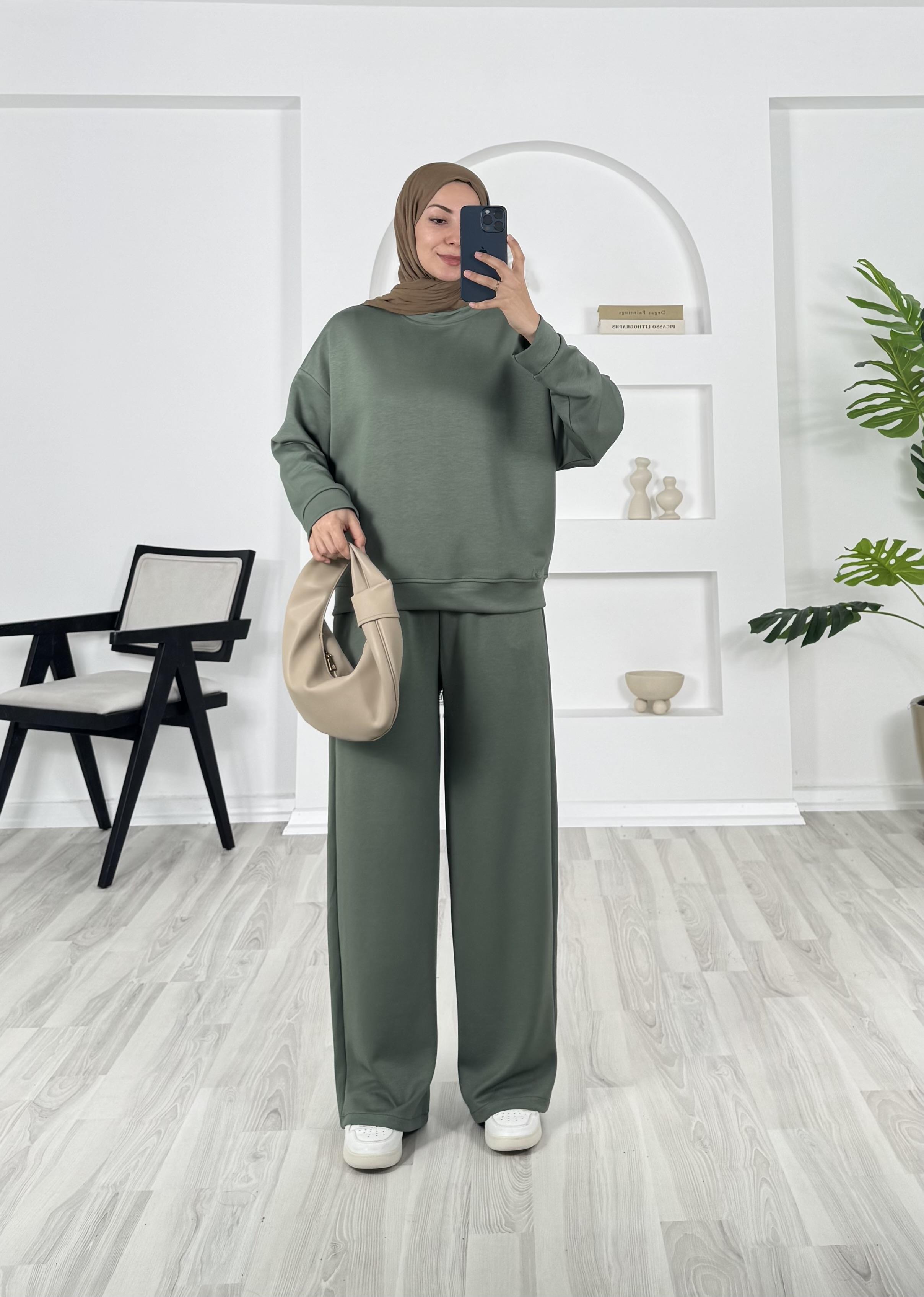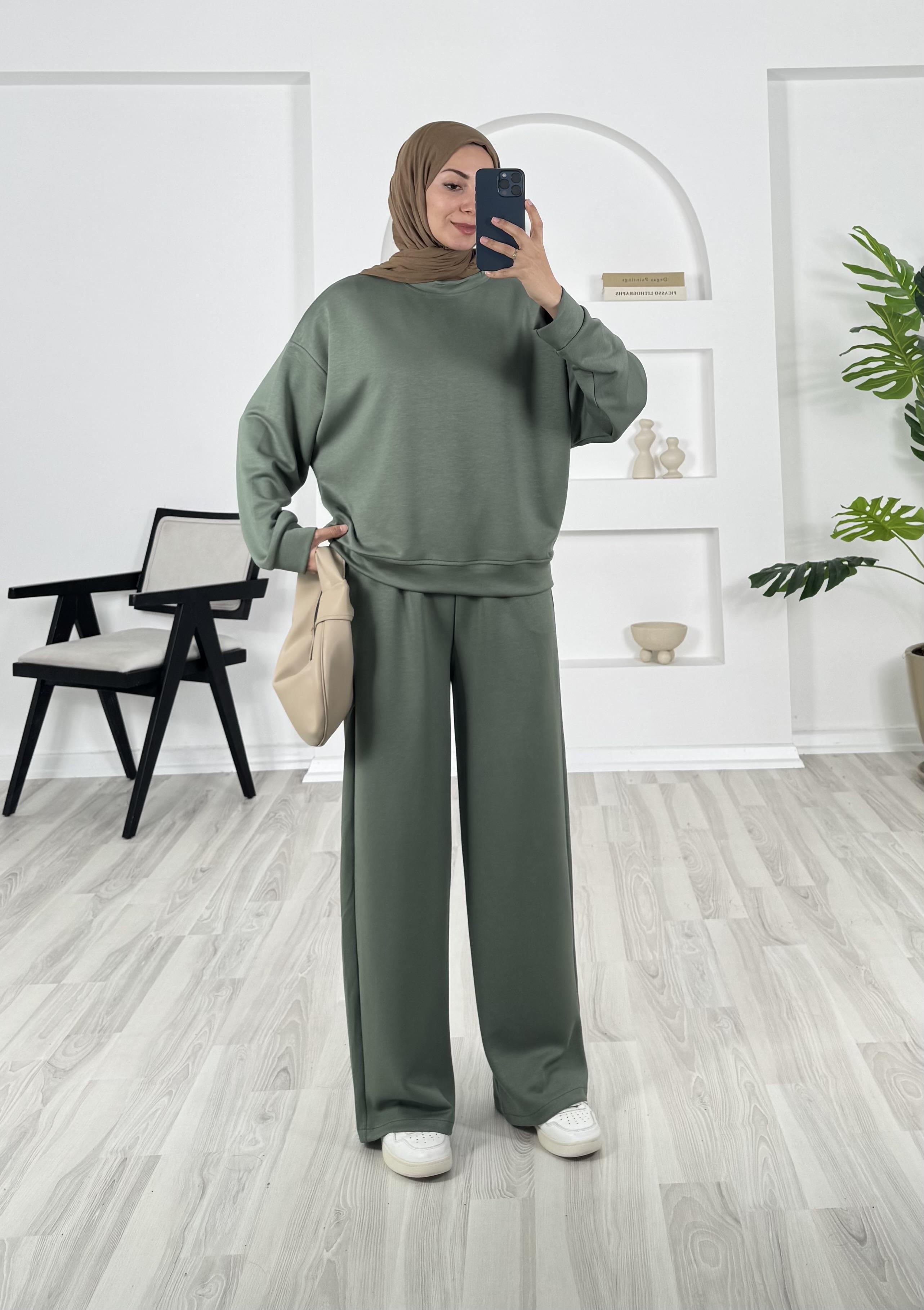 7312 - oysho kumaş bol paça pantolon krop takım - yeşil (7312)