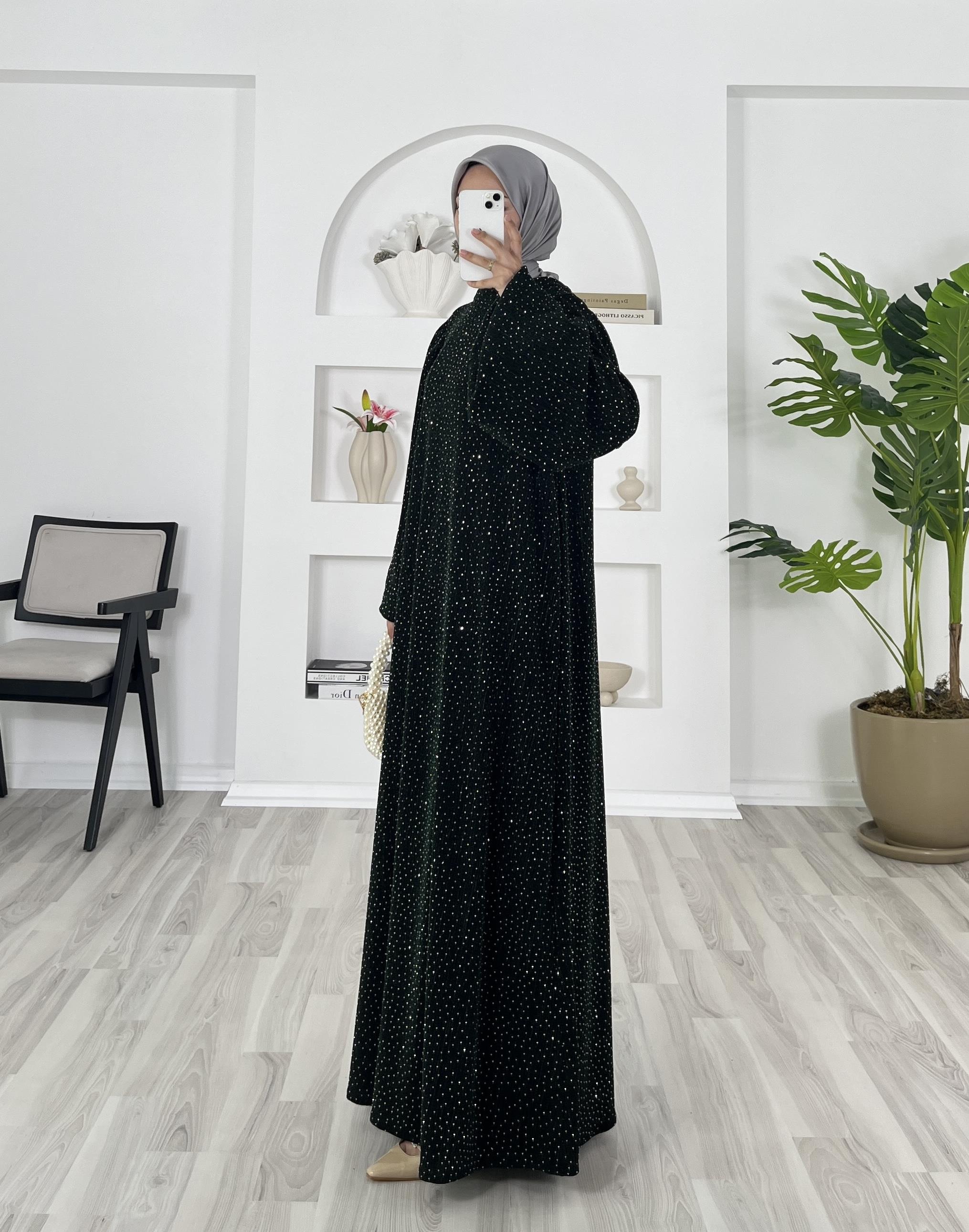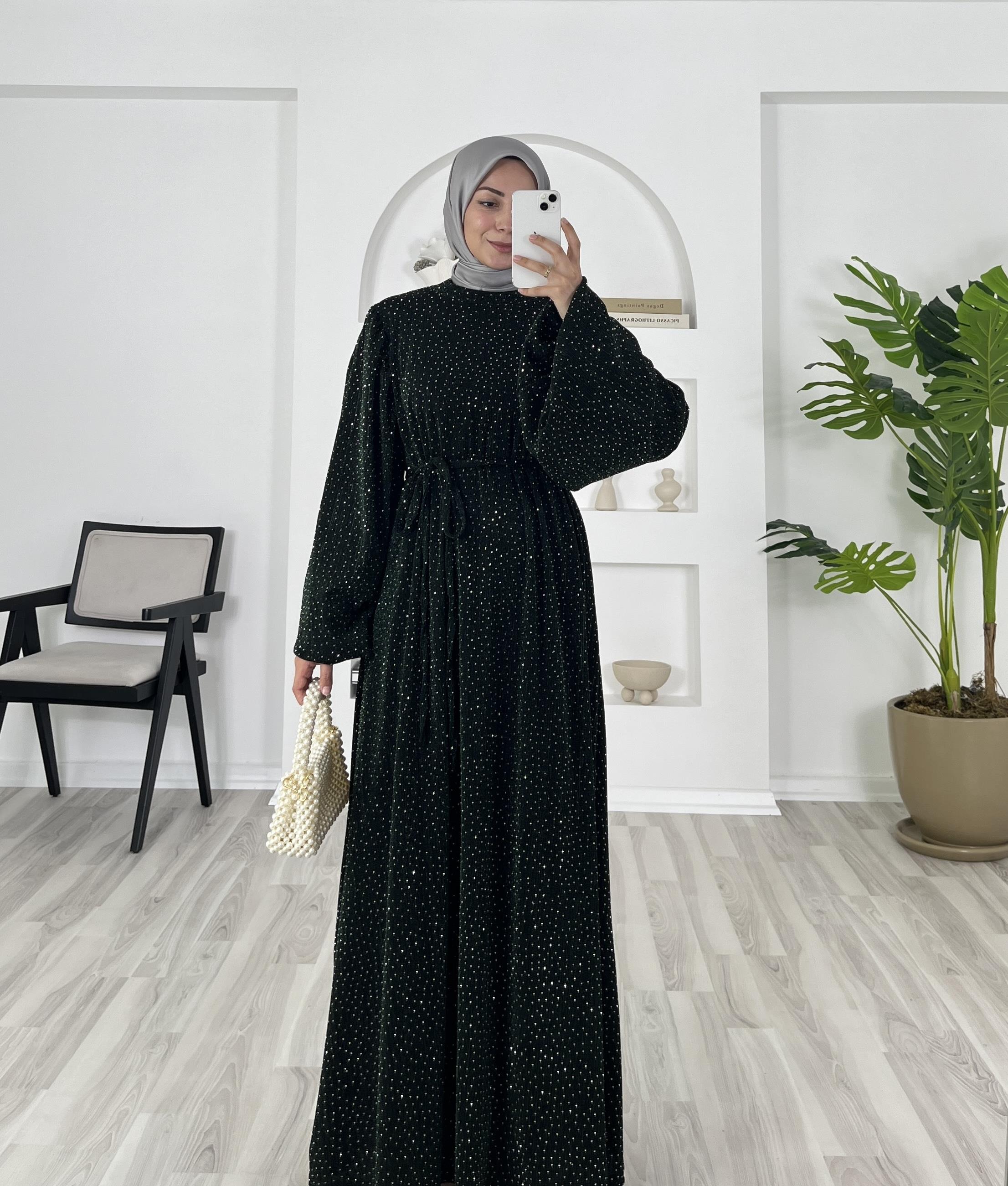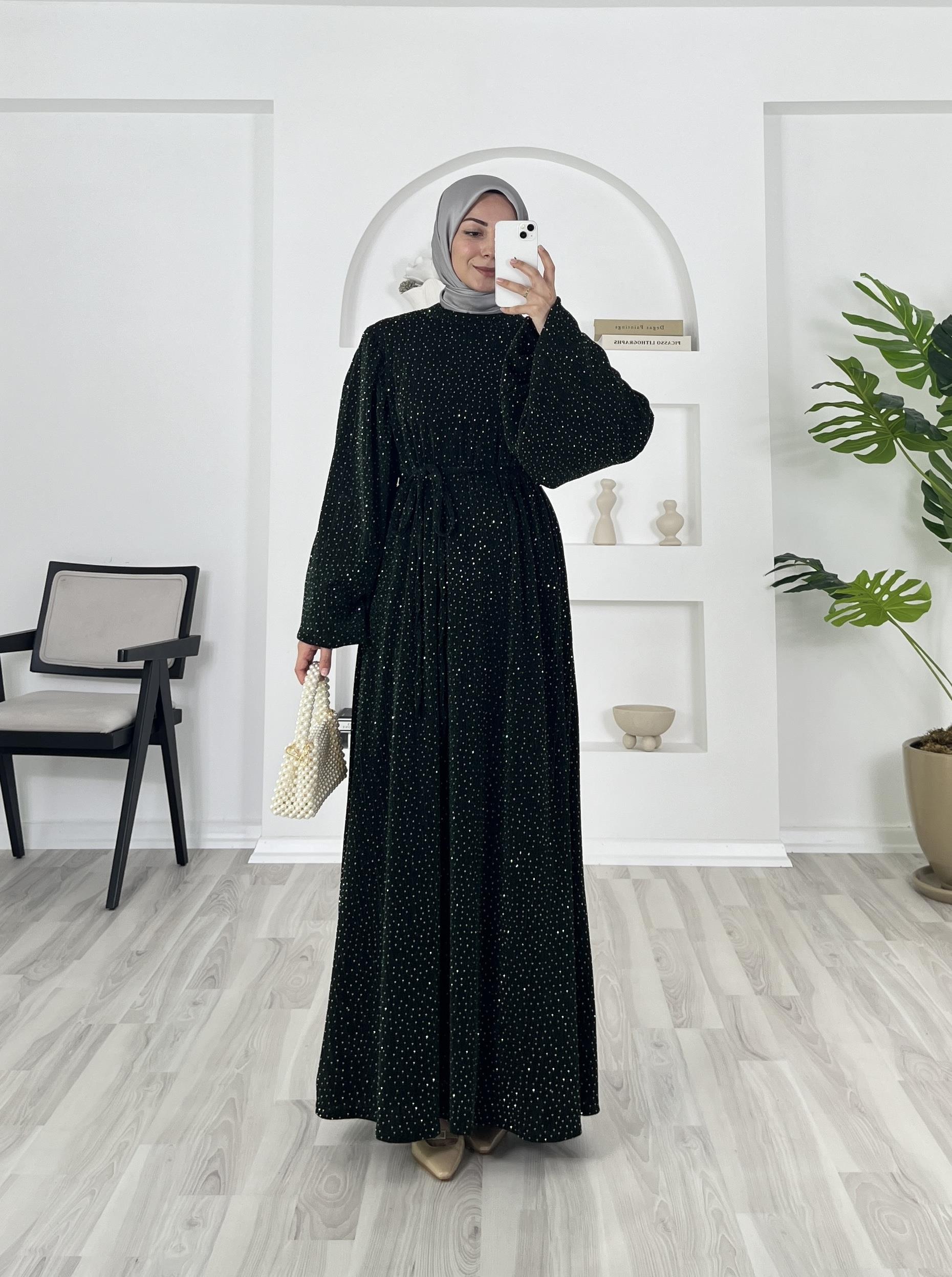 balon kol hakim yaka kuşaklı elbise