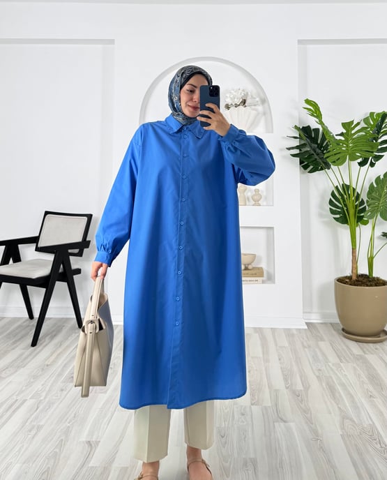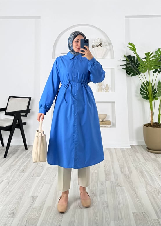 7514-terikoton kumaş-kemerli tunik-mavi (7514)