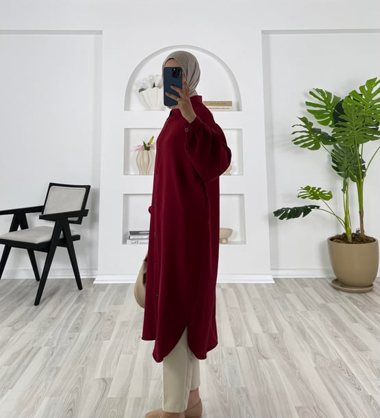 7529-dabıl krep kumaş-kemerli tunik-bordo (7529)