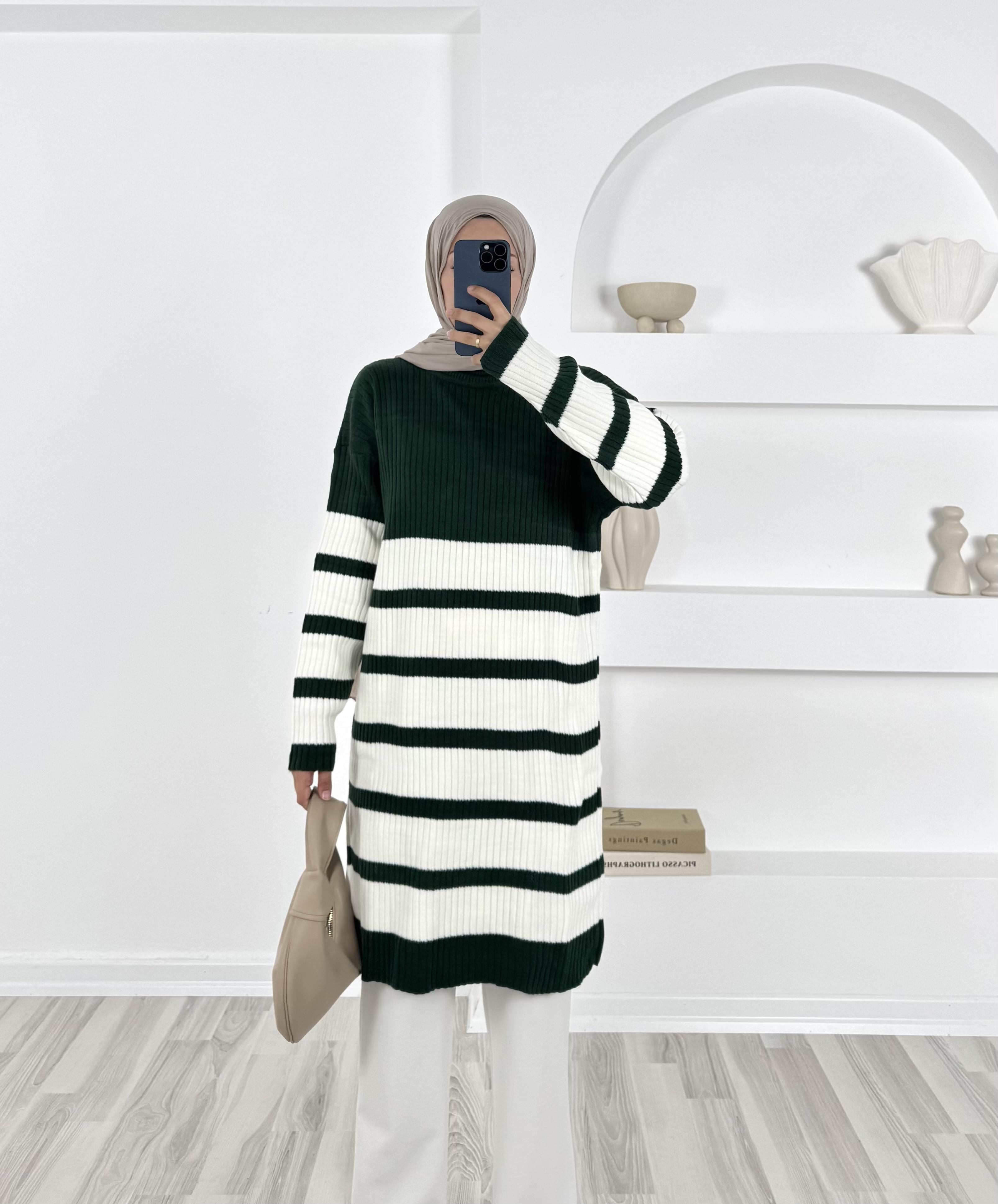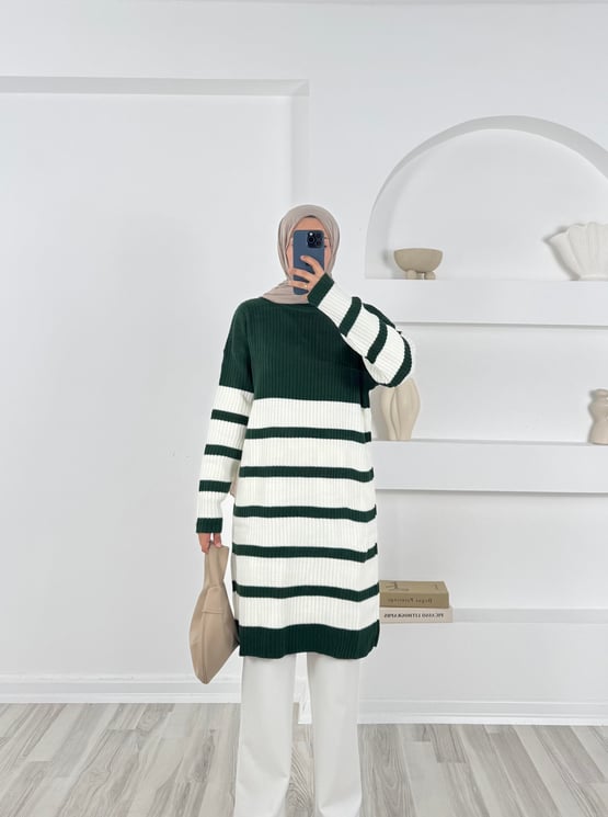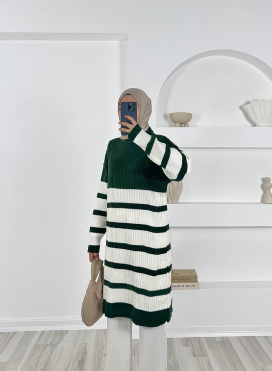 7648- balıkçı yaka çizgili triko tunik-yeşil (7648)