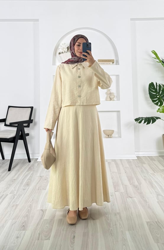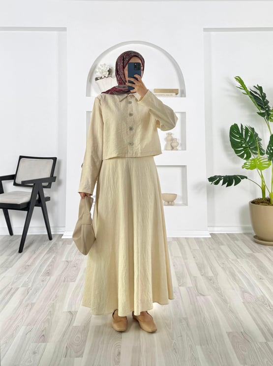 kolu düğme detaylı etekli takım