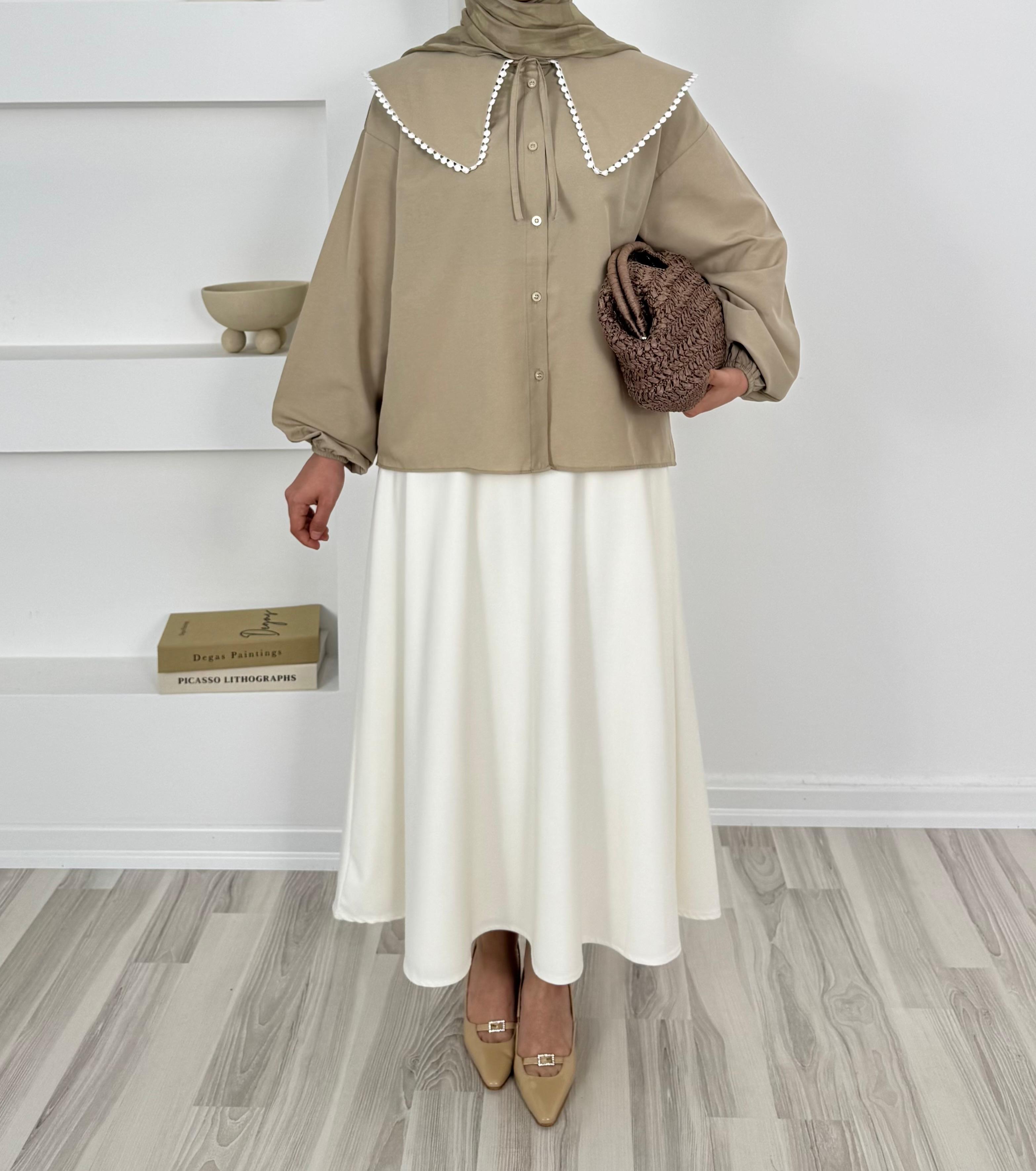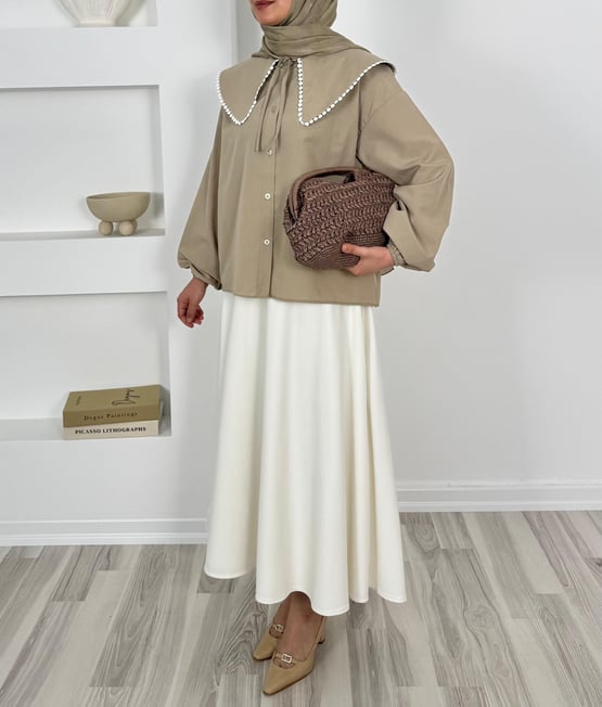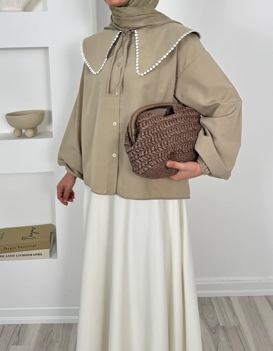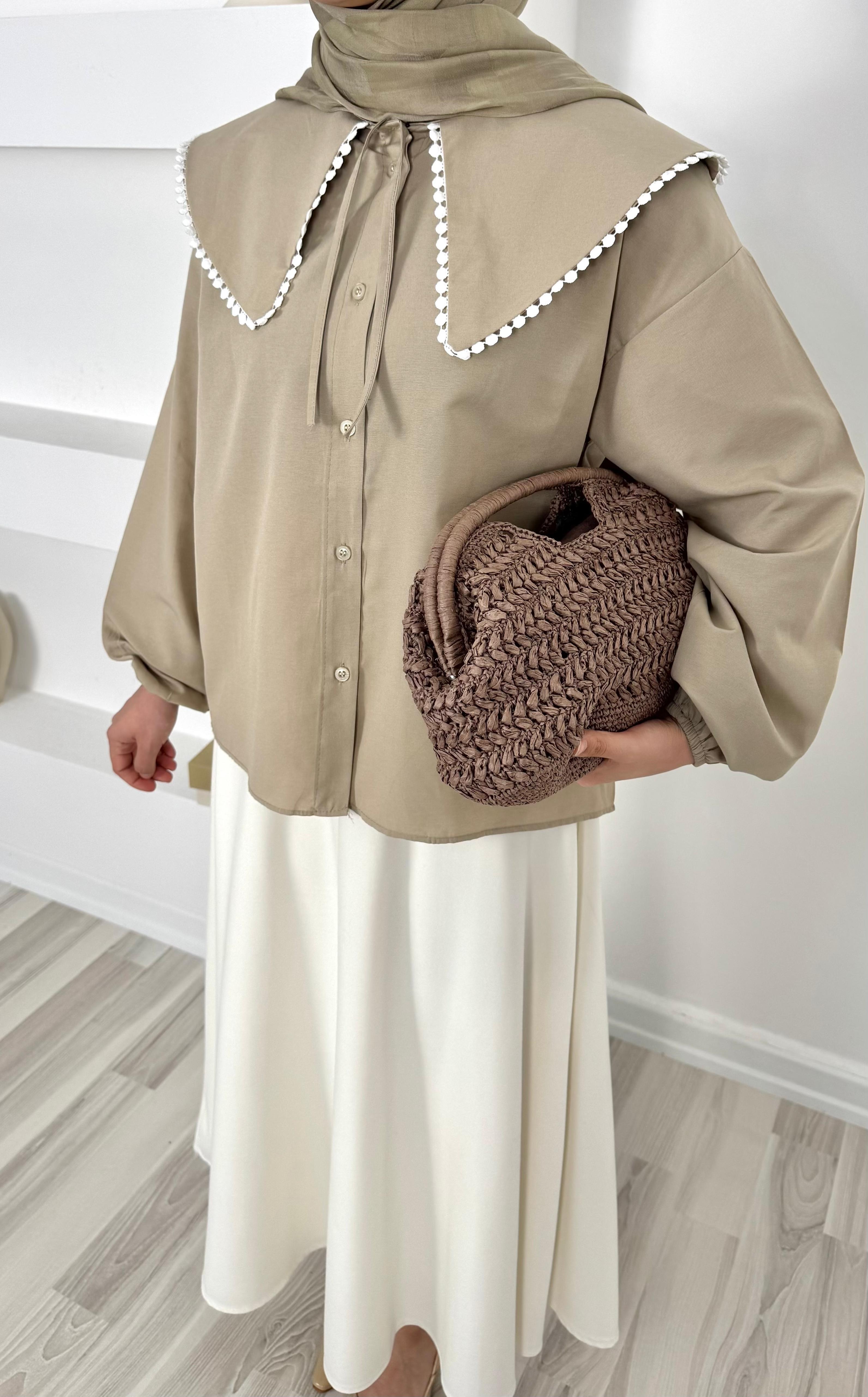 7930- terikoton kumaş yakalı gömlek-taş (7930)