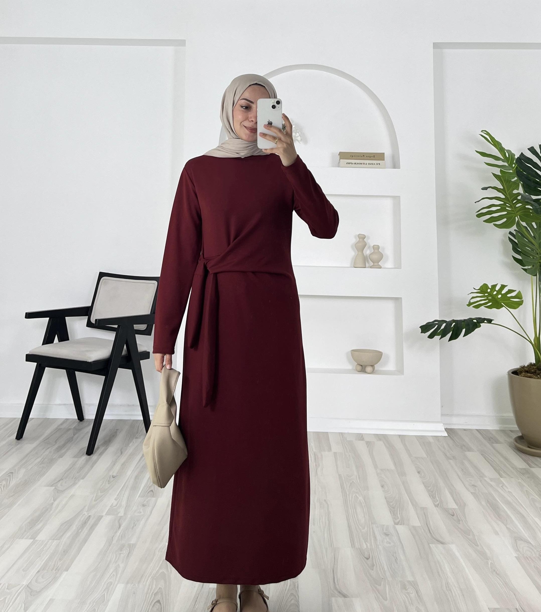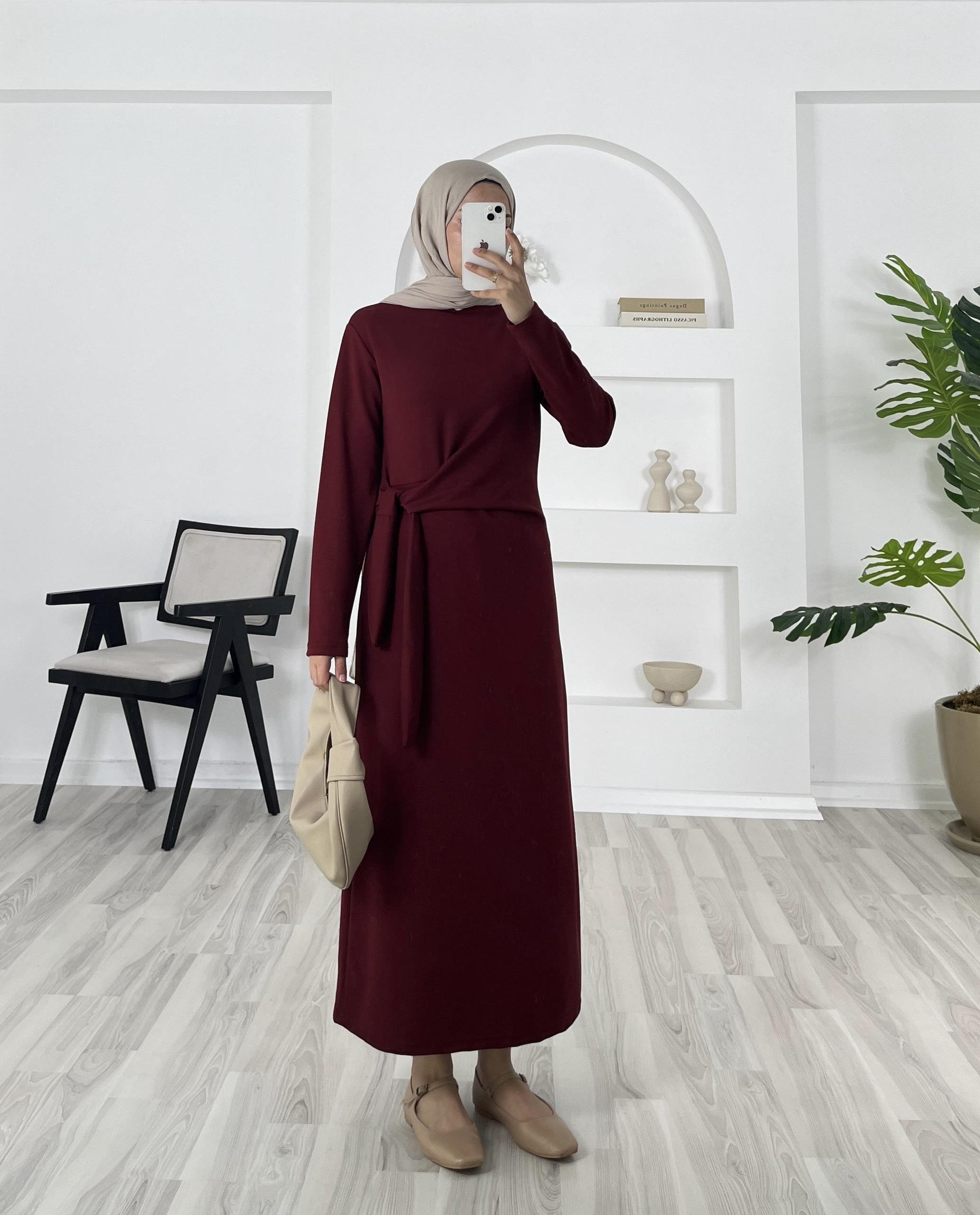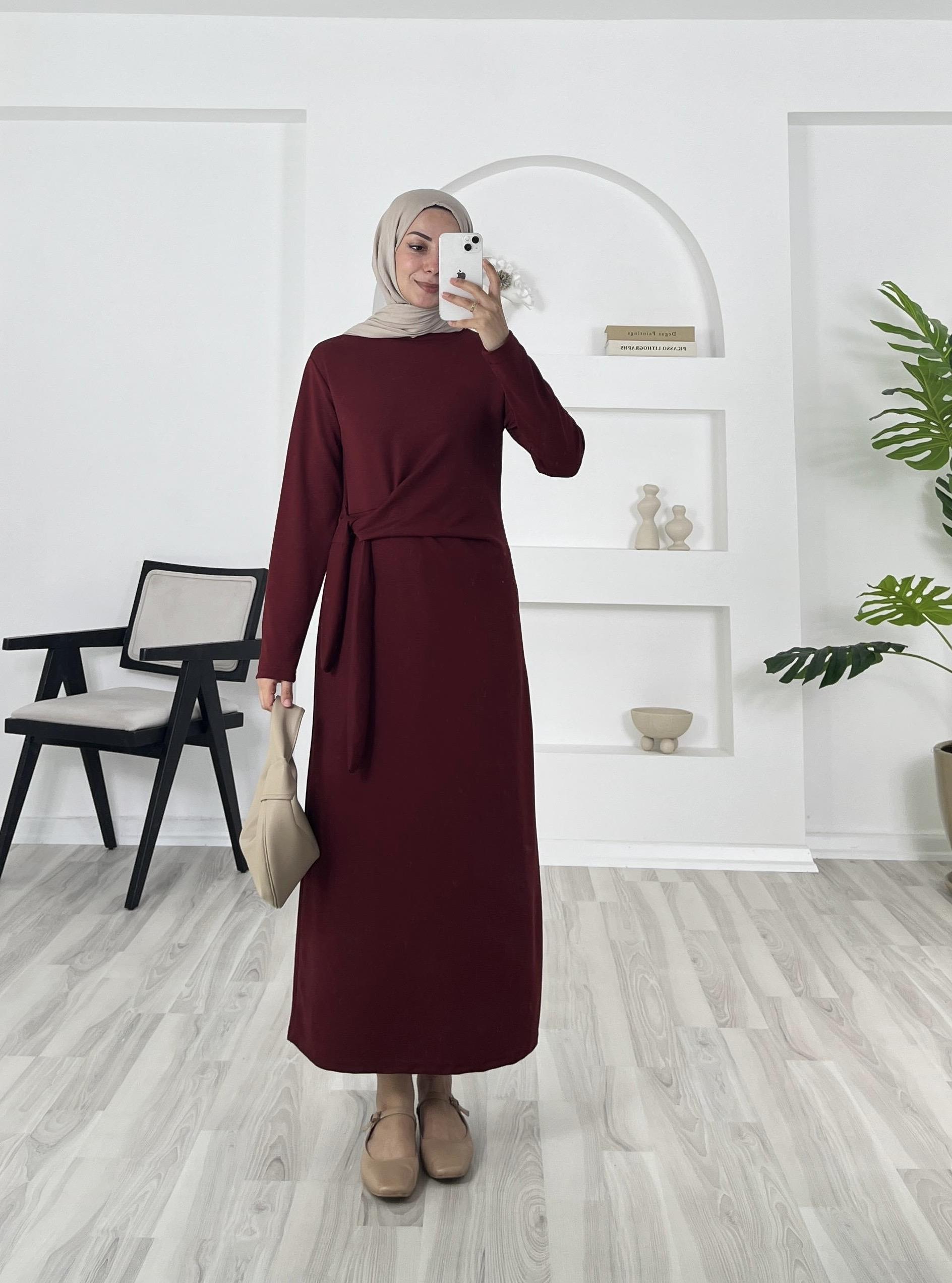 79315 - oysho kumaş önden baglamalı elbise - bordo (79315 )