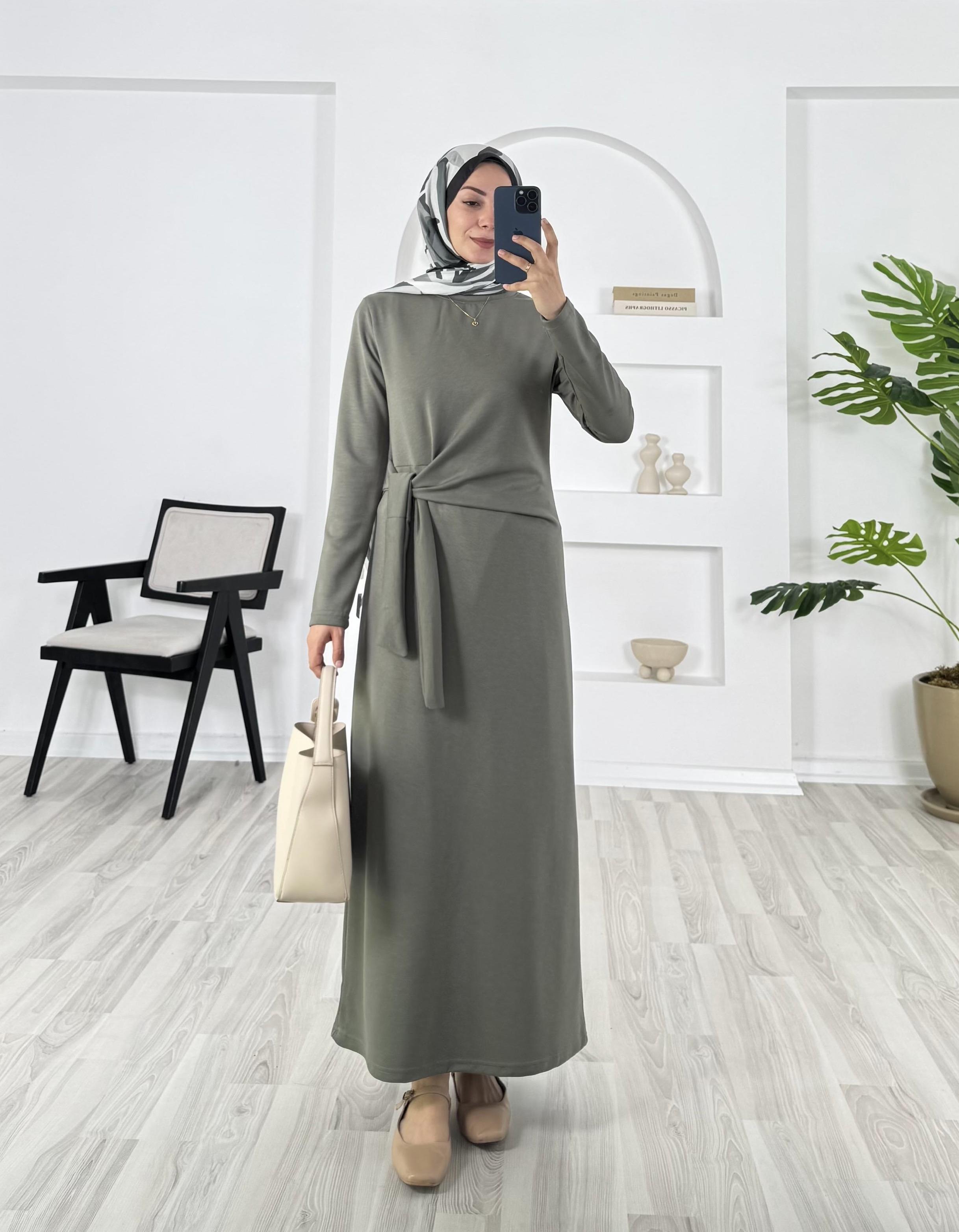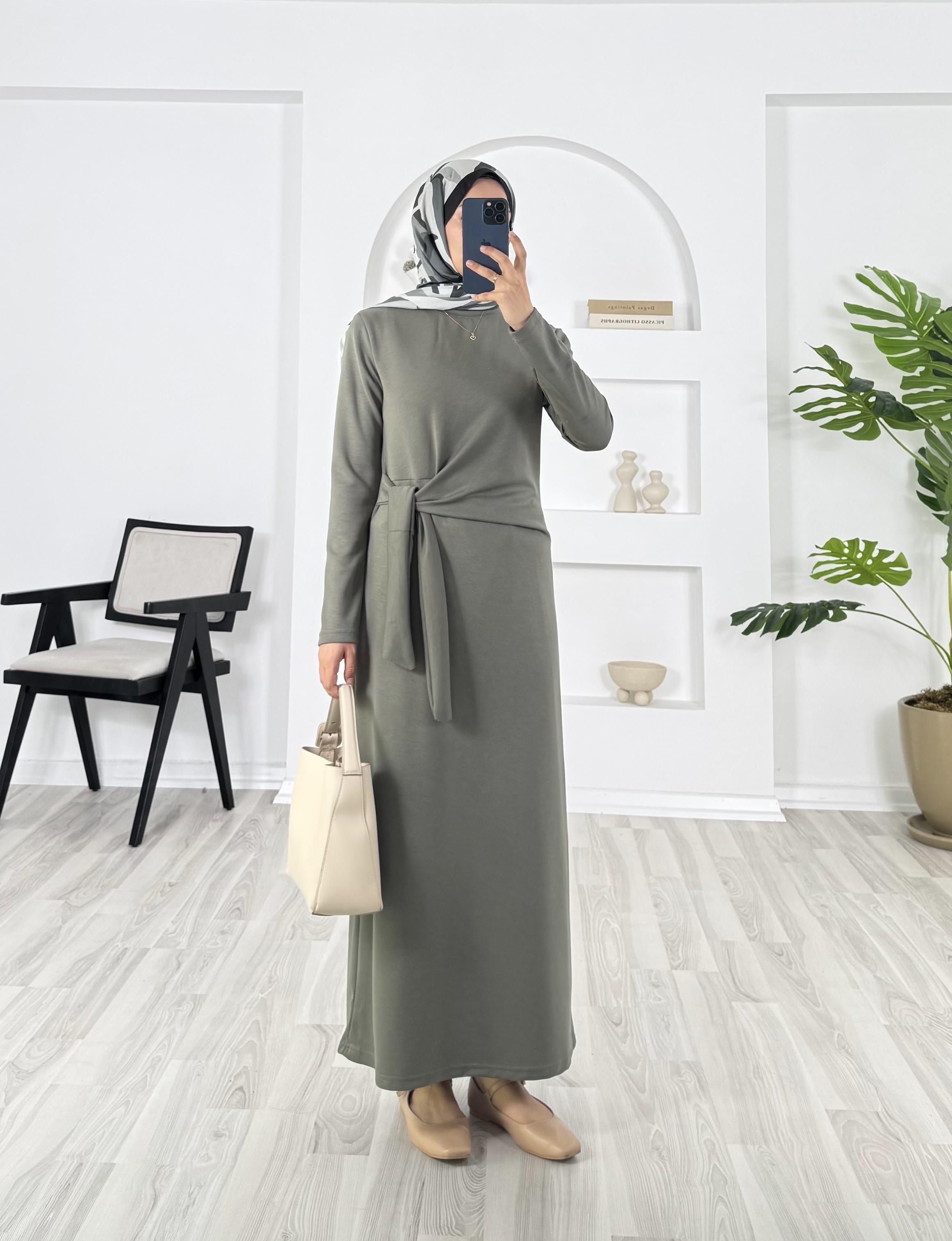 79315 - oysho kumaş önden baglamalı elbise - haki (79315 )