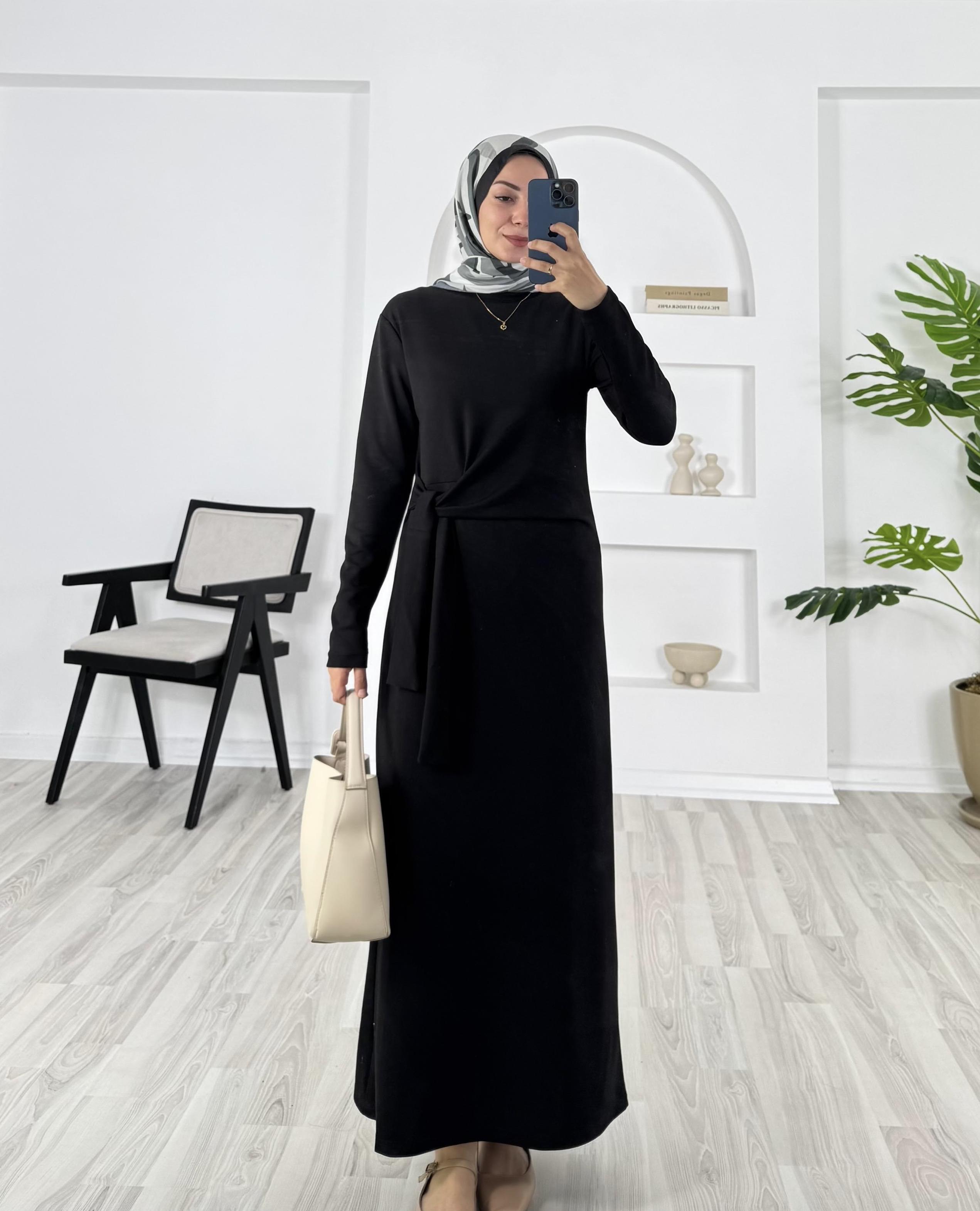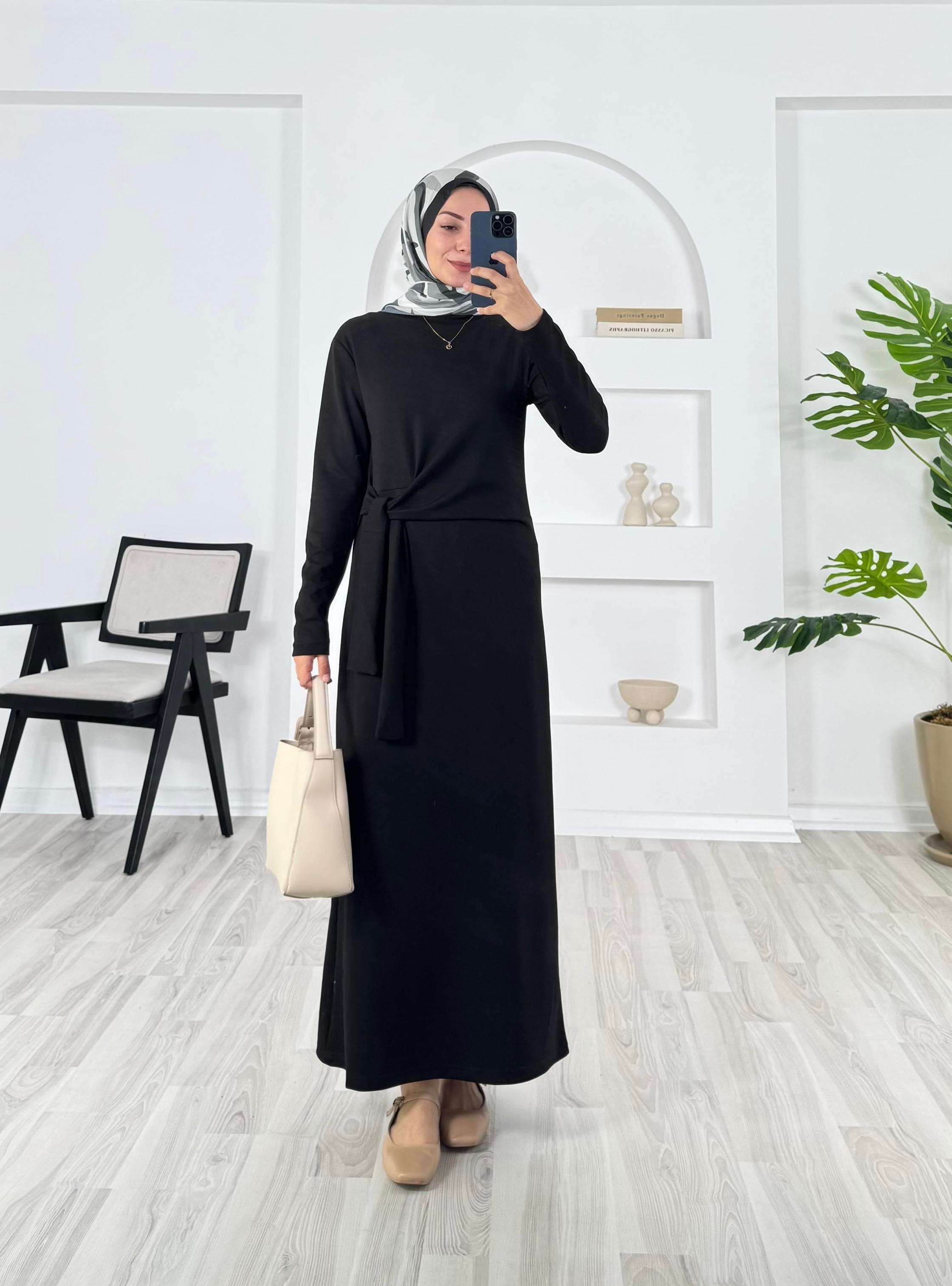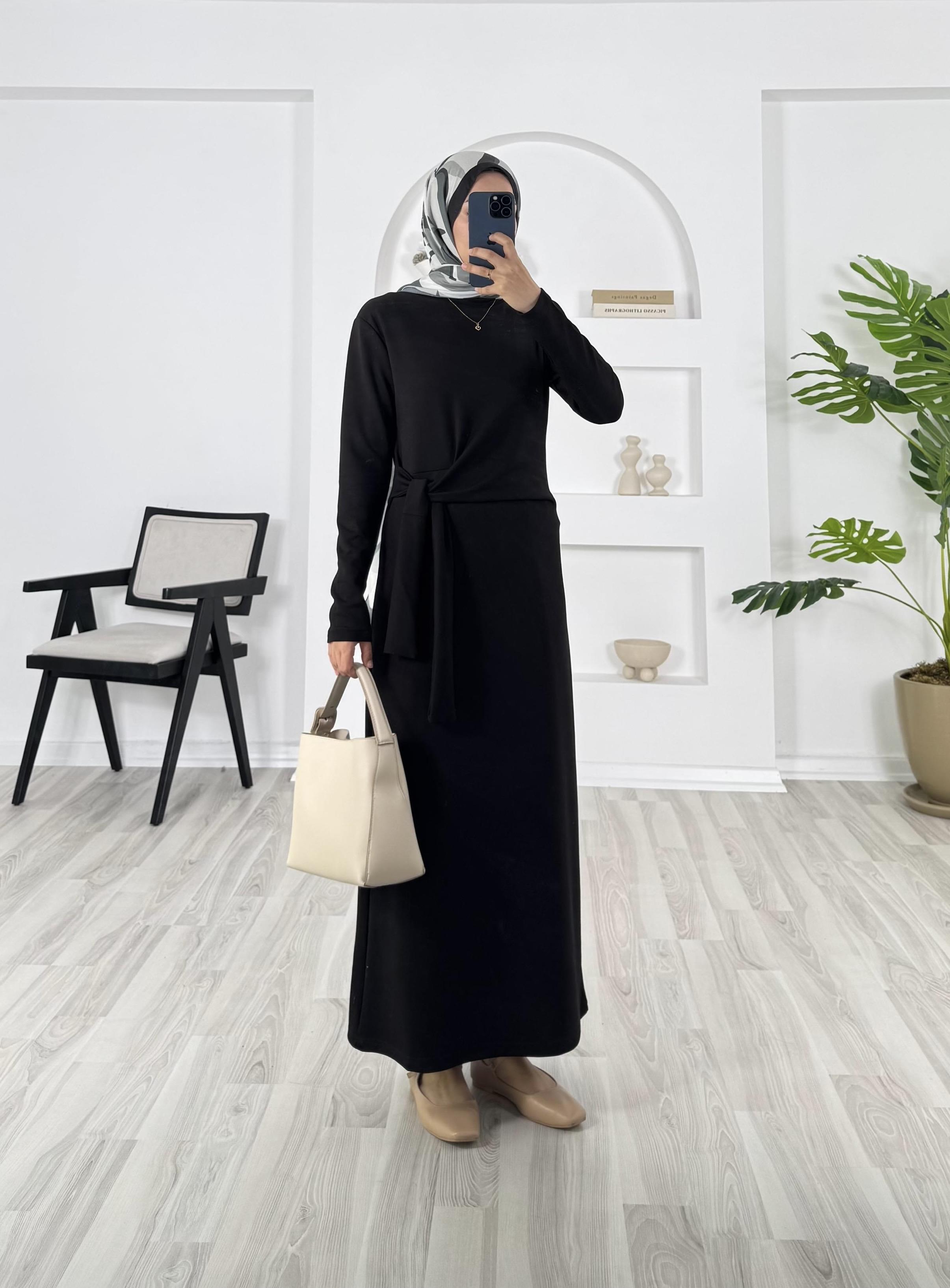 79315 - oysho kumaş önden baglamalı elbise - siyah (79315 )