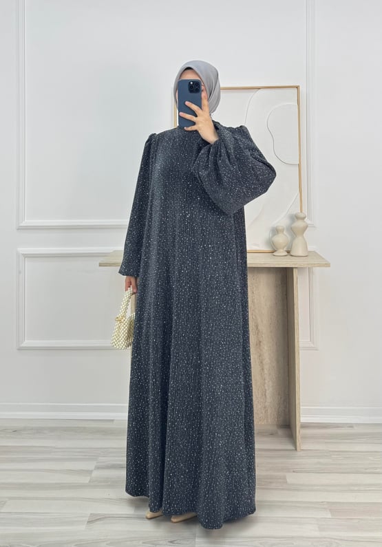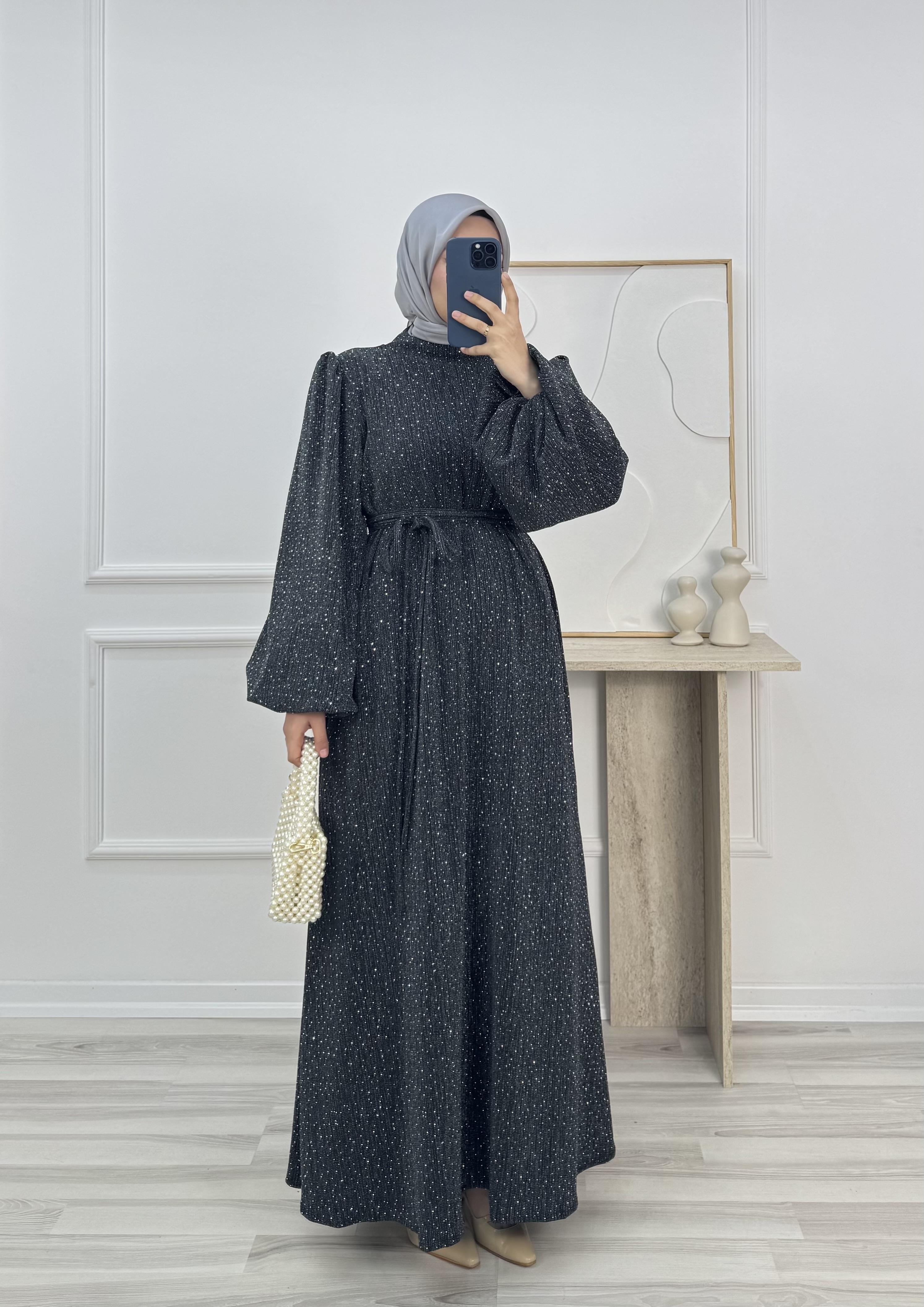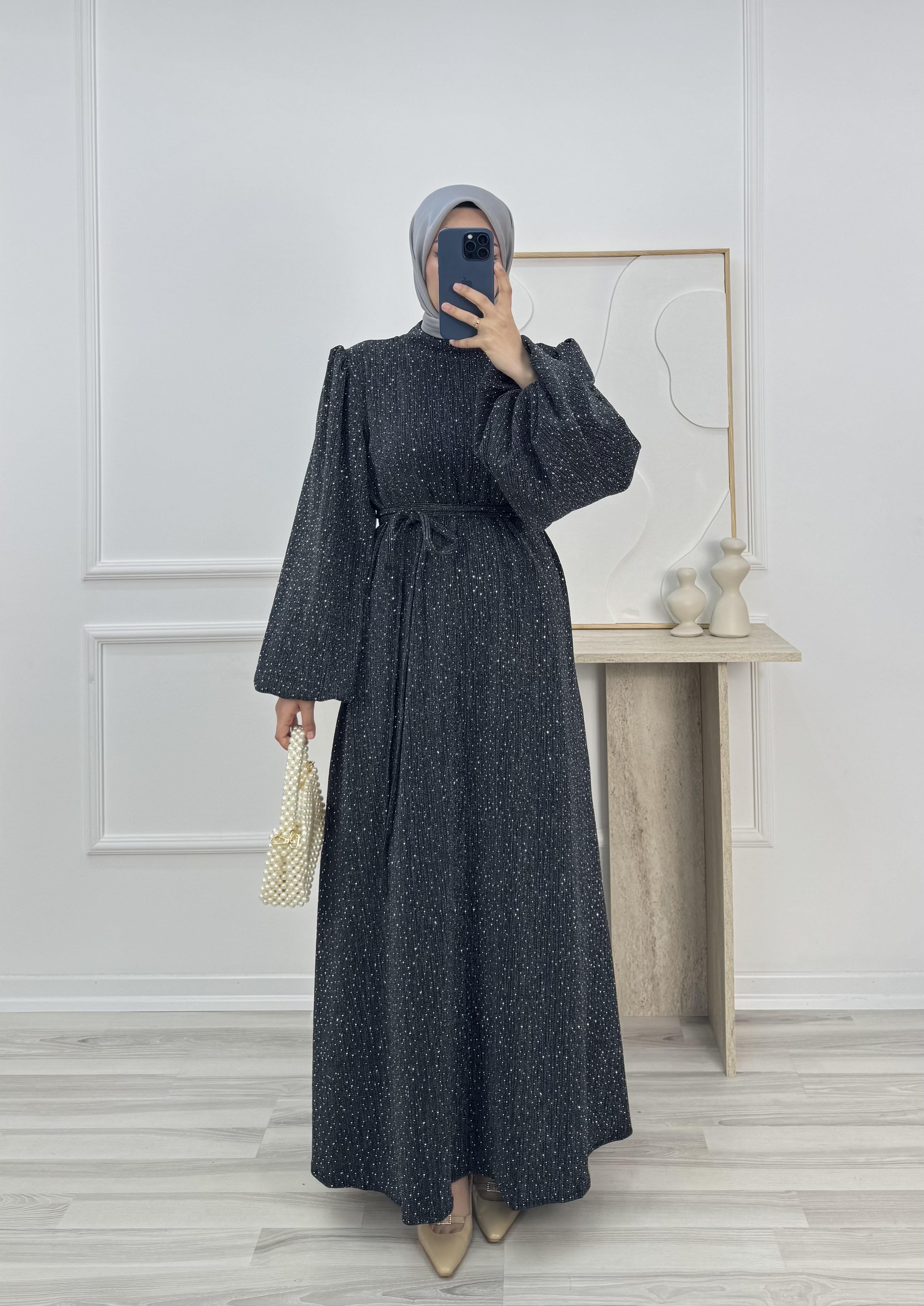 balon kol hakim yaka kuşaklı taşlı elbise
