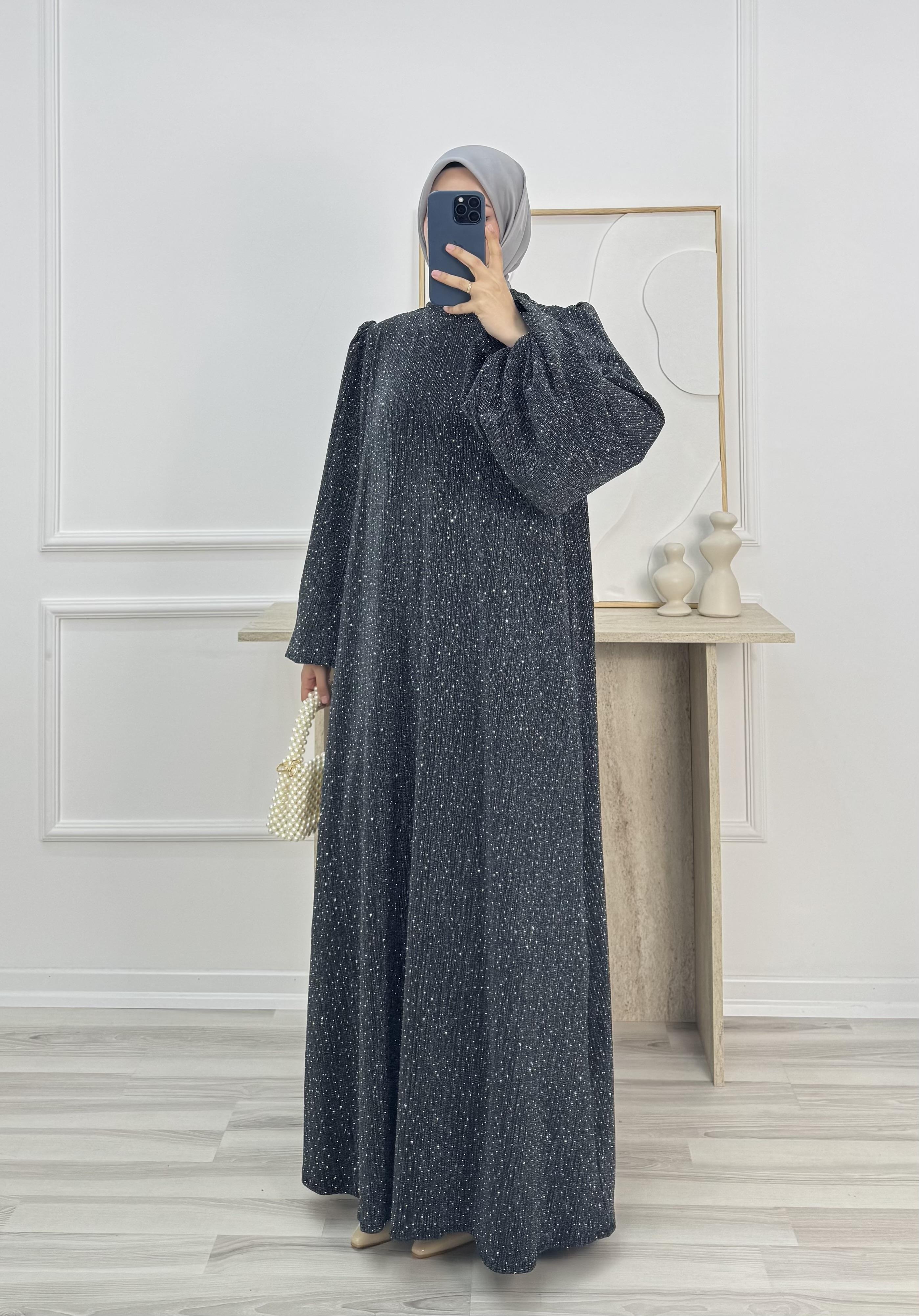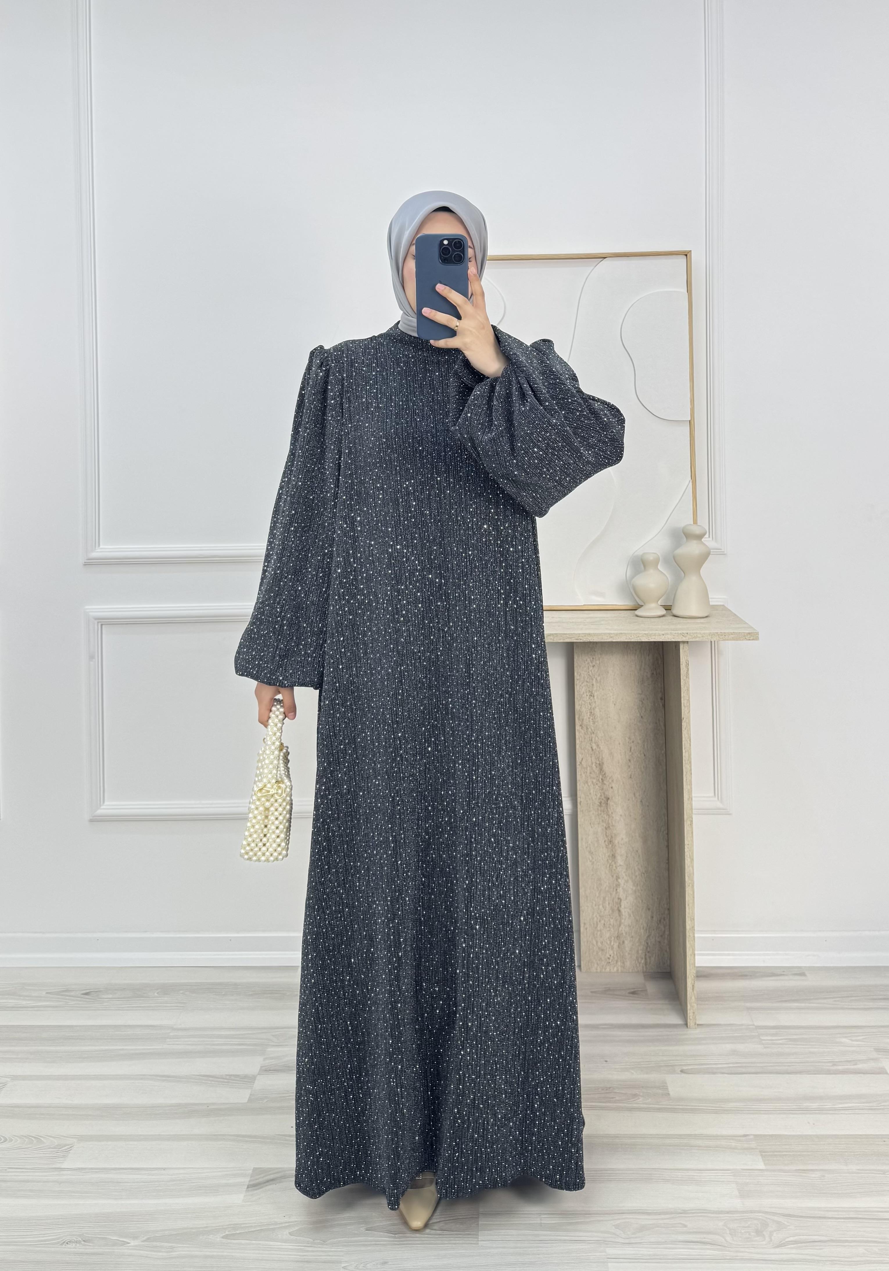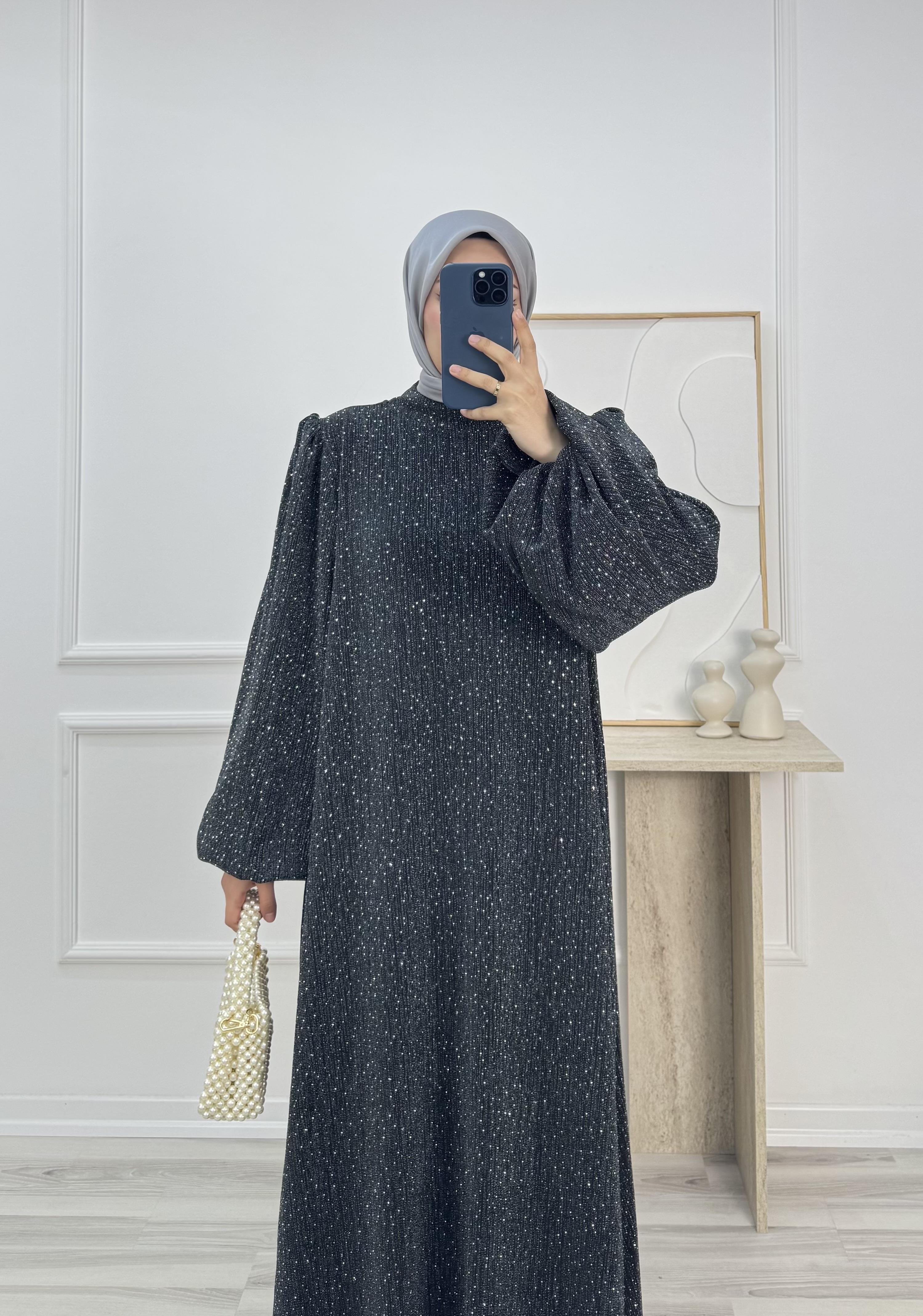balon kol hakim yaka kuşaklı taşlı elbise