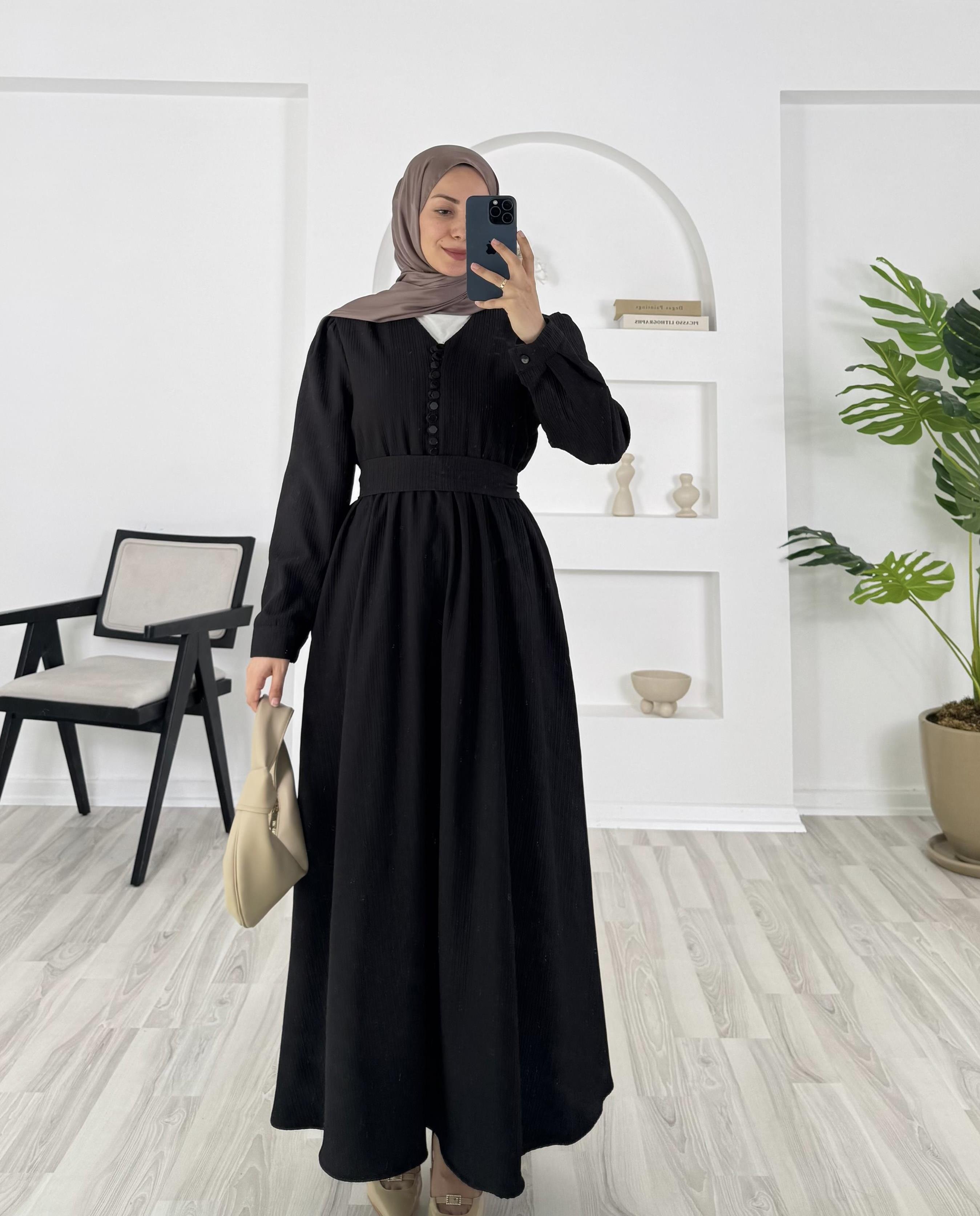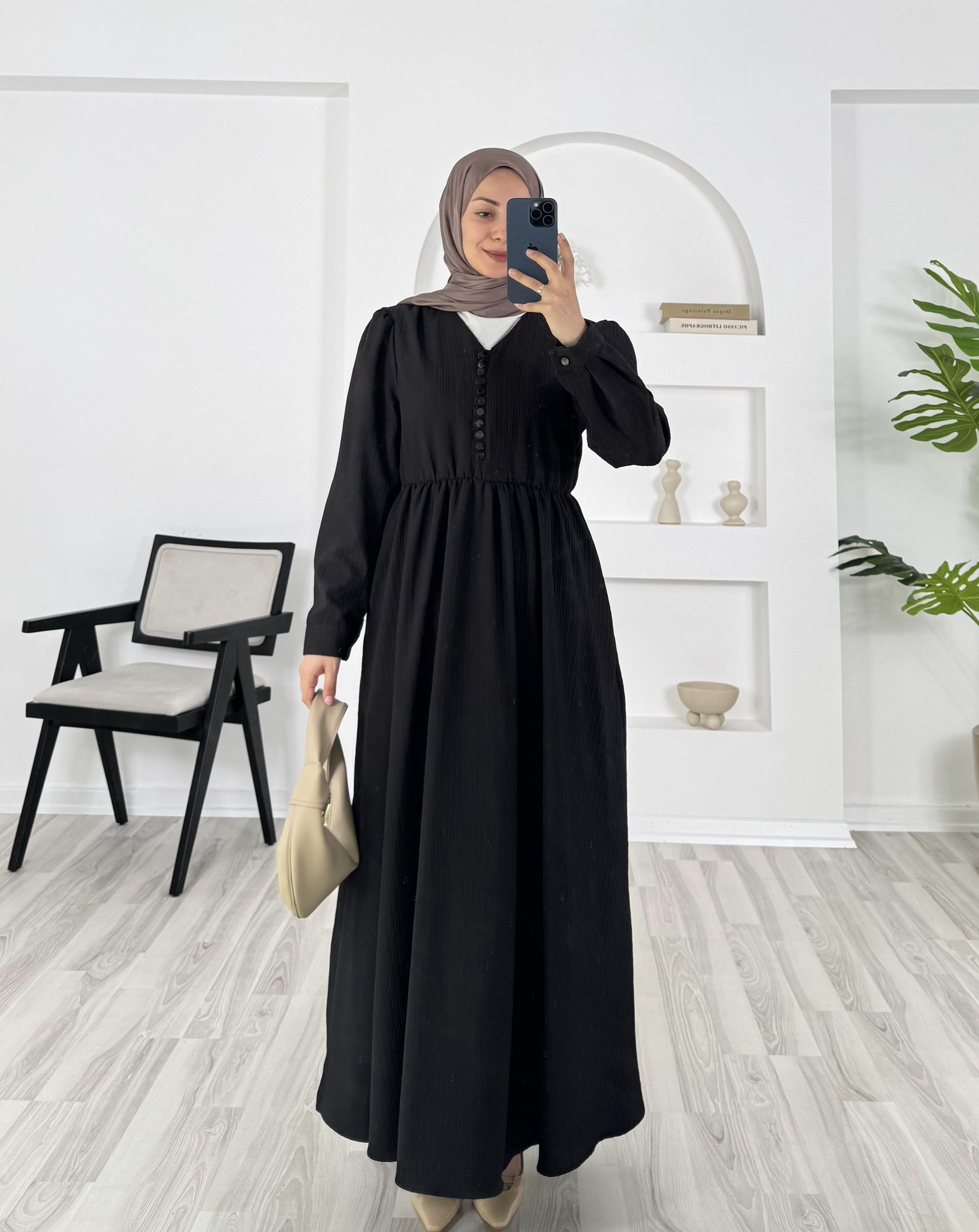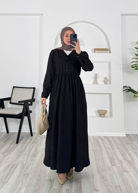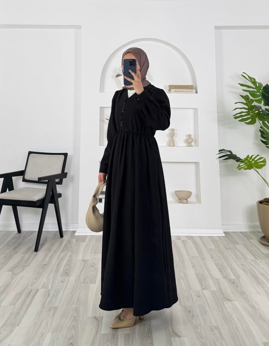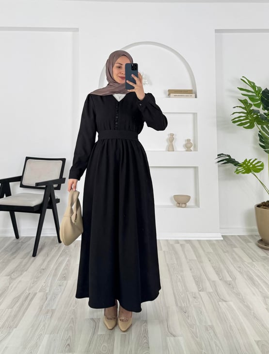 8095 -fitilli helena kumaş önü top dügmeli elbise - siyah (8095)