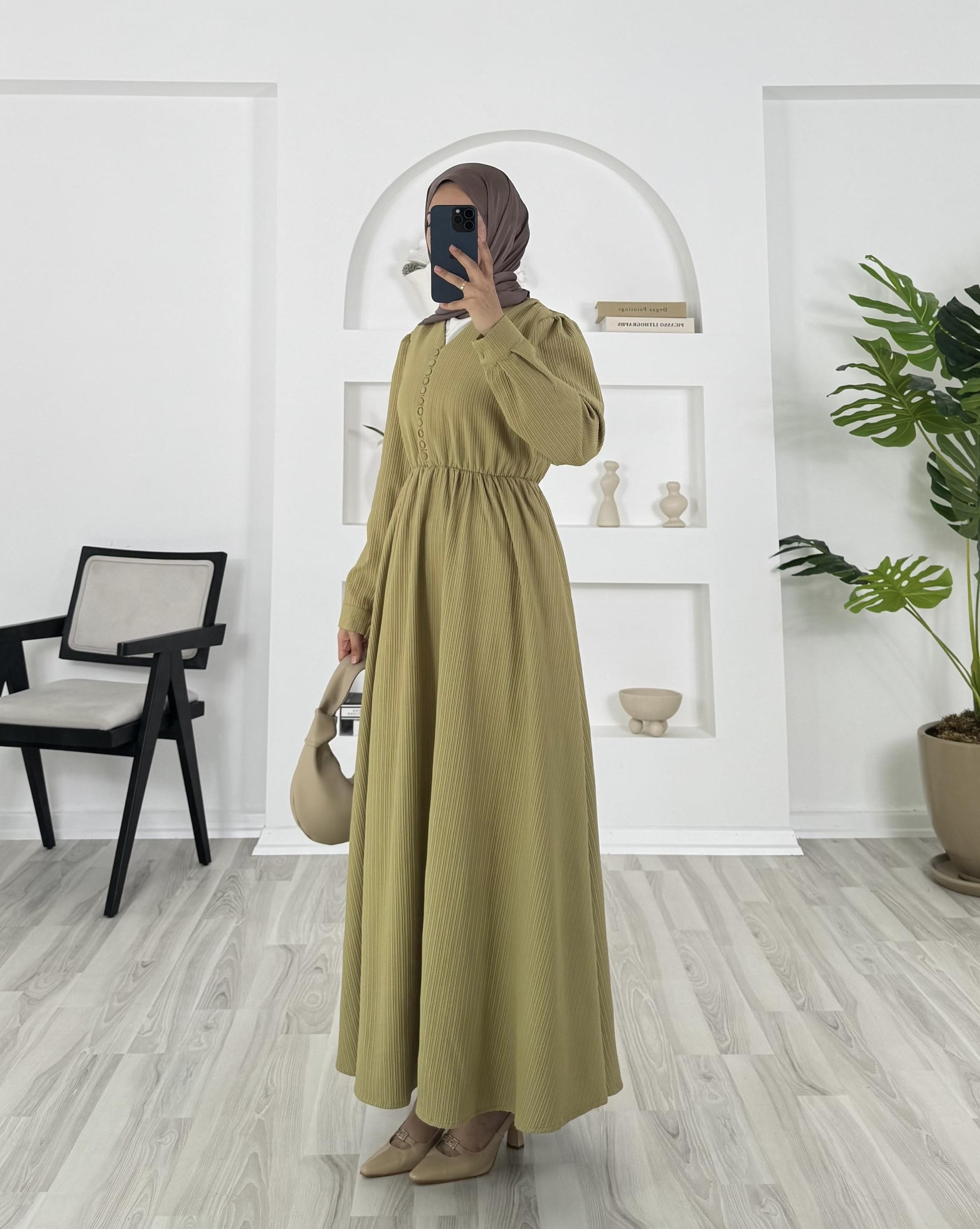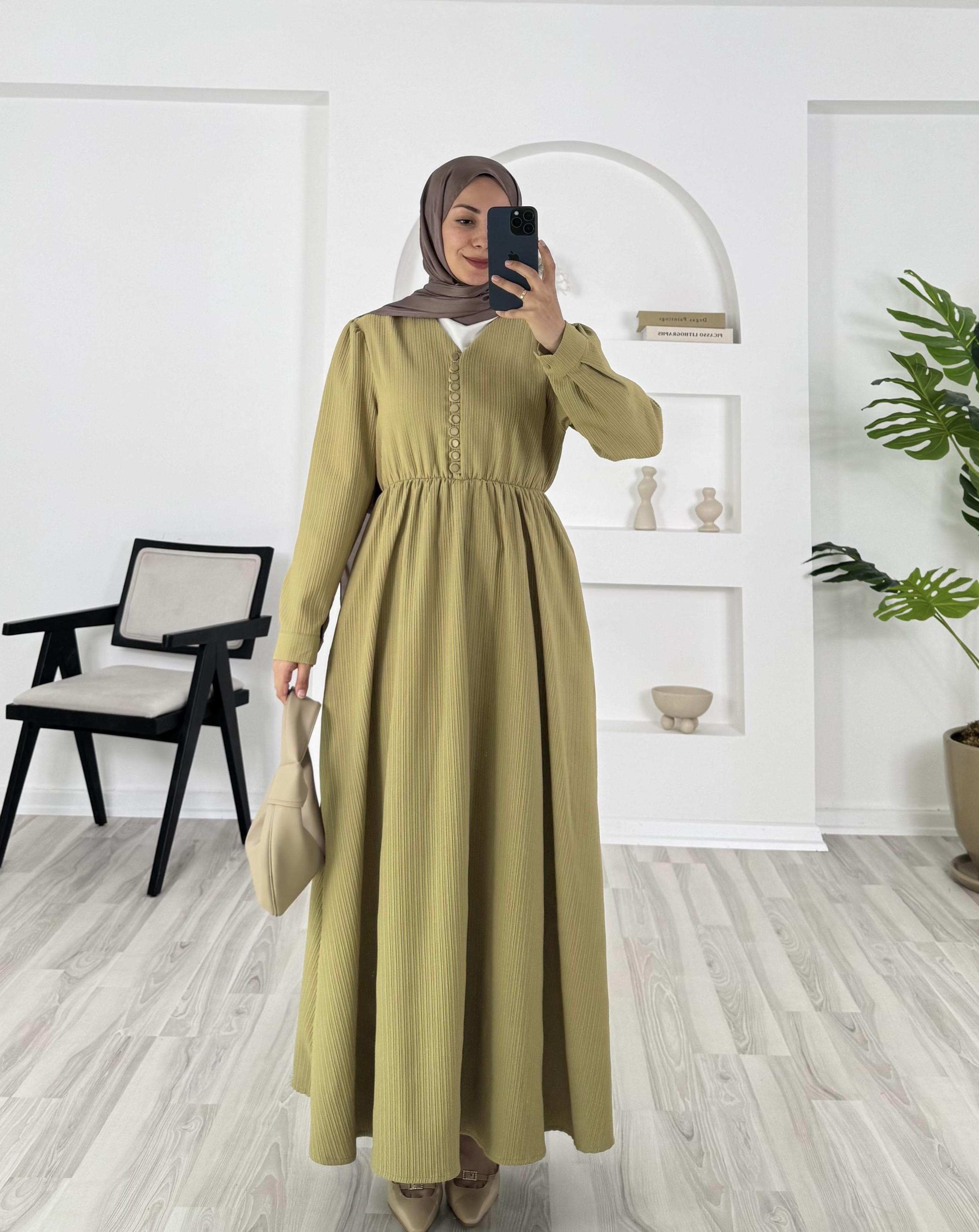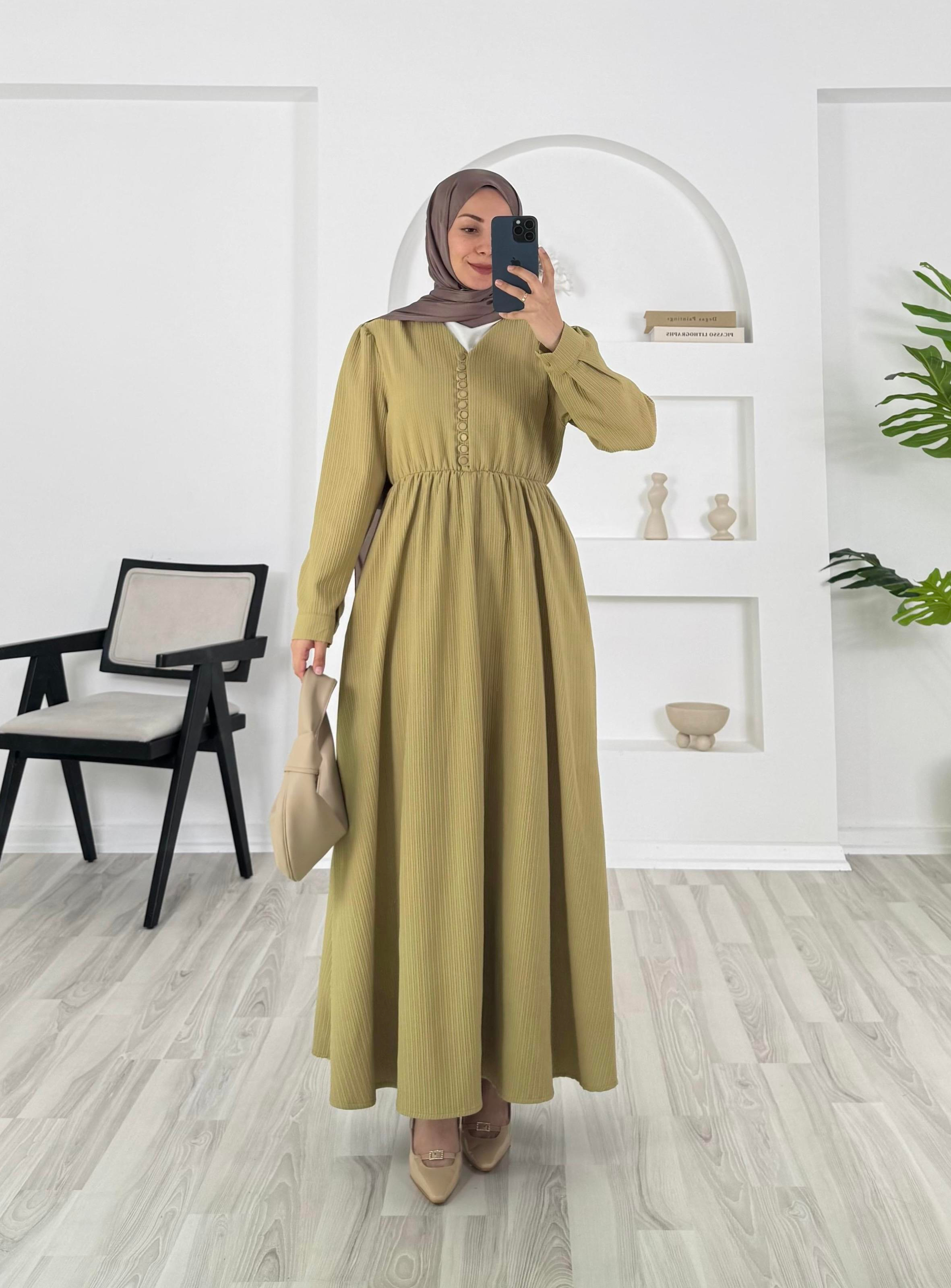 8095 -fitilli helena kumaş önü top dügmeli elbise - yag yeşili (8095)