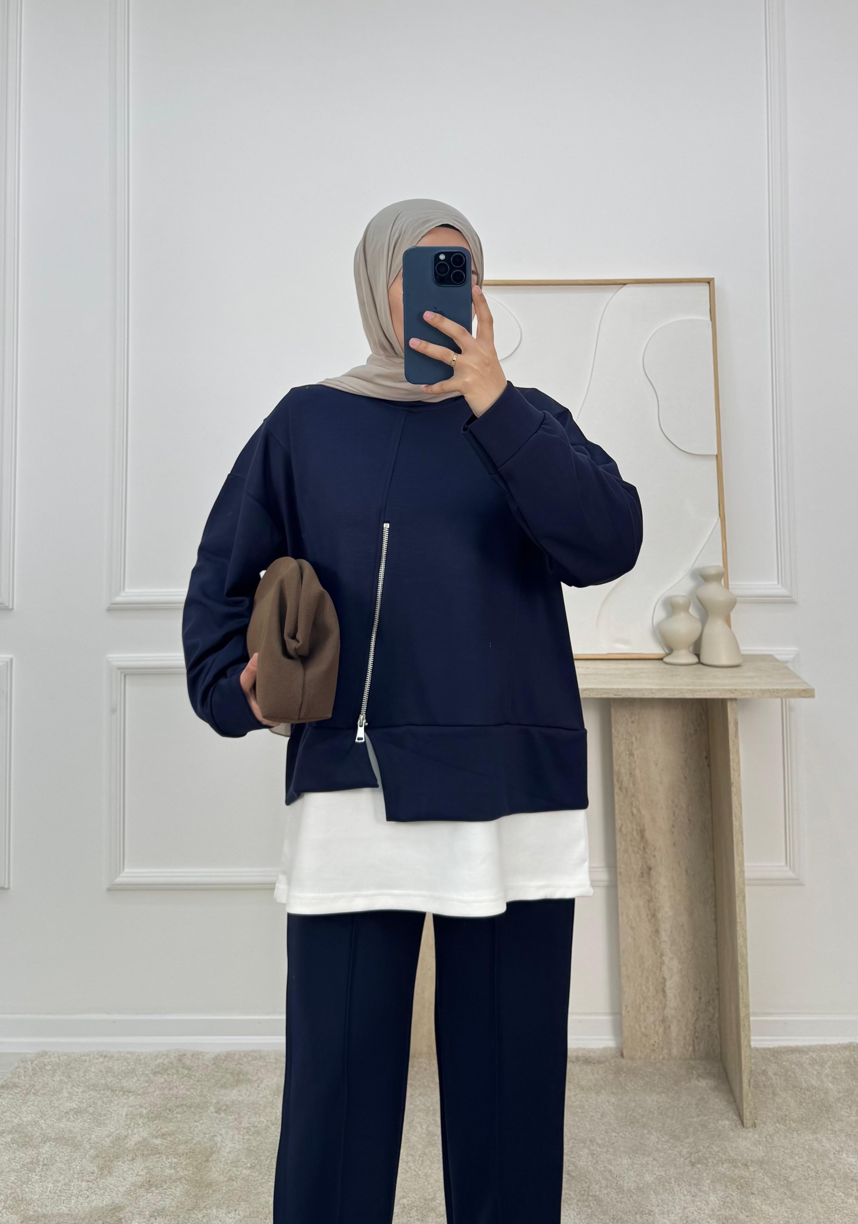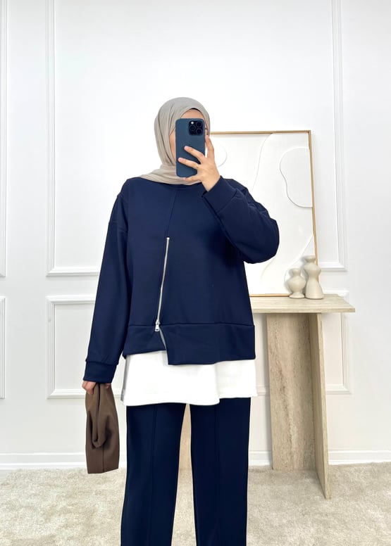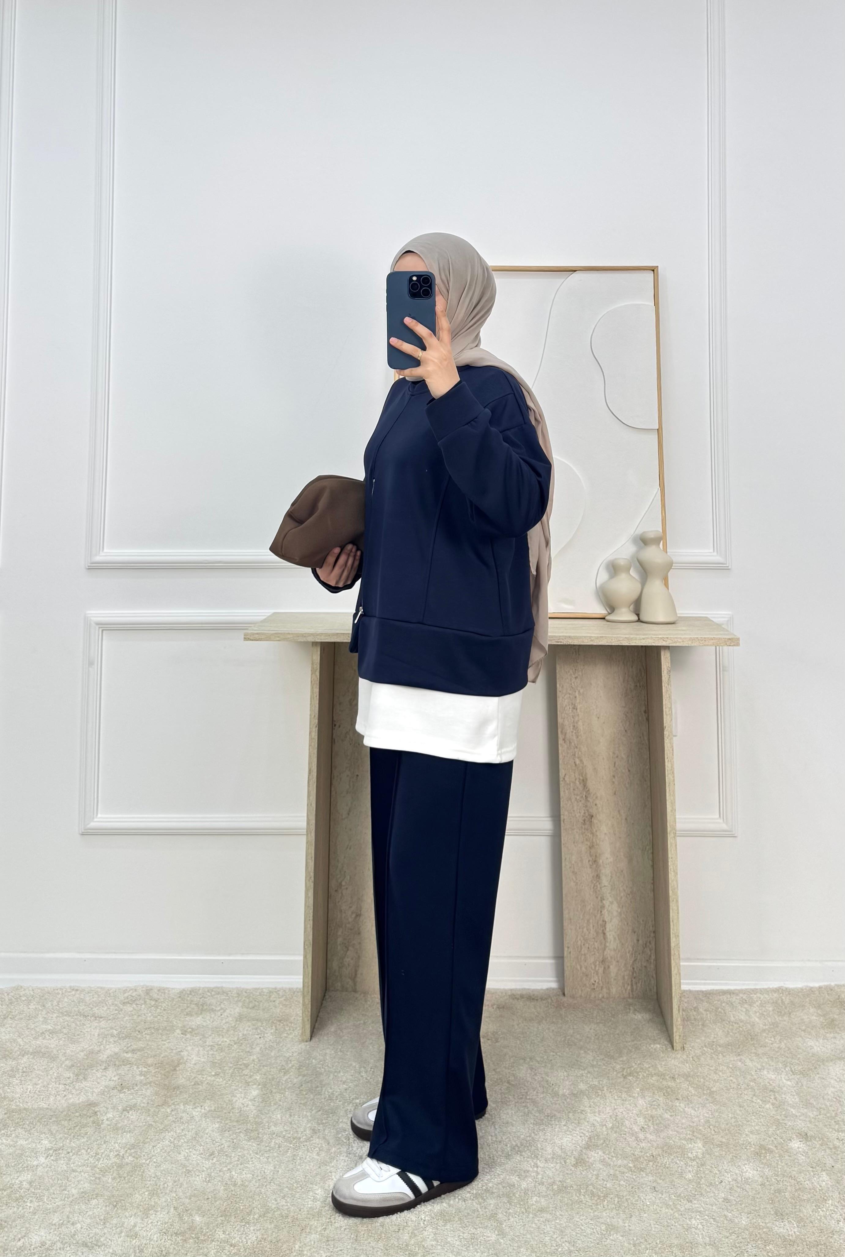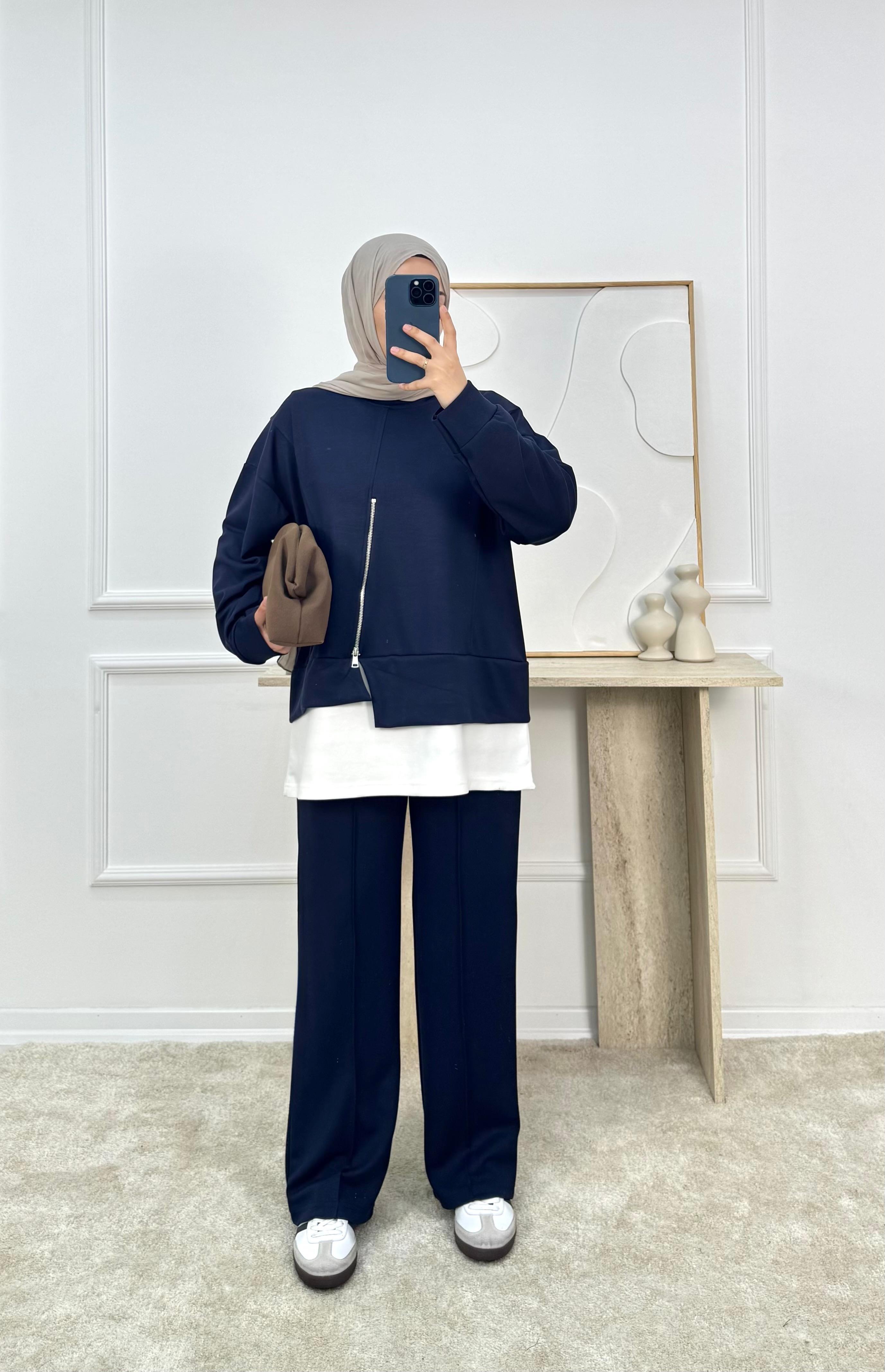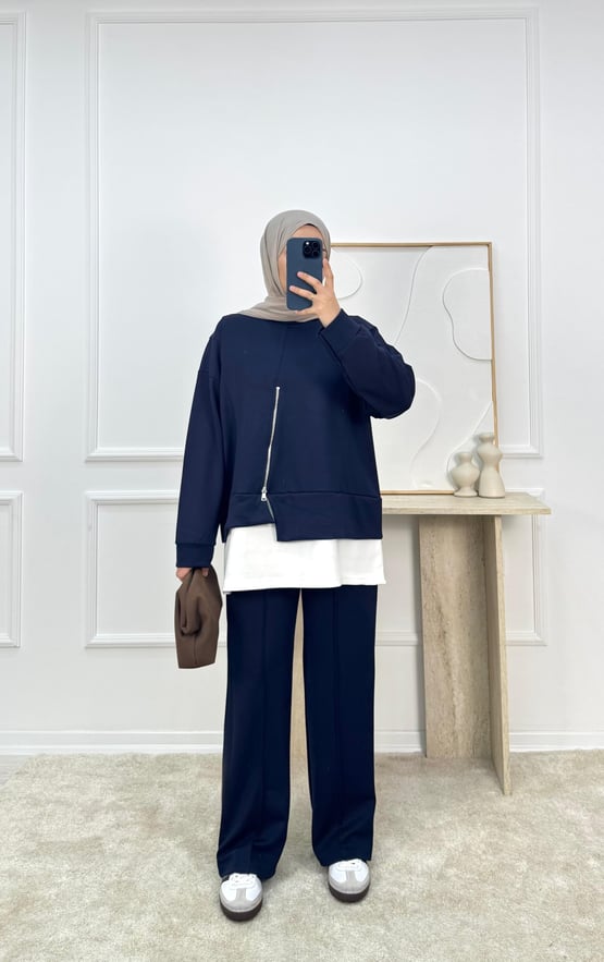 8326 - oysho kumaş fermuar detaylı takım - lacivert (8326)