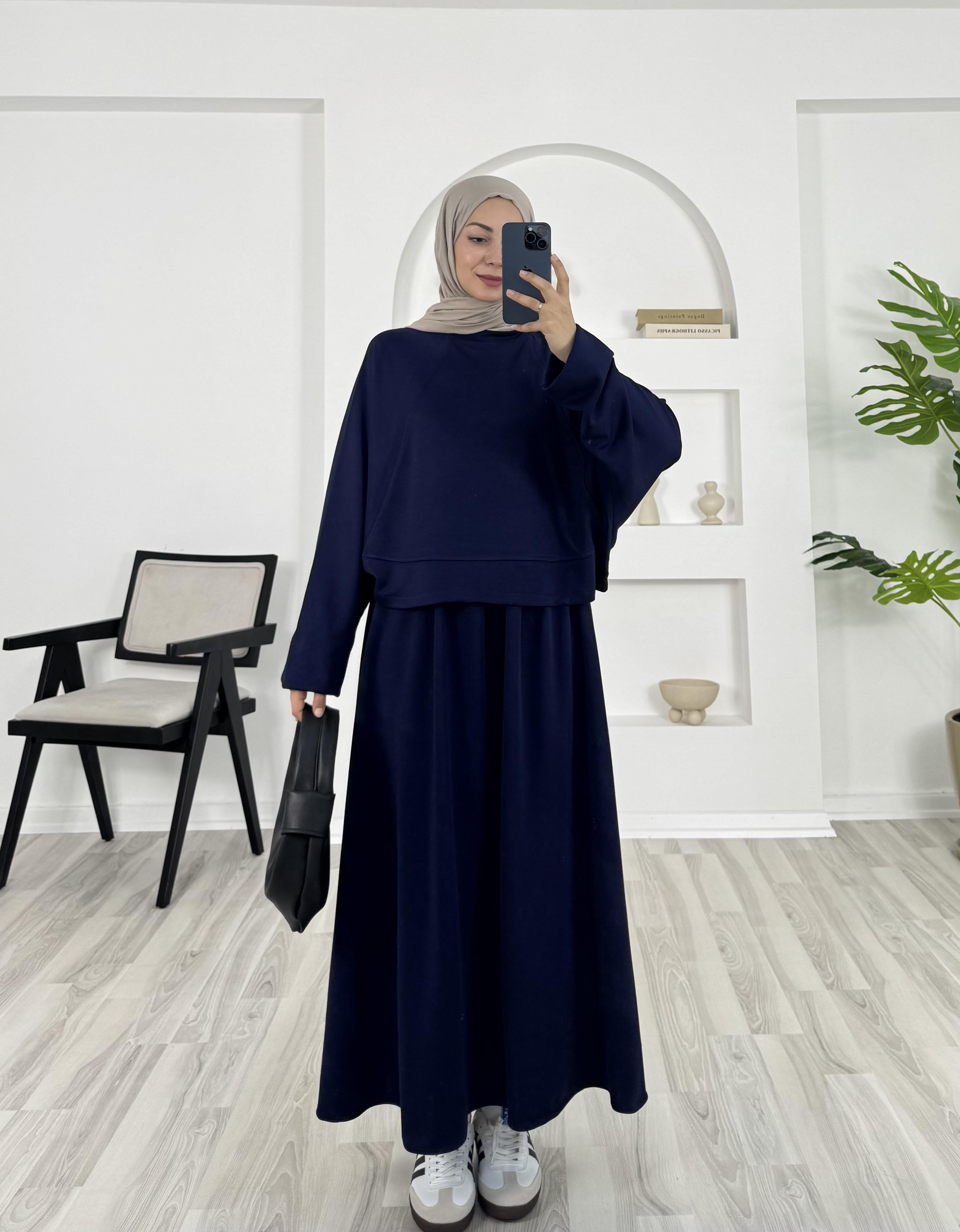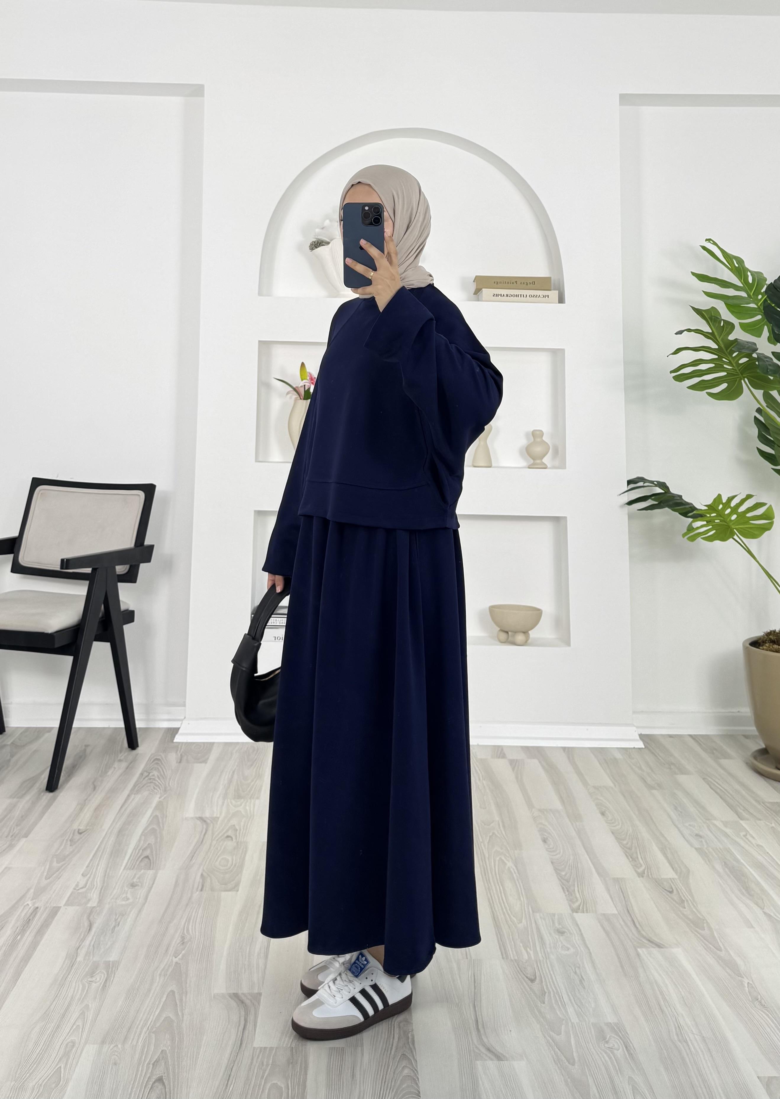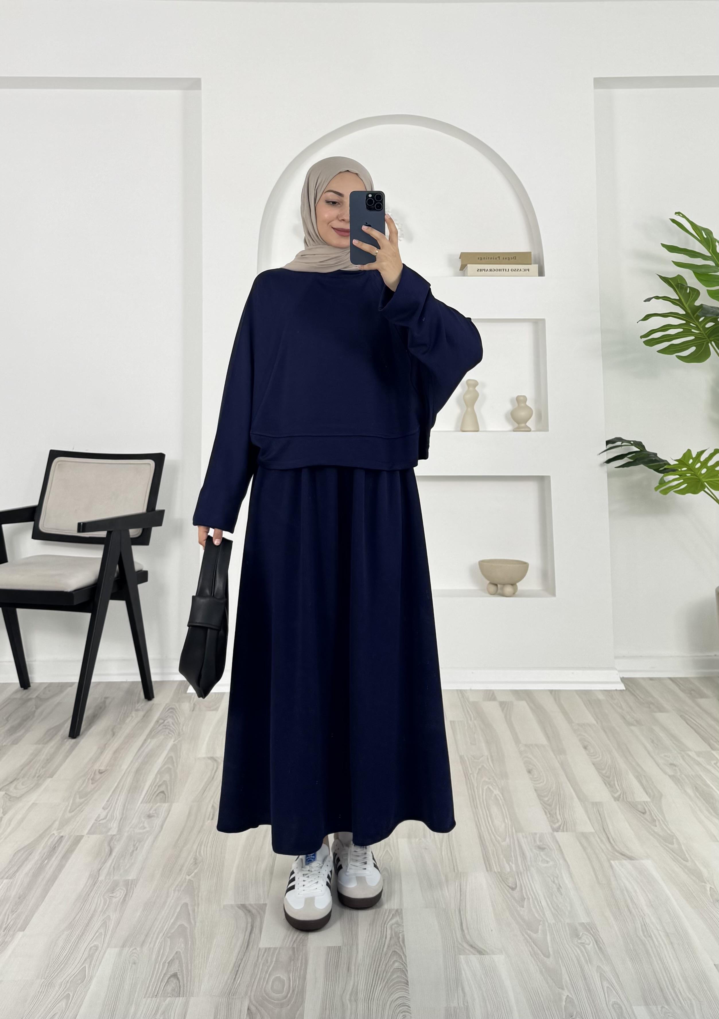 8365 - oysho kumaş beli lastikli etekli takım - lacivert (8365)