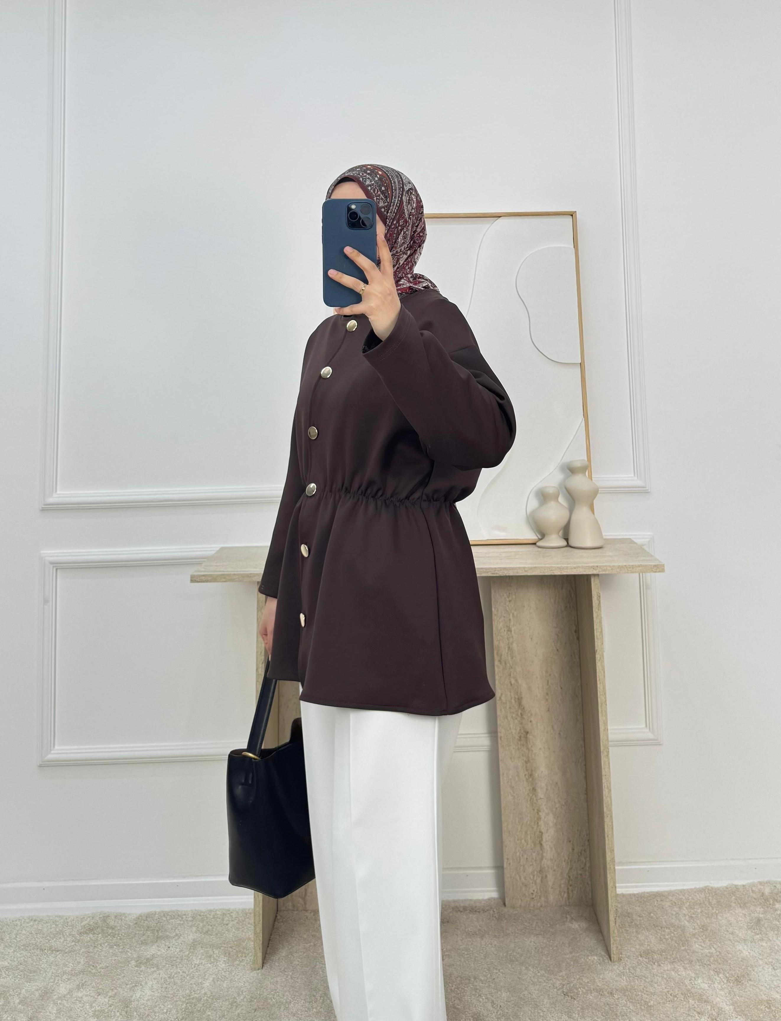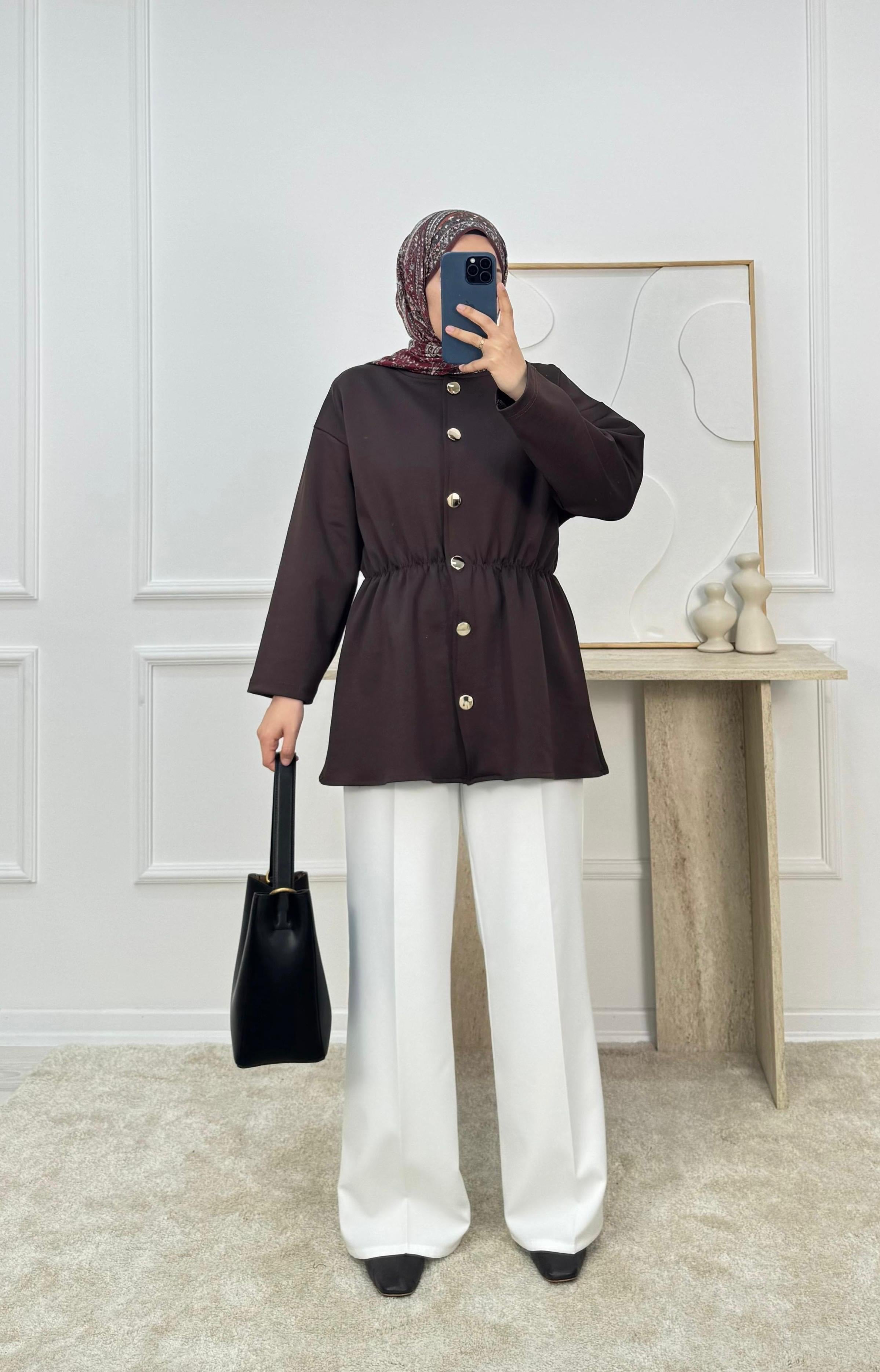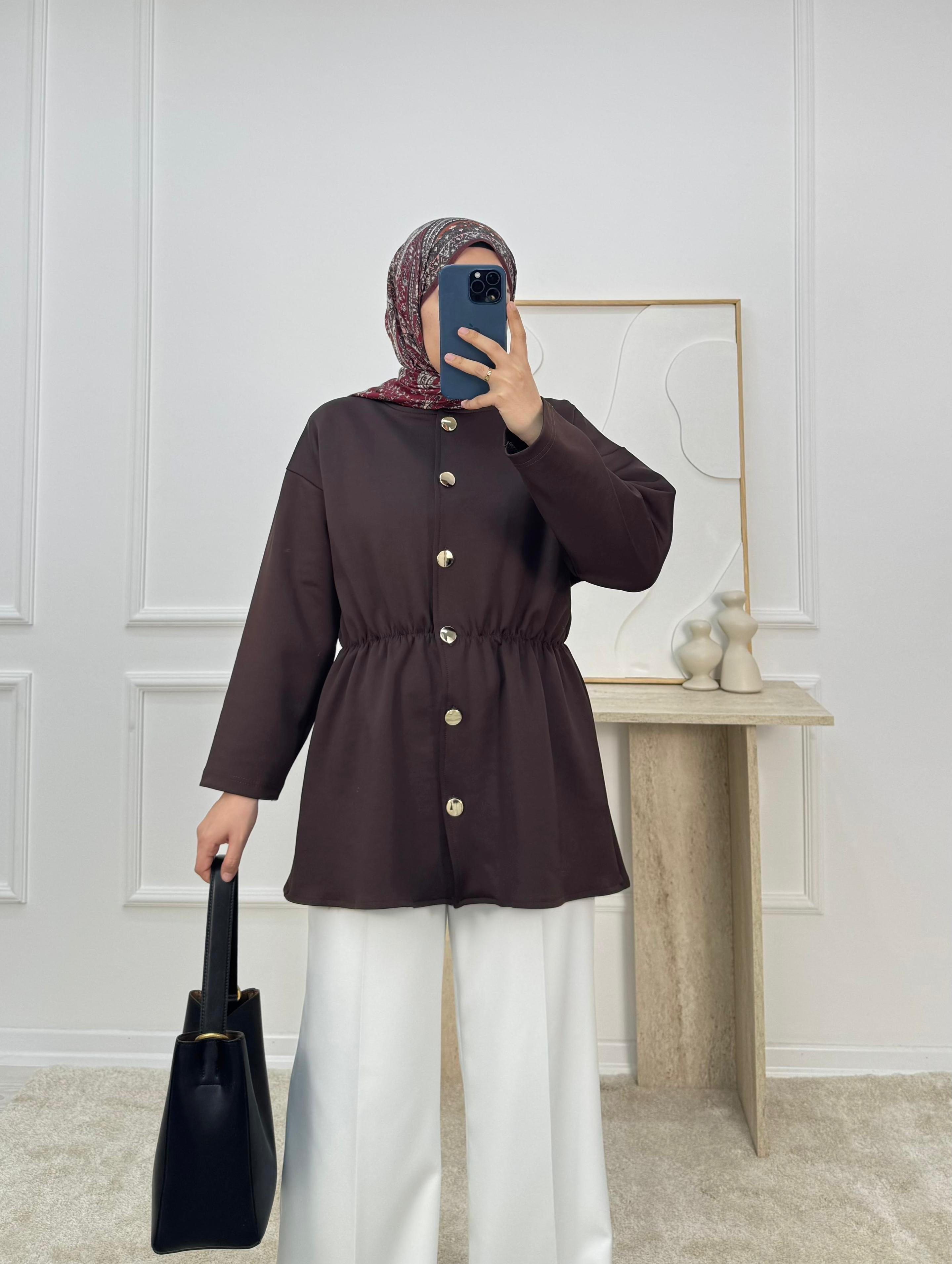sukuba dalgıç kumaş beli lastikli düğmeli tunik