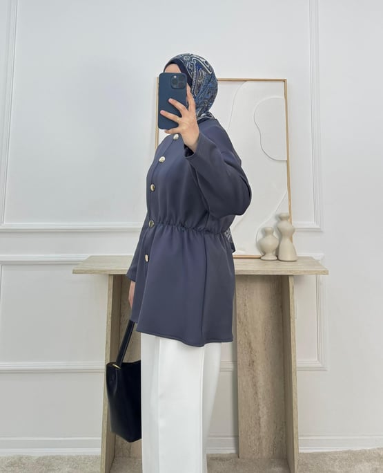 sukuba dalgıç kumaş beli lastikli düğmeli tunik