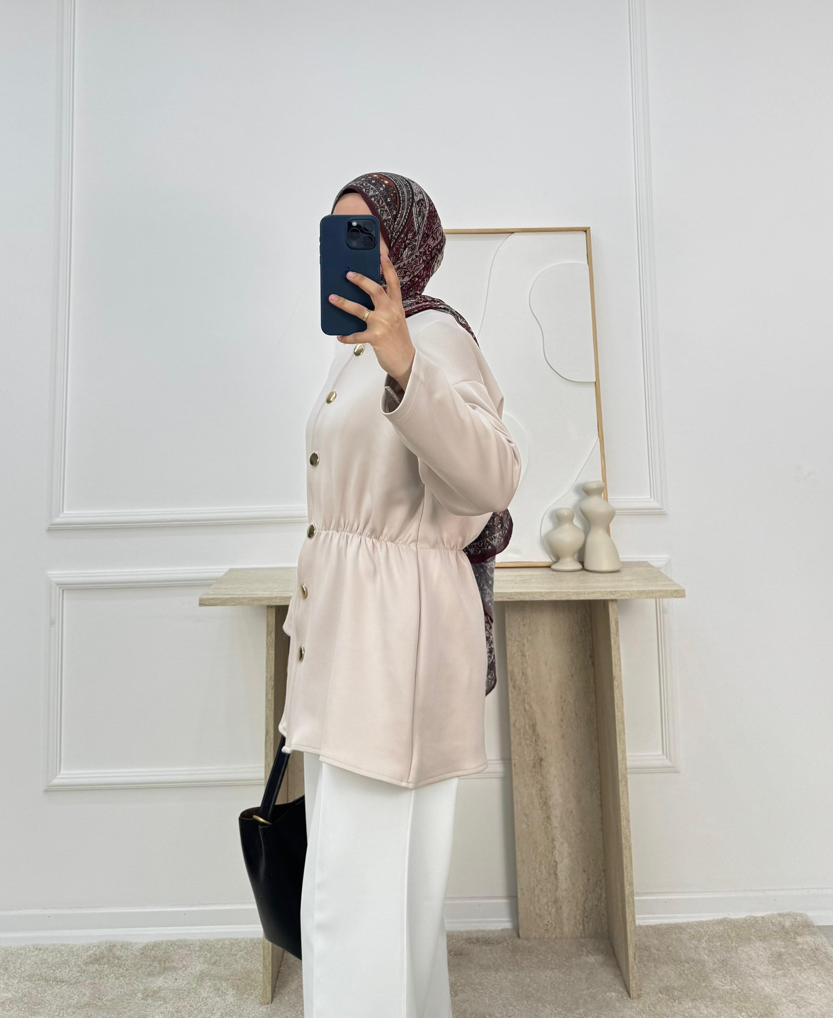 sukuba dalgıç kumaş beli lastikli düğmeli tunik