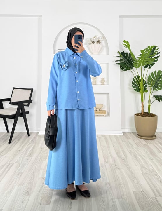 göğüs gül detaylı etekli takım