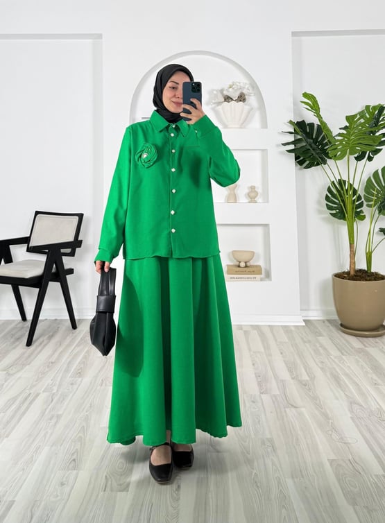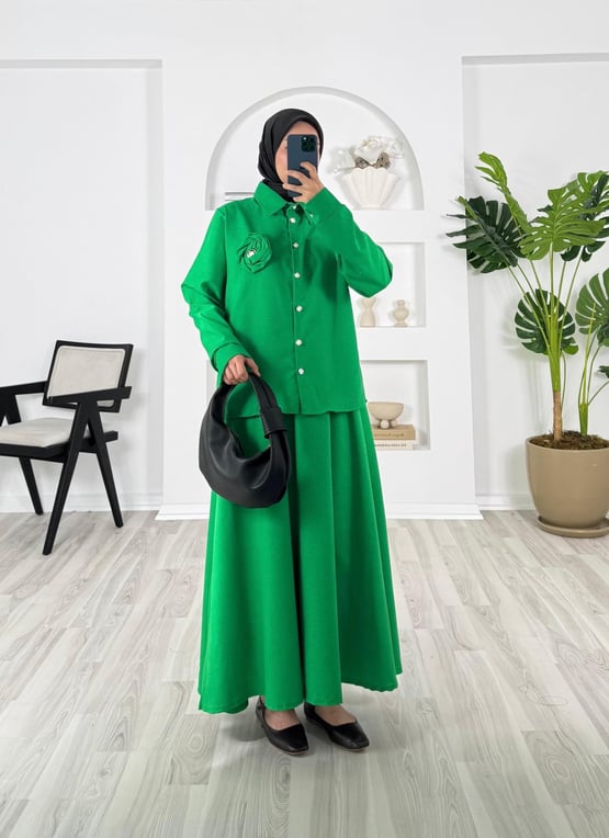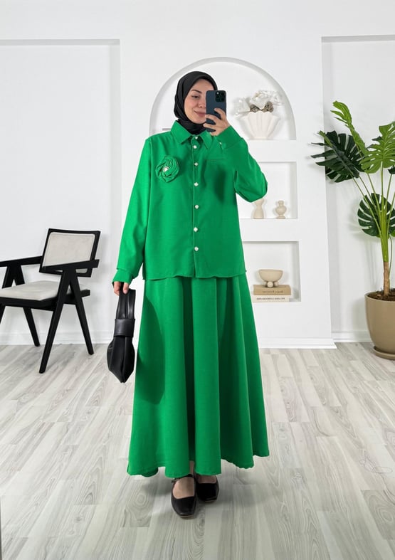 göğüs gül detaylı etekli takım