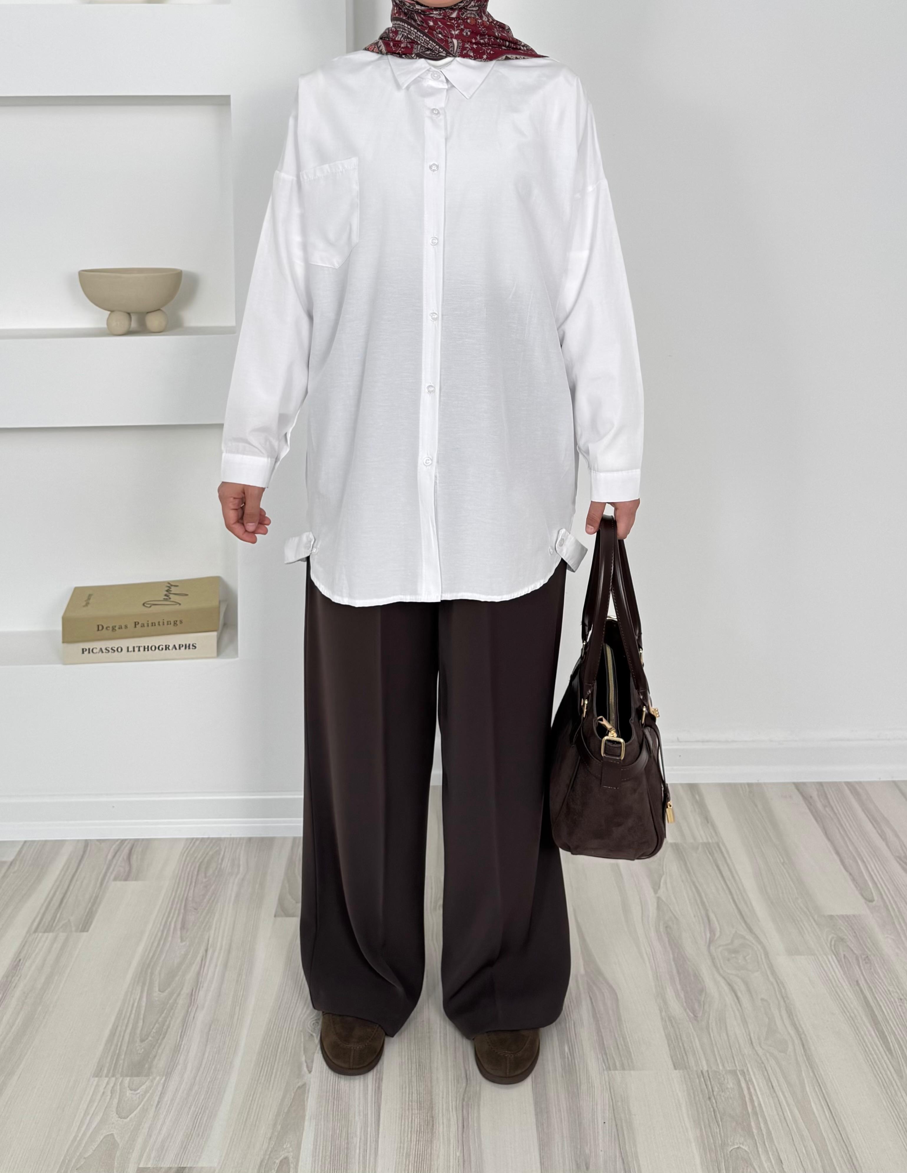 8461-terikoton kumaş alt kısmı lastik düğme detaylı tunik-beyaz (8461)