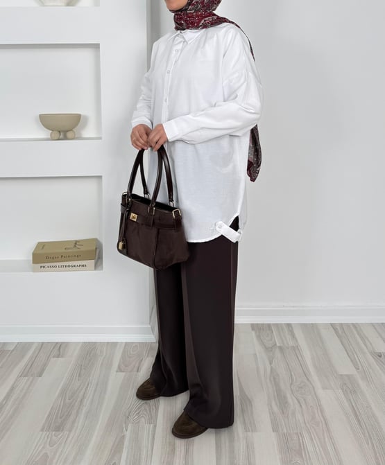 terikoton kumaş alt kısmı lastik düğme detaylı tunik