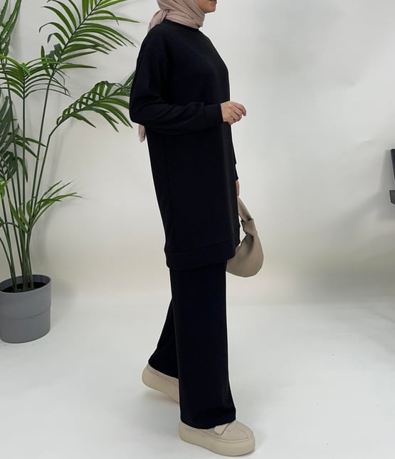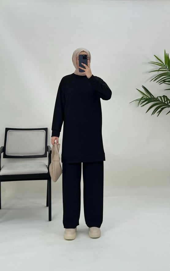 8476-bürümcük kumaş-pantolonlu takım-siyah (8476)